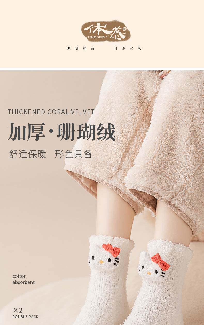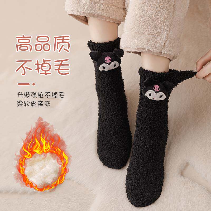Демисезонные носки, милая коралловая бархатная плюшевая кукла для беременных, средней длины, увеличенная толщина
