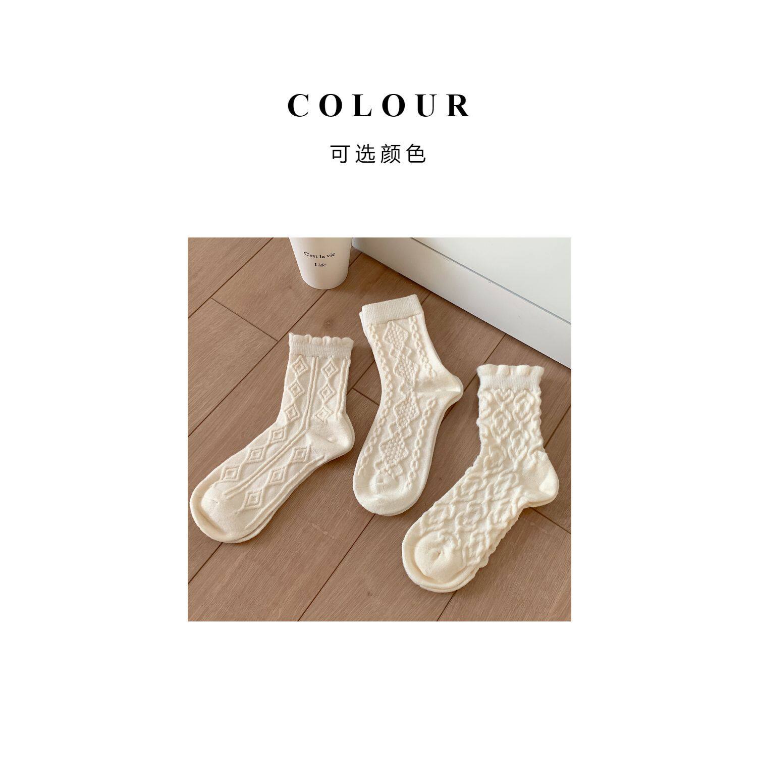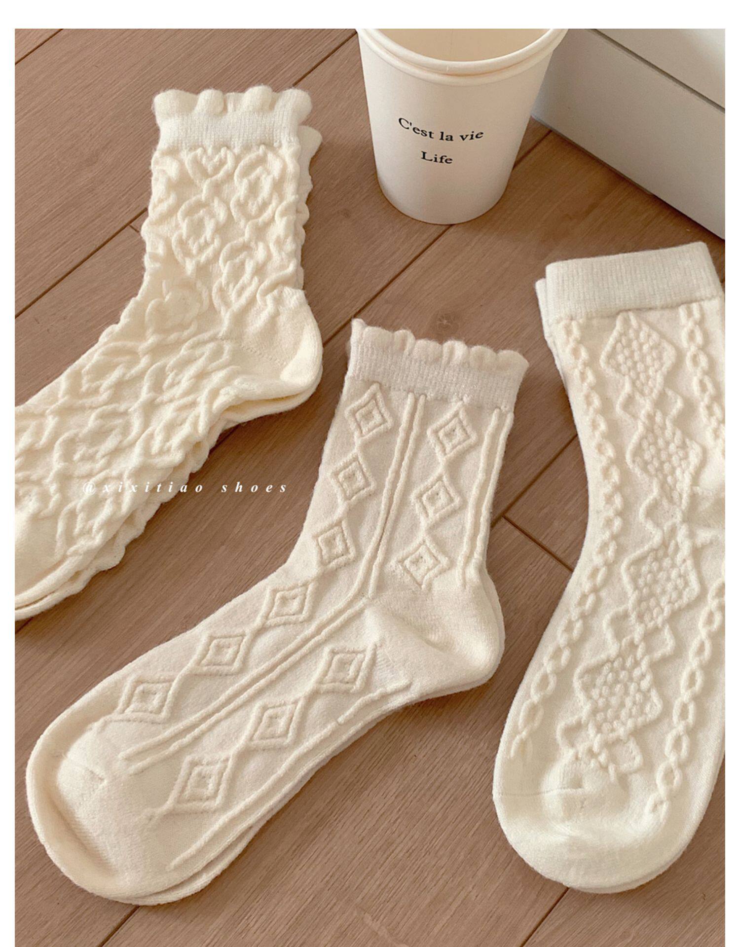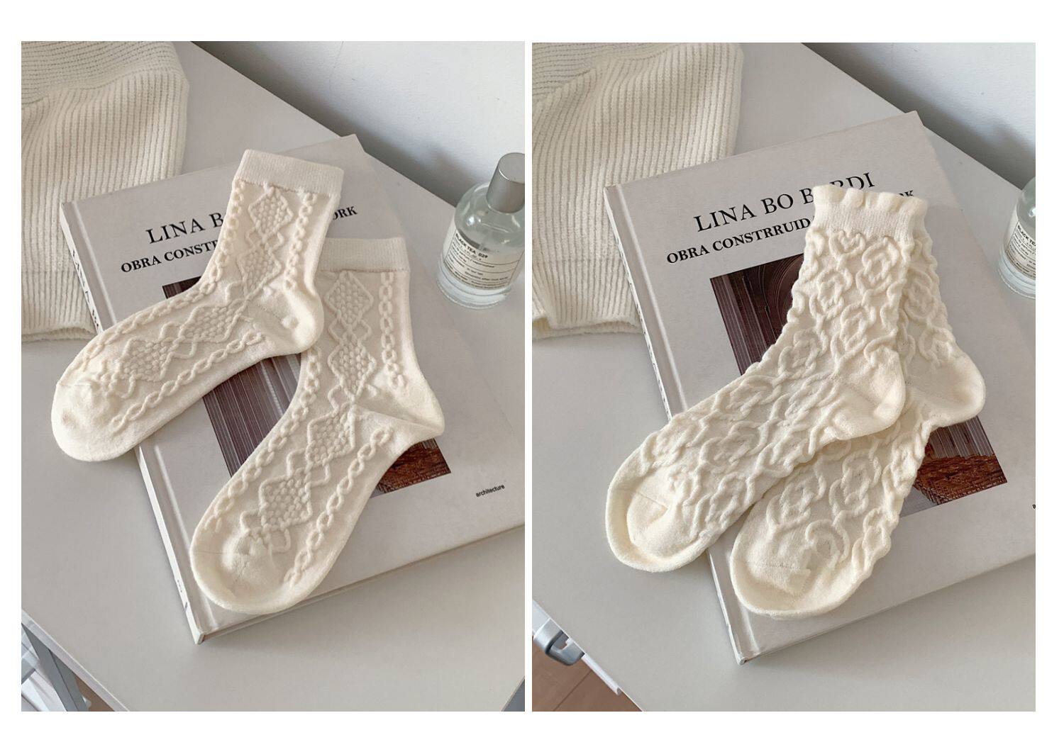 Тонкие японские демисезонные белые брендовые гольфы, средней длины