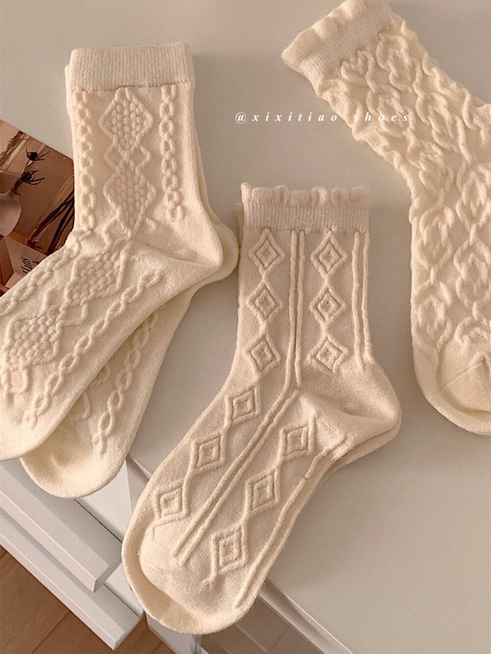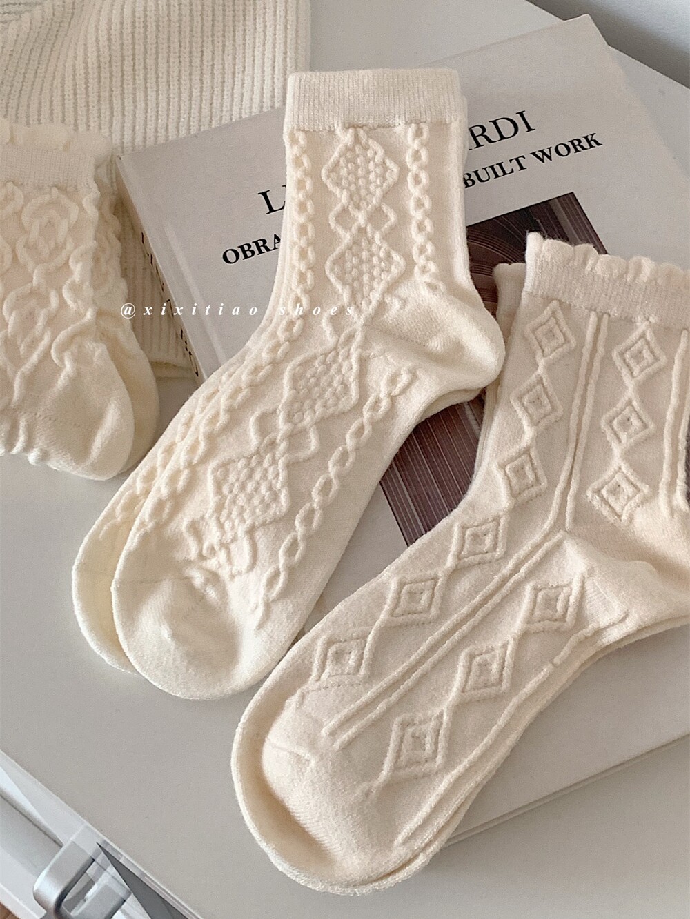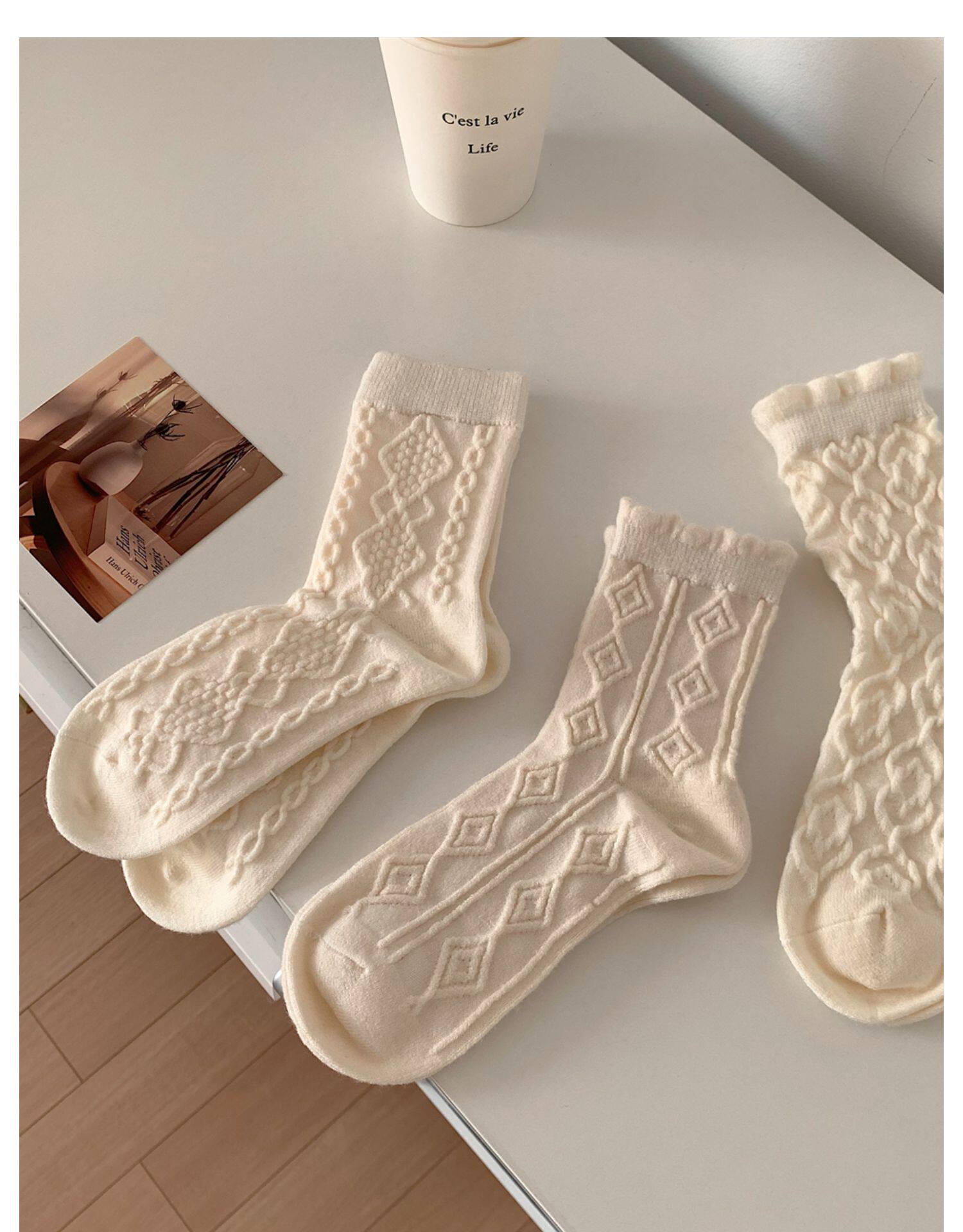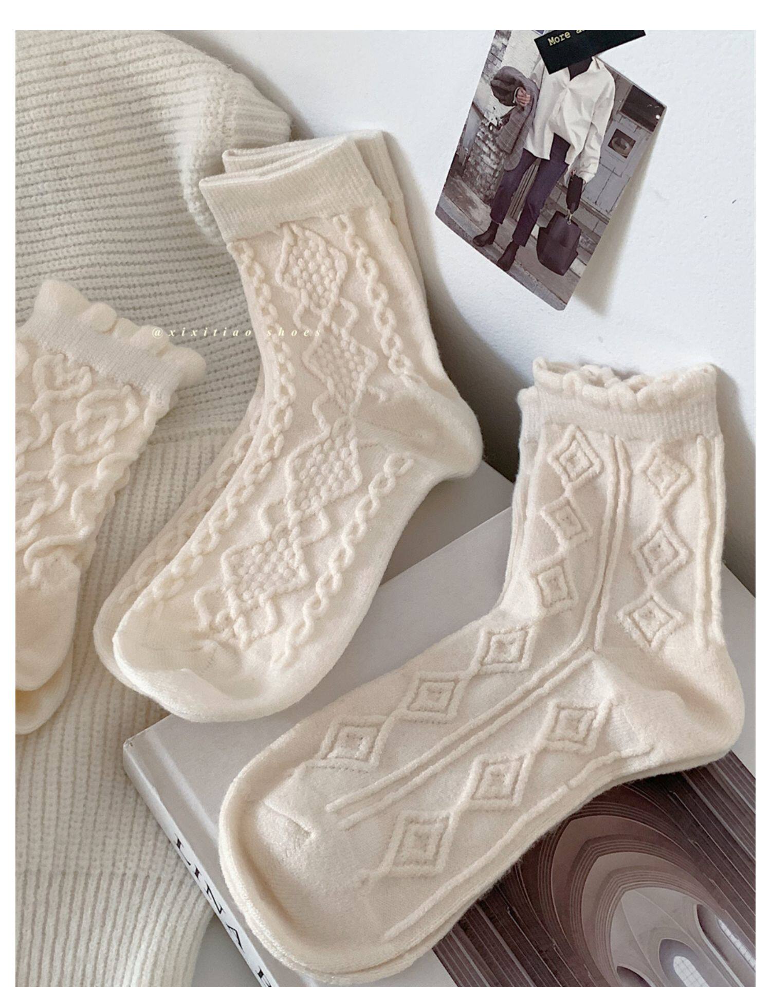 Тонкие японские демисезонные белые брендовые гольфы, средней длины