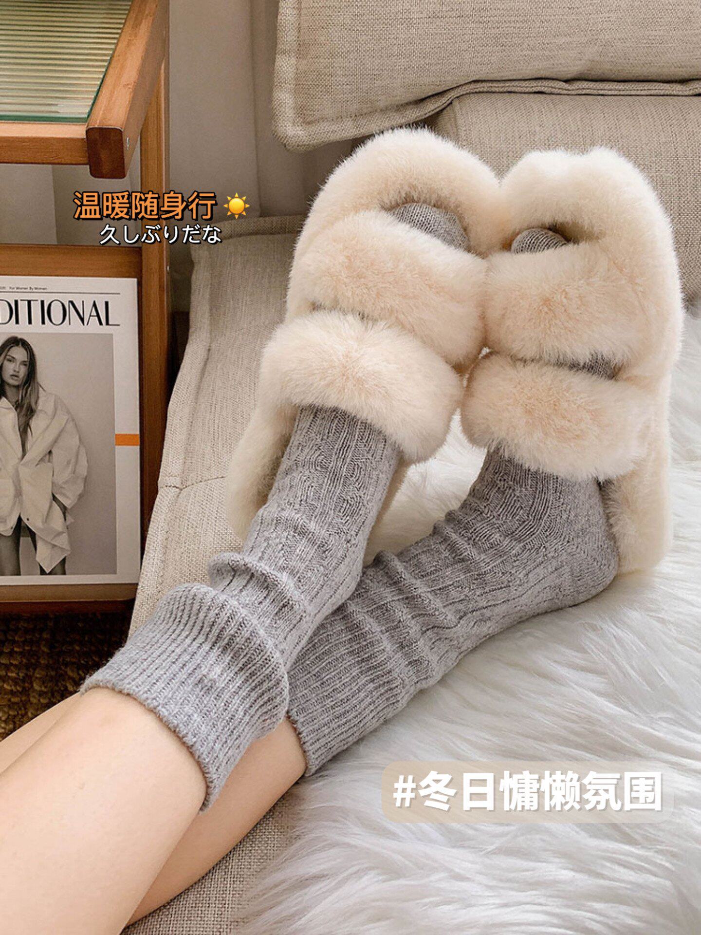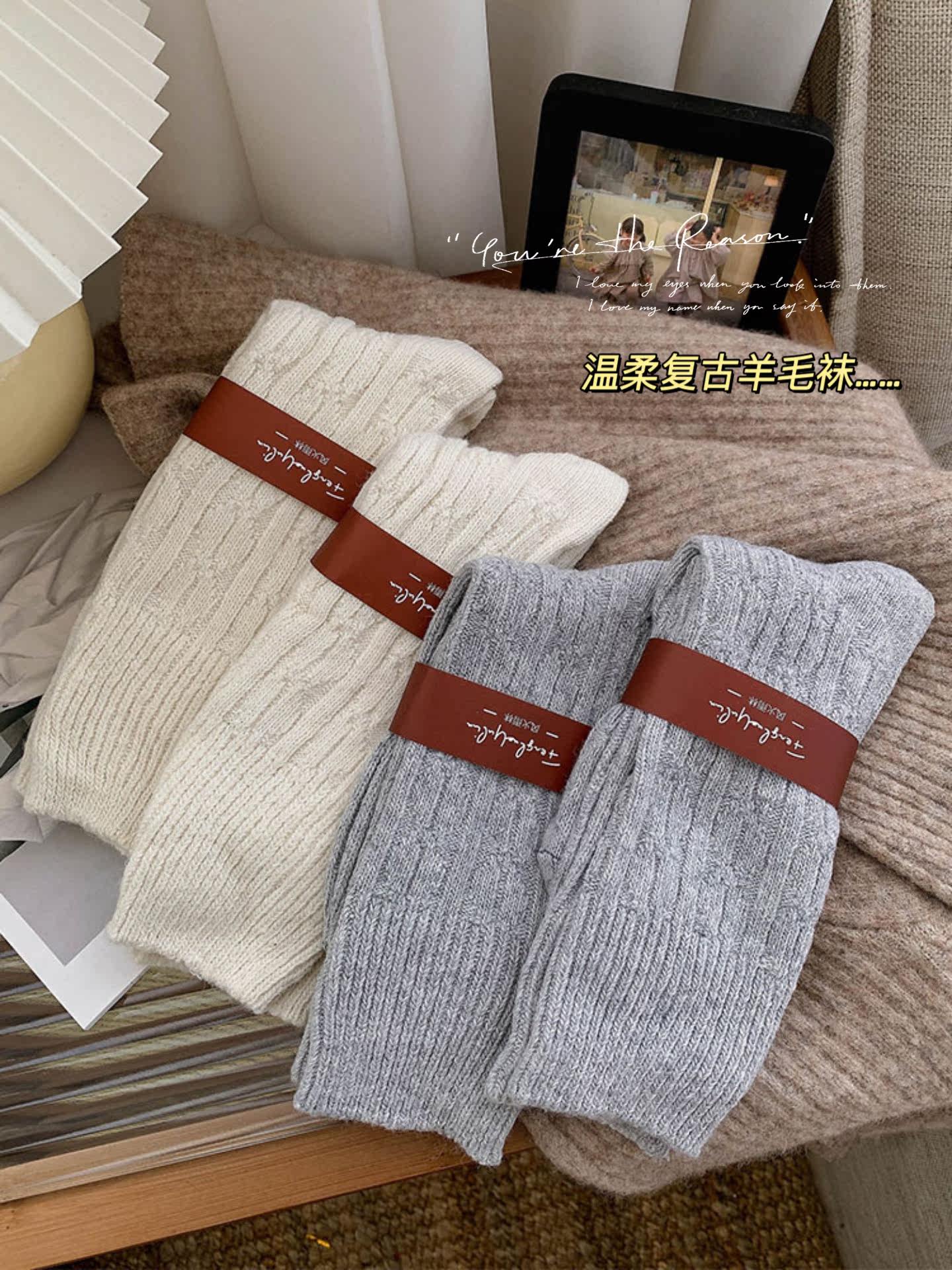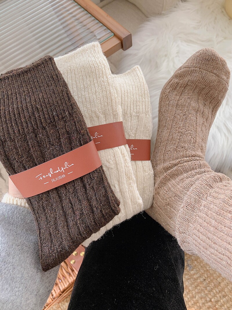Шерстяные носки, демисезонные флисовые удерживающие тепло японские ретро зимние гольфы, средней длины