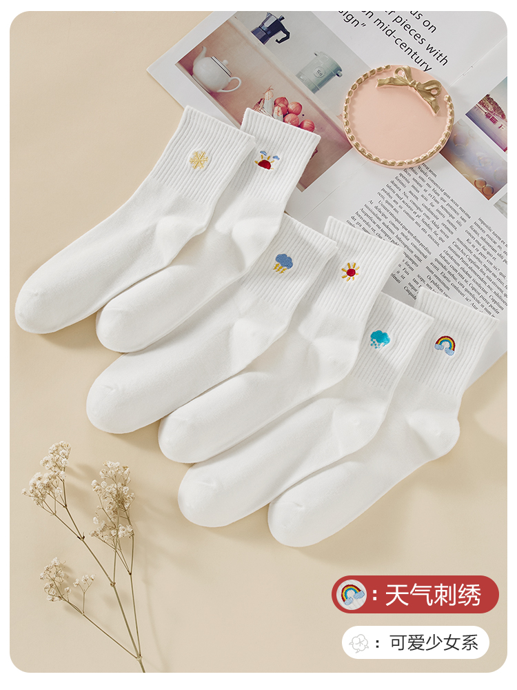 恒源祥 Хлопковые носки, антибактериальные дышащие белые осенние гольфы, средней длины