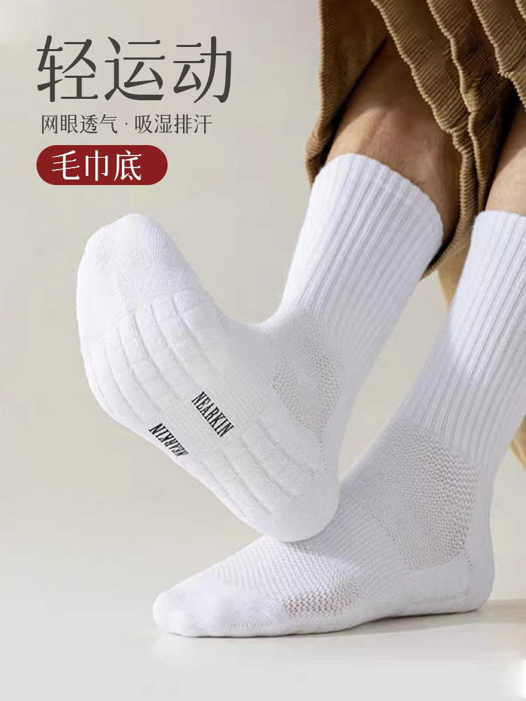 Белые носки, хлопковые дезодорированные баскетбольные гольфы, средней длины, впитывают пот и запах
