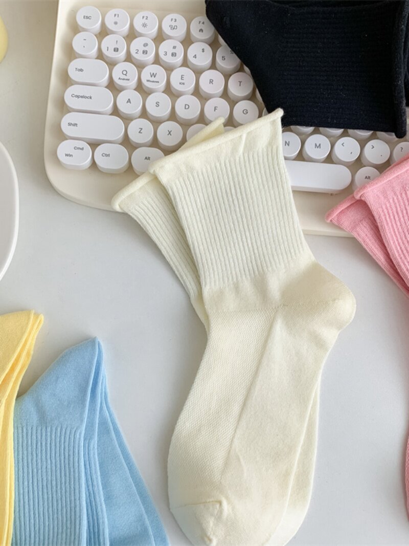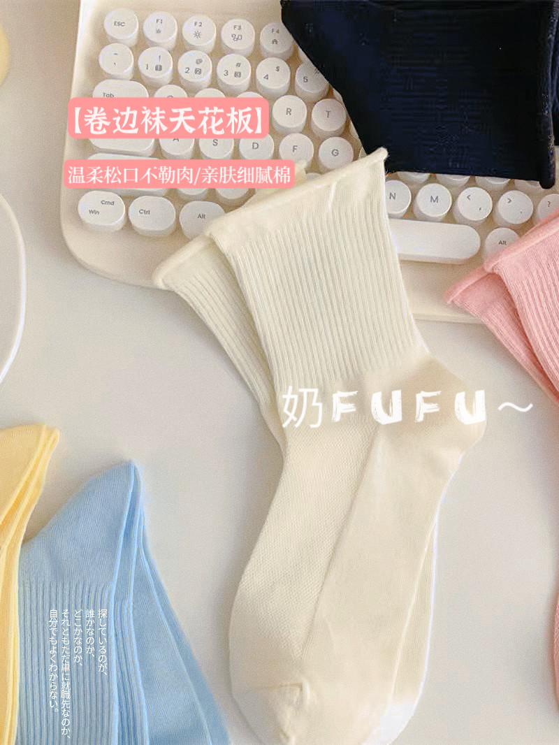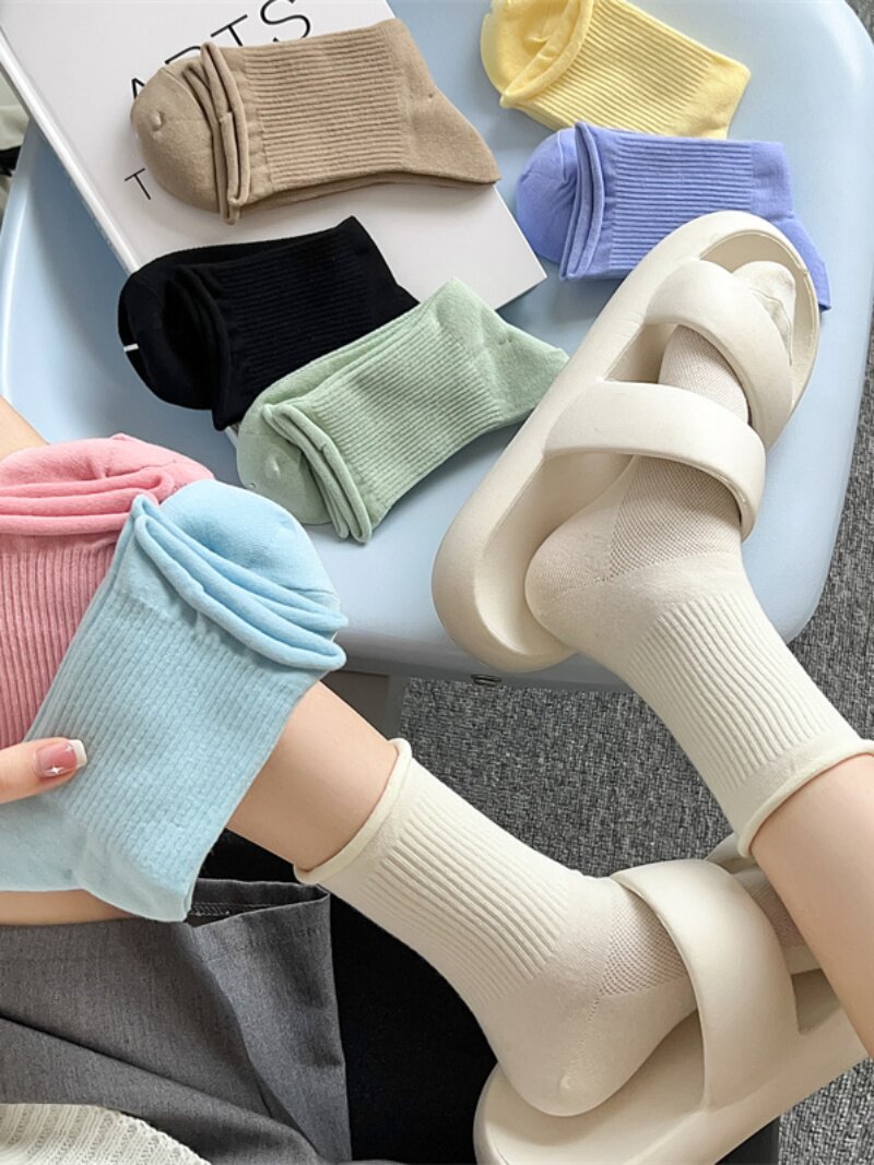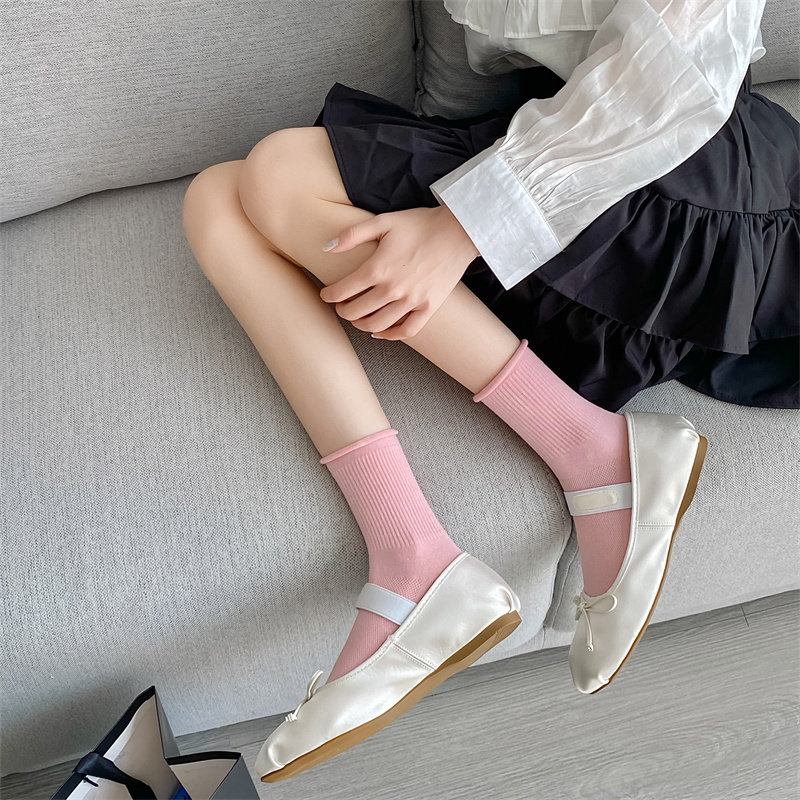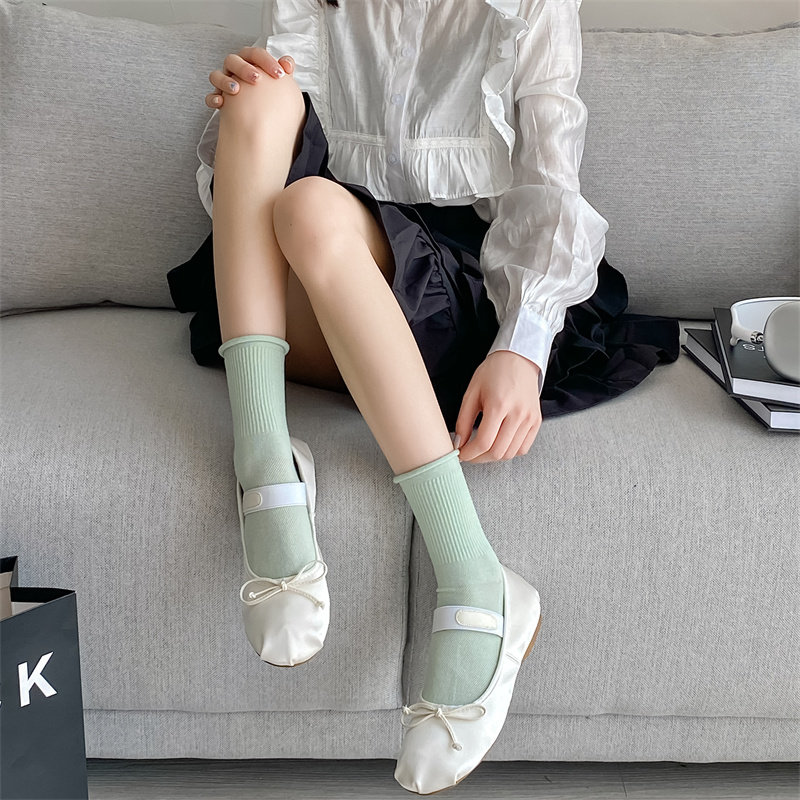 Мягкие хлопчатобумажные тонкие мягкие носки с завитками и свободным горлом для женщин, весенне-летние ворсовые носки, однотонные милые тонкие стильные чулки