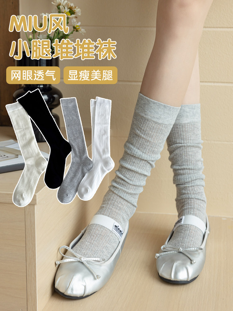 Женские носки до икры в балетном стиле, весенне-летние однотонные хлопковые носки с тонкой сеткой, серые длинные носки miu, ворсовые носки