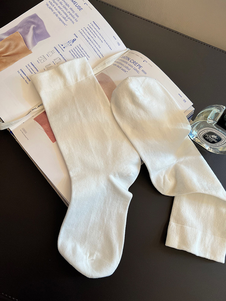 Летние однотонные белые базовые гольфы, средней длины