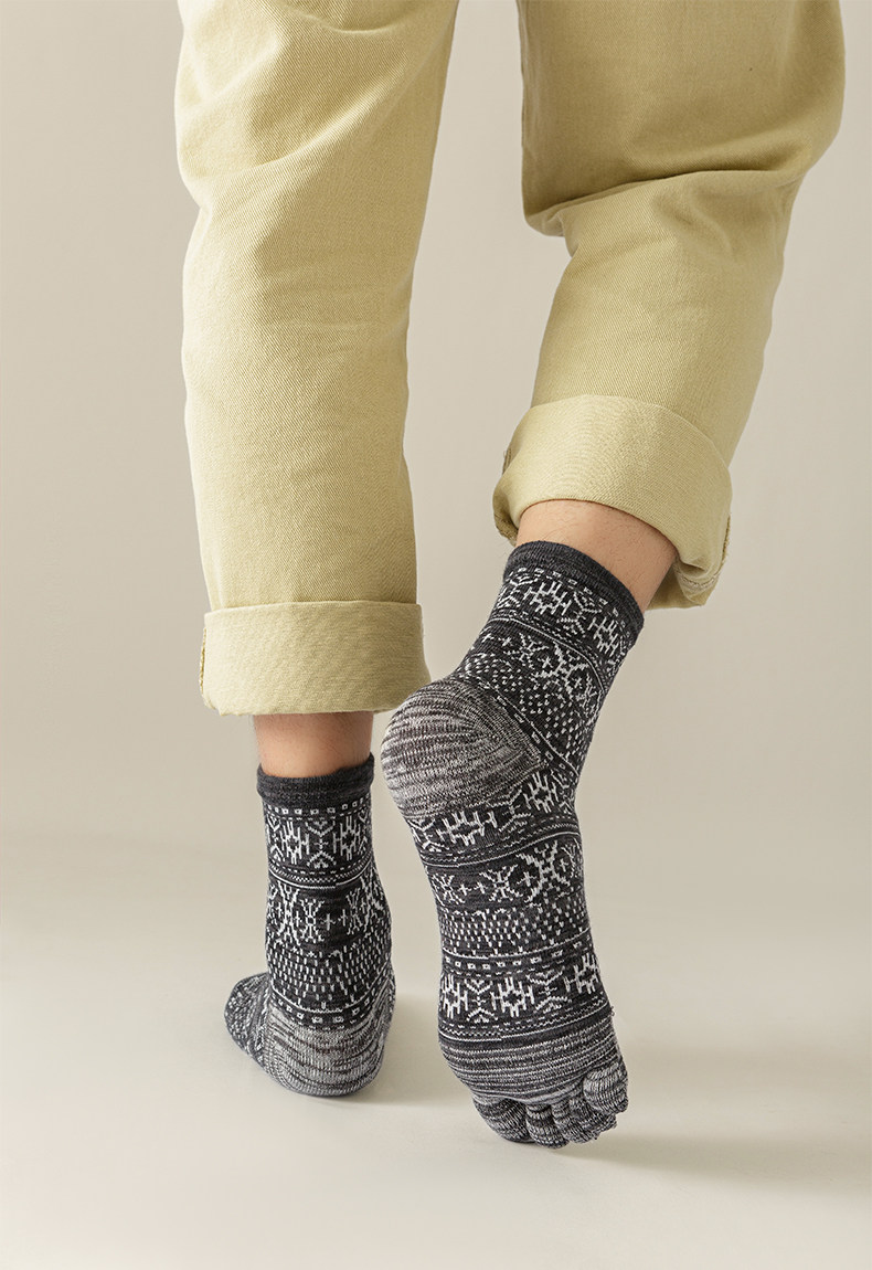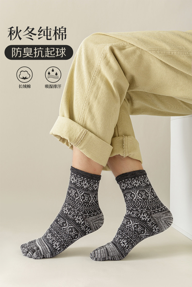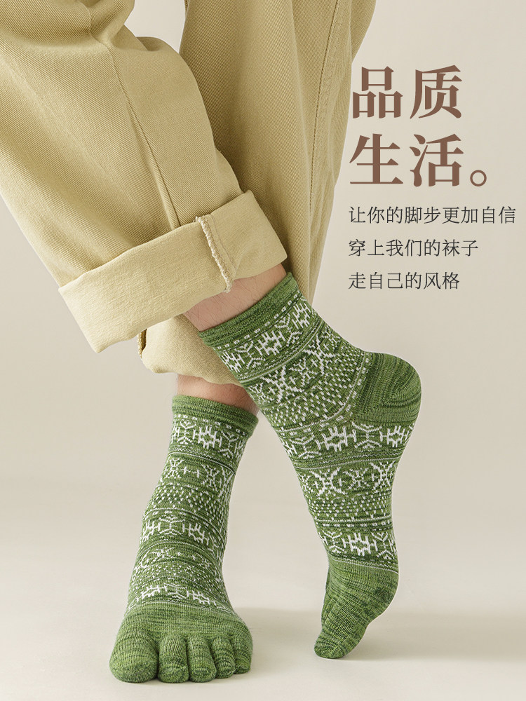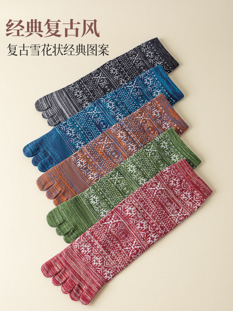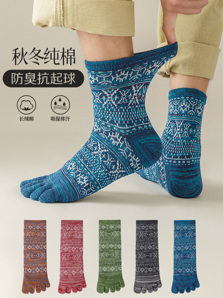 Мужские осенне-зимние толстые носки из чистого хлопка с пятью пальцами в стиле ретро, носки средней длины с высокой талией и большим размером, дышащие, не впитывающие запах и впитывающие пот носки
