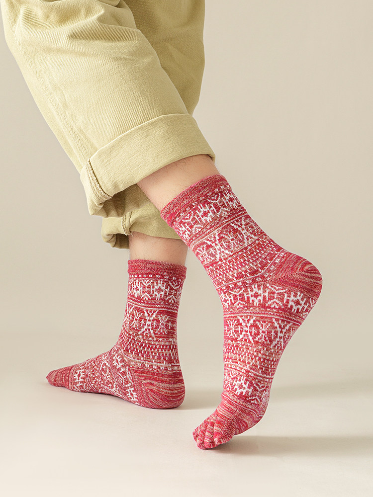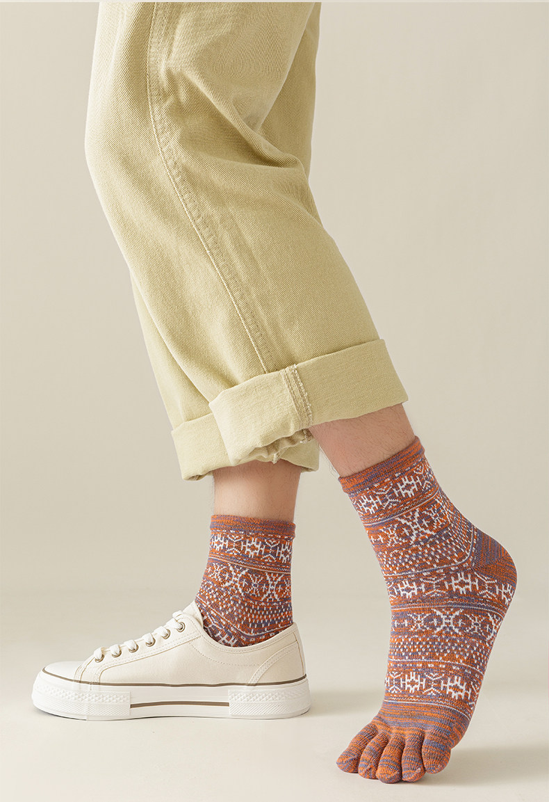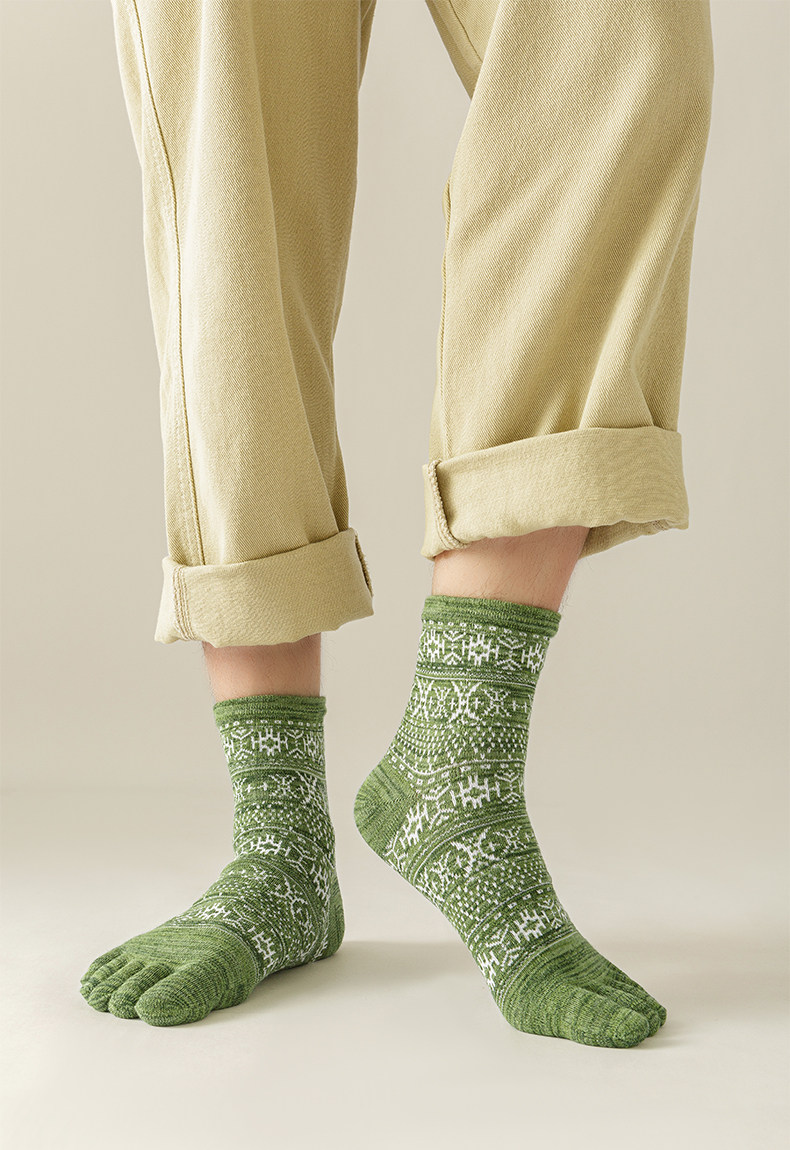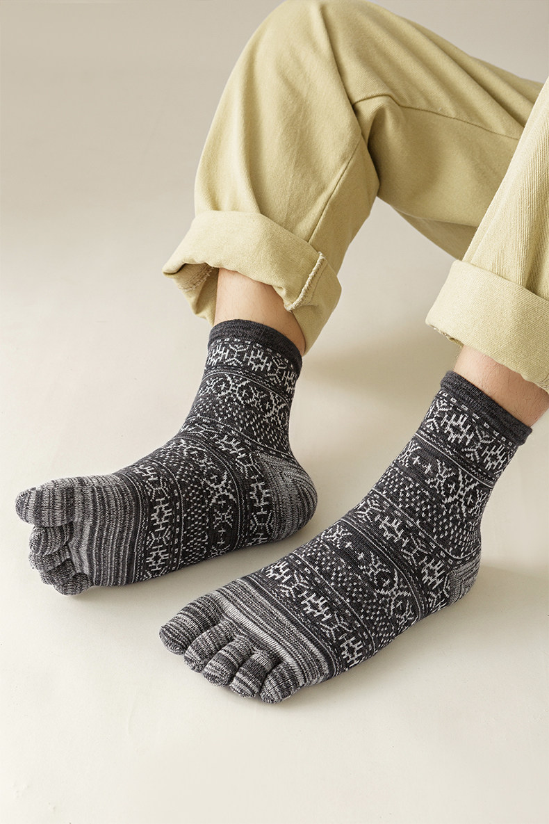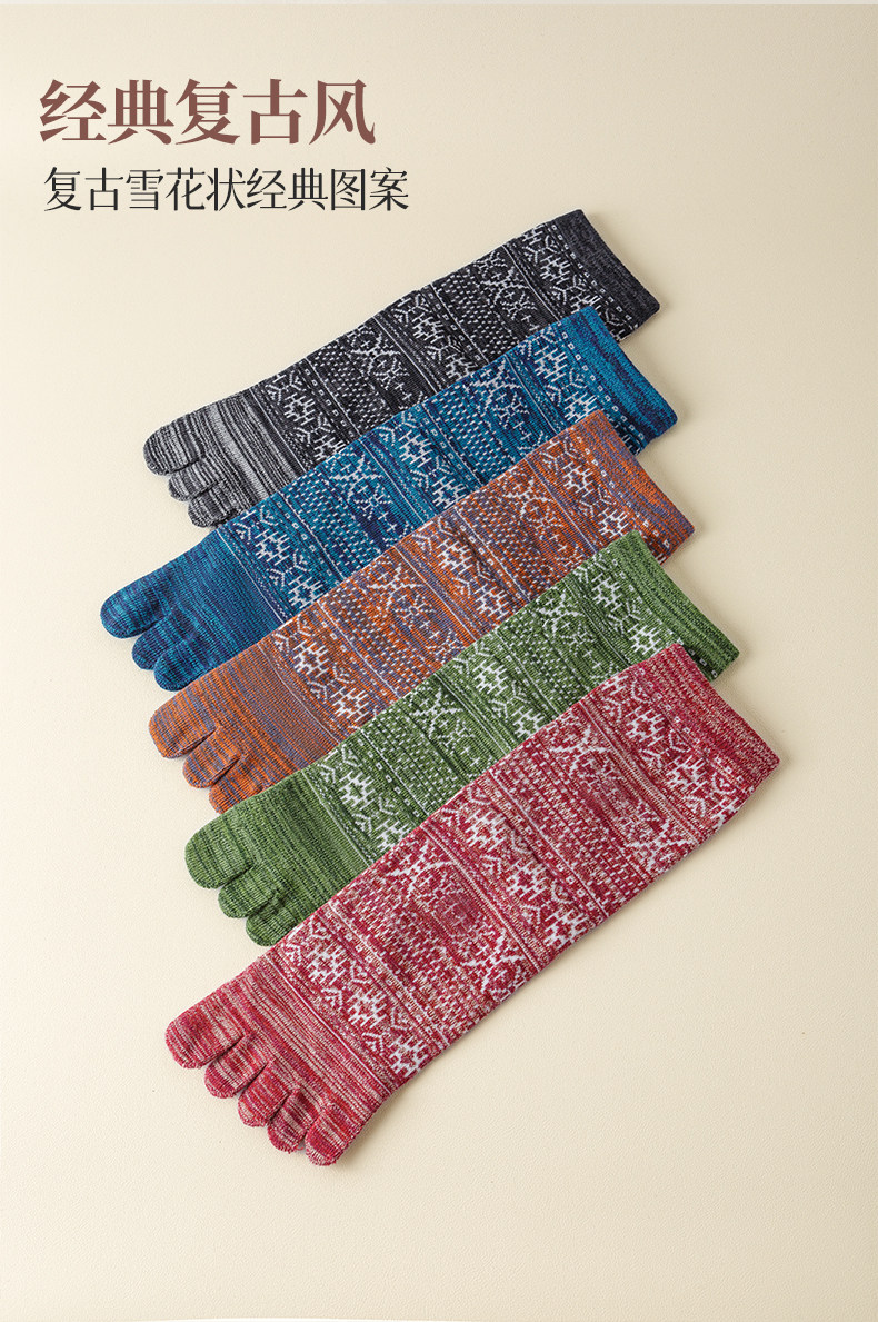 Мужские осенне-зимние толстые носки из чистого хлопка с пятью пальцами в стиле ретро, носки средней длины с высокой талией и большим размером, дышащие, не впитывающие запах и впитывающие пот носки
