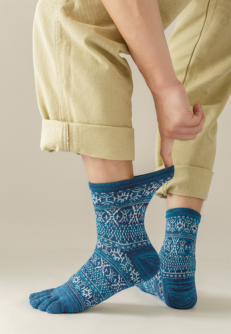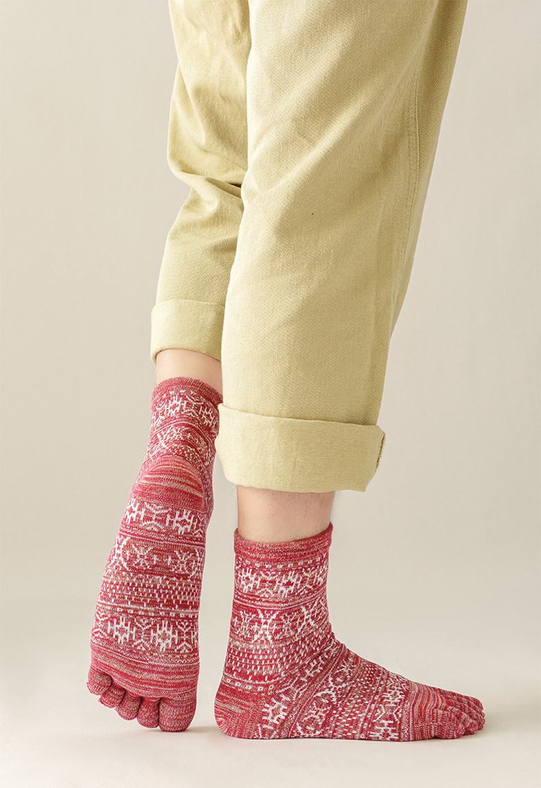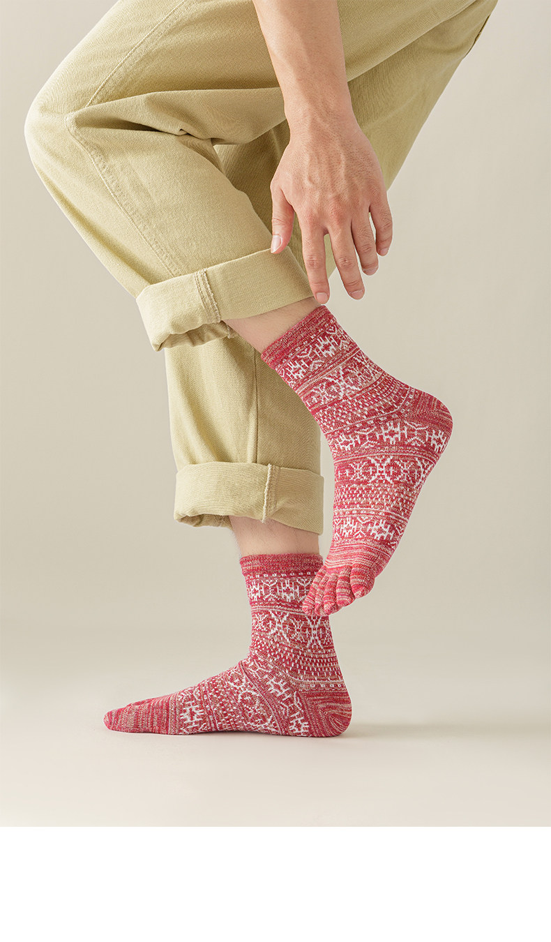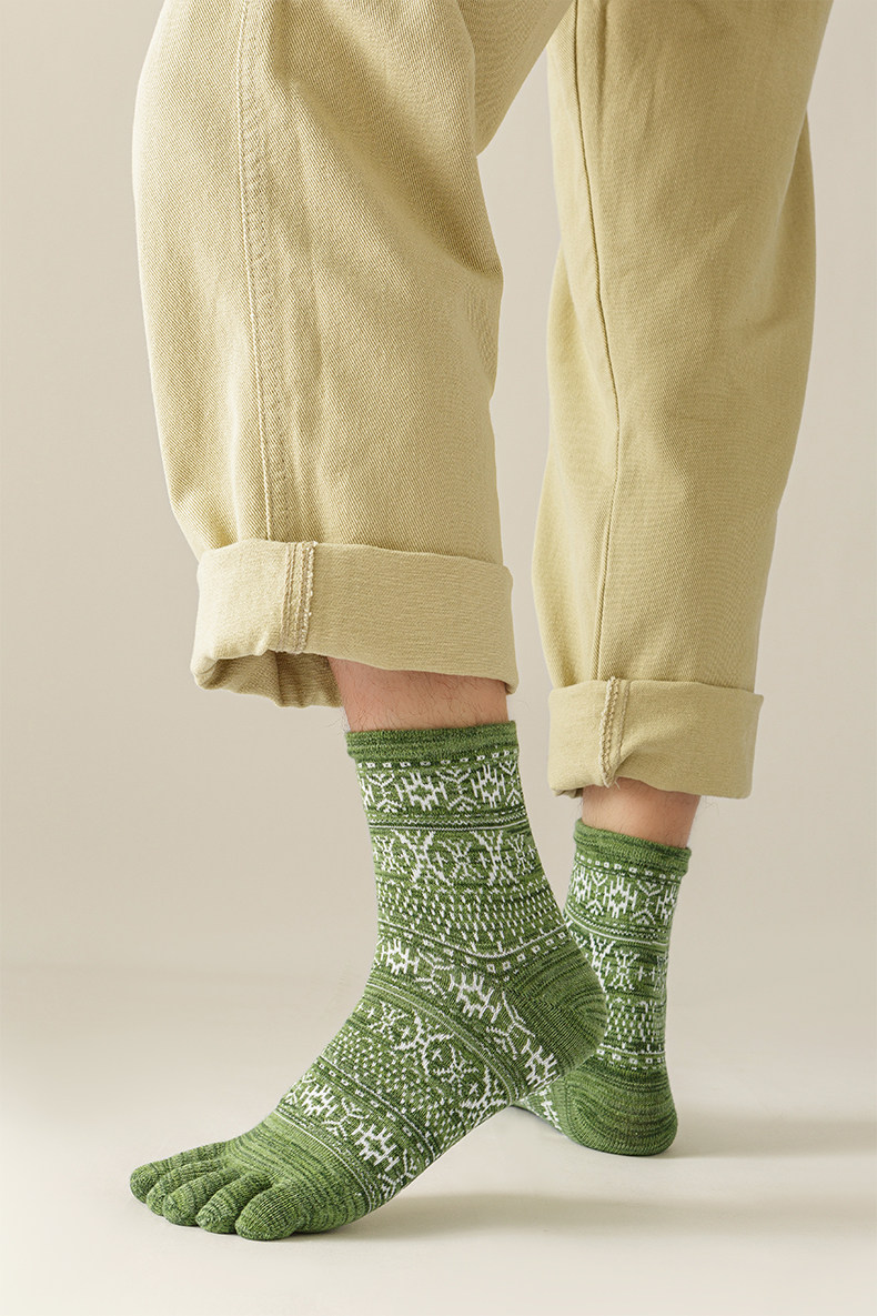 Мужские осенне-зимние толстые носки из чистого хлопка с пятью пальцами в стиле ретро, носки средней длины с высокой талией и большим размером, дышащие, не впитывающие запах и впитывающие пот носки
