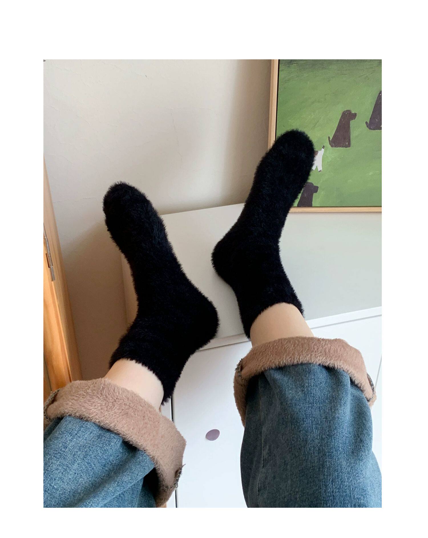 细细条 Зимние удерживающие тепло носки, гольфы для беременных, средней длины, увеличенная толщина