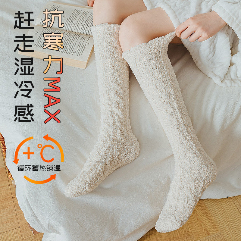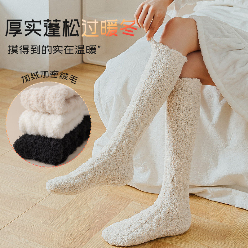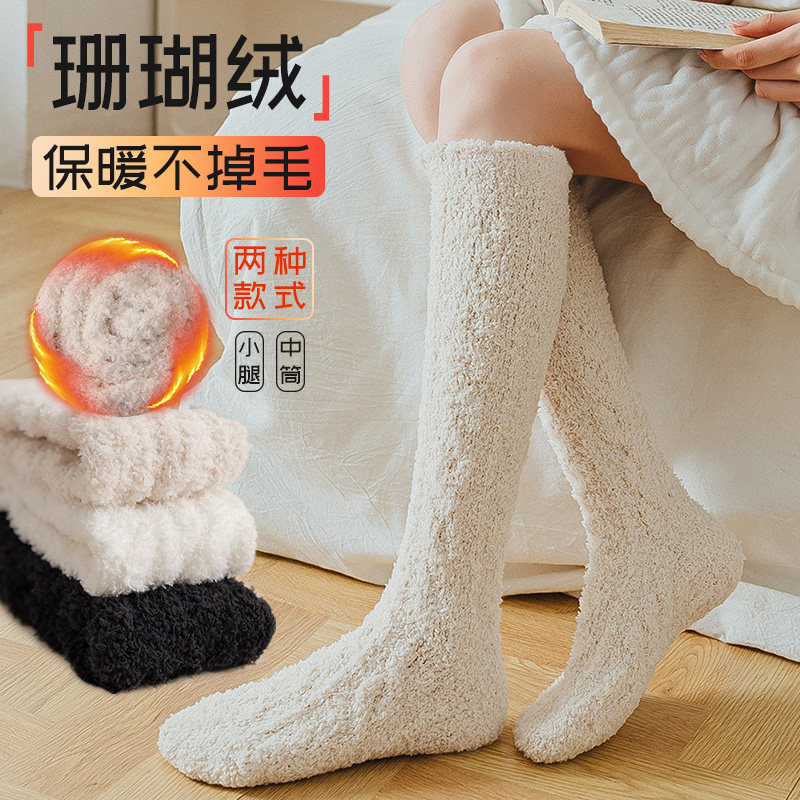 Коралловые бархатные носки, демисезонные утепленные гольфы, средней длины