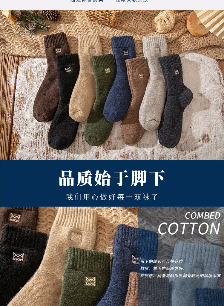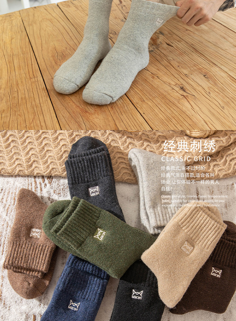 Мужские носки, демисезонные флисовые гольфы, удерживающее тепло шерстяное полотенце, средней длины
