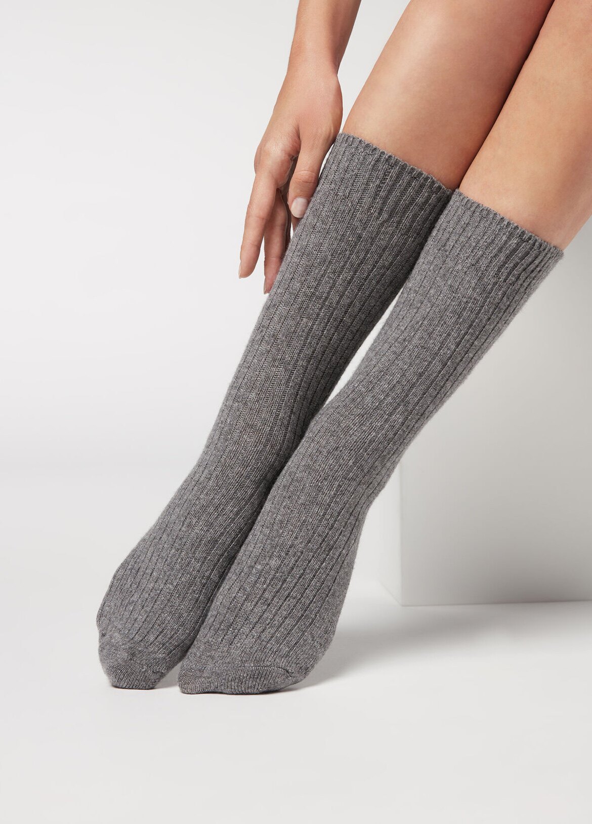 Кальцедония итальянская 7% кашемировые носки для женщин осенью и зимние полоски с твердым цветом теплые носки DC0096