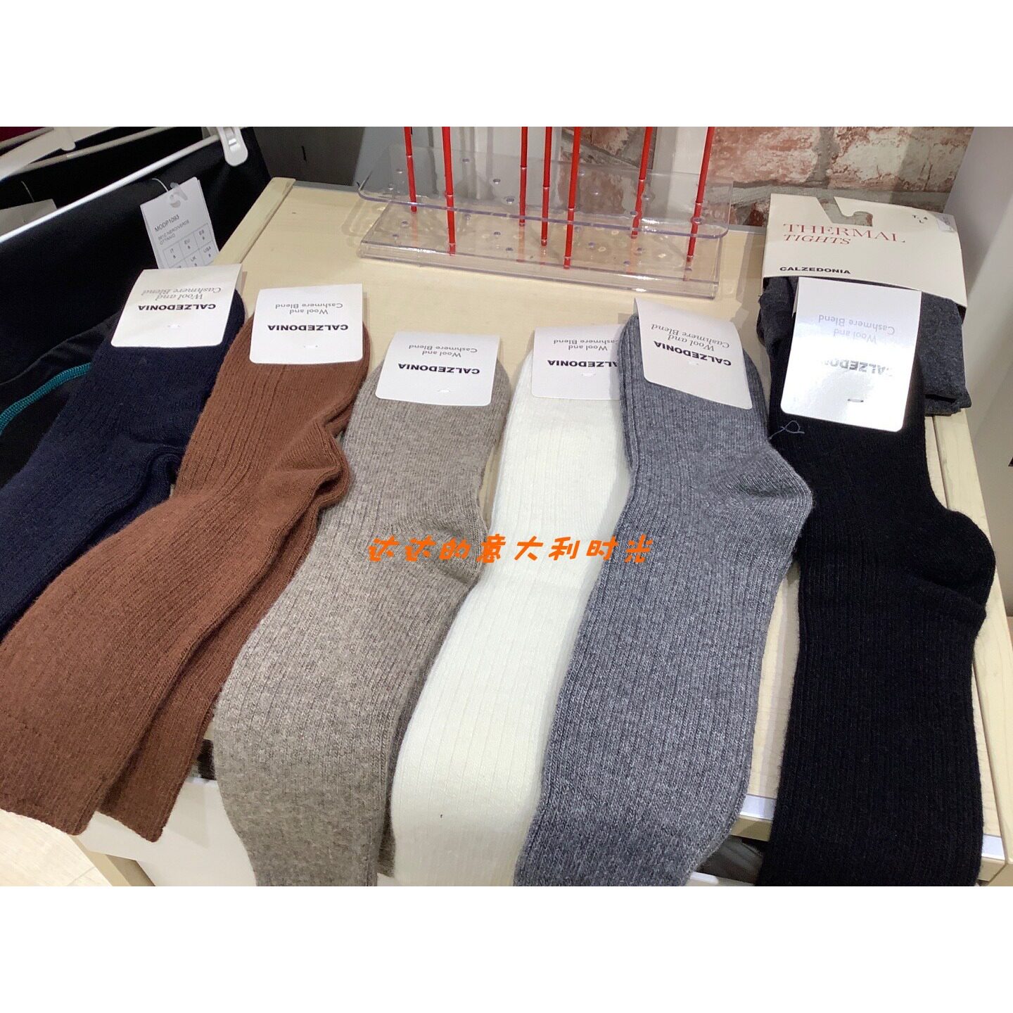 [calzedonia卡赞尼纯色竖纹短袜羊毛中筒堆堆袜]