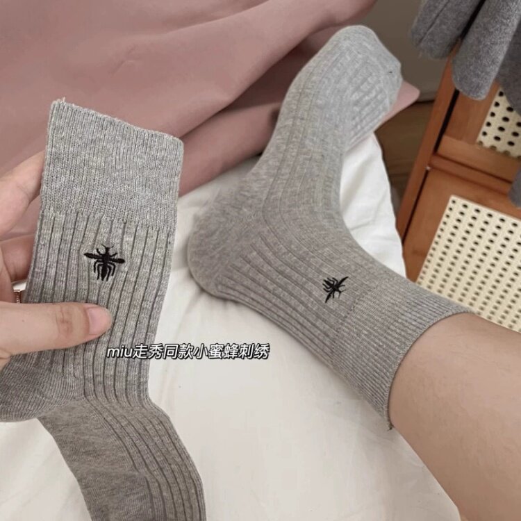 Носки подходит для мужчин и женщин, хлопковые брендовые гольфы, с вышивкой, средней длины