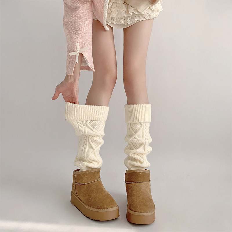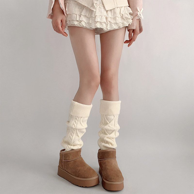 夜间教习室 Трикотажные осенние шерстяные белые гетры, увеличенная толщина