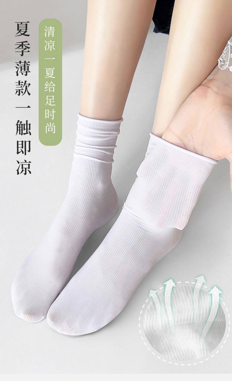 Белые летние тонкие шелковые носки, средней длины