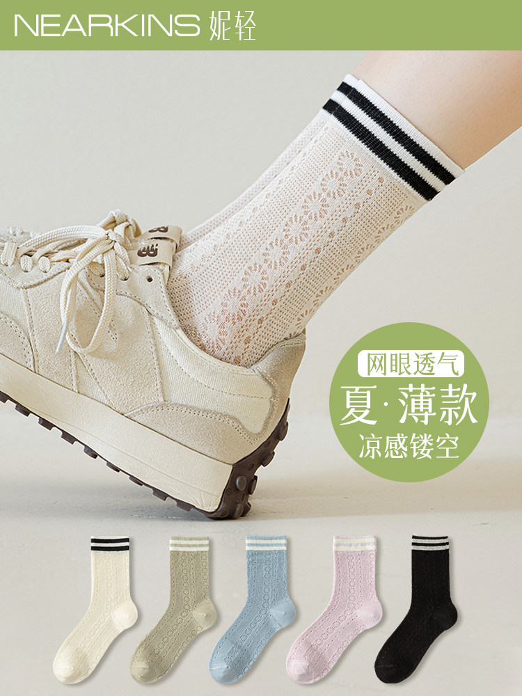 Летние носки, тонкие белые спортивные гольфы, средней длины