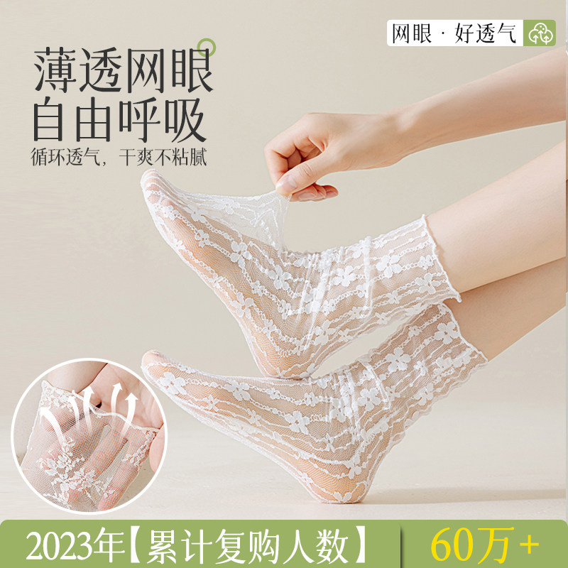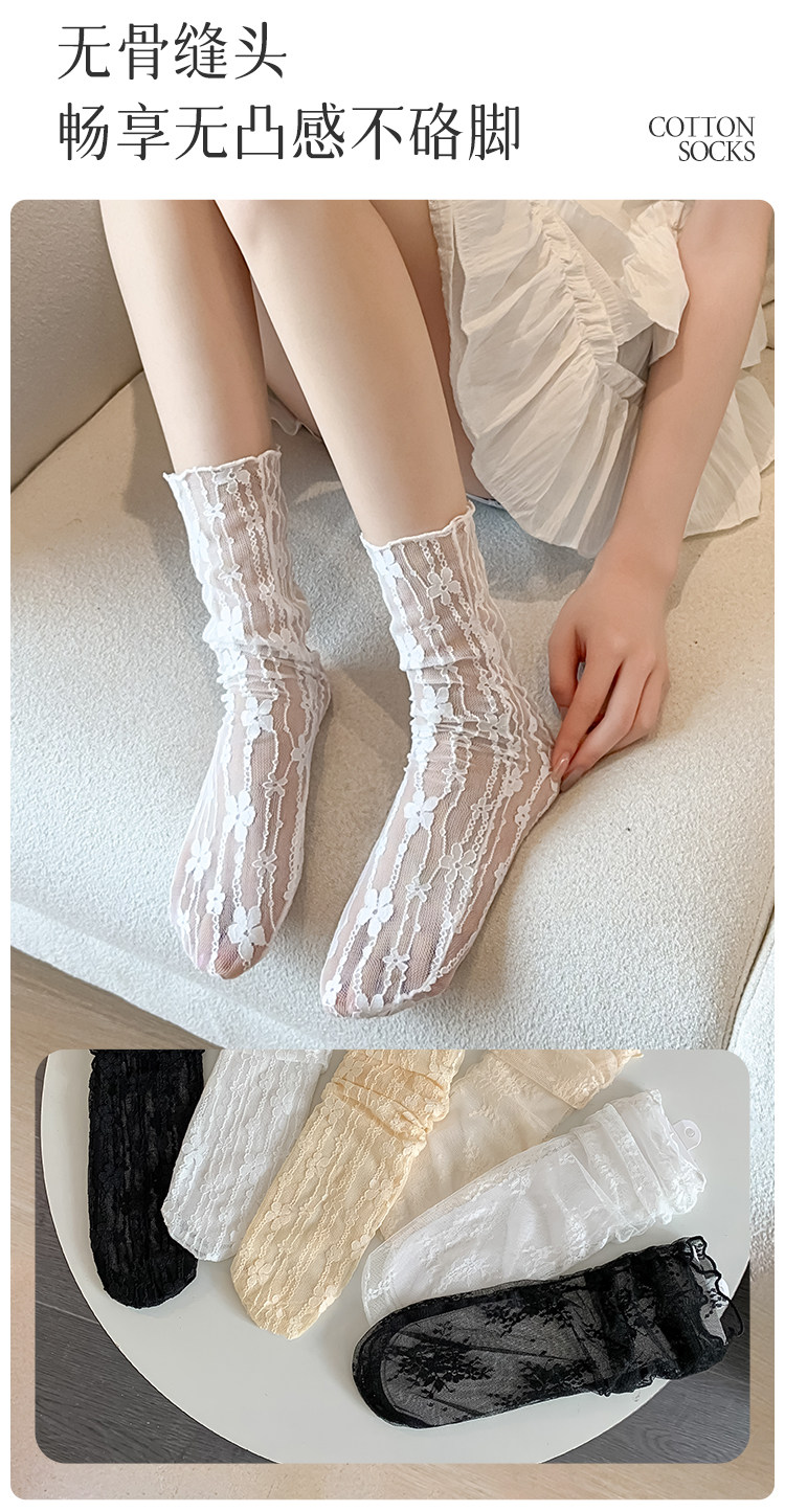 Кружевные колготки, летние тонкие белые цветные носки, средней длины