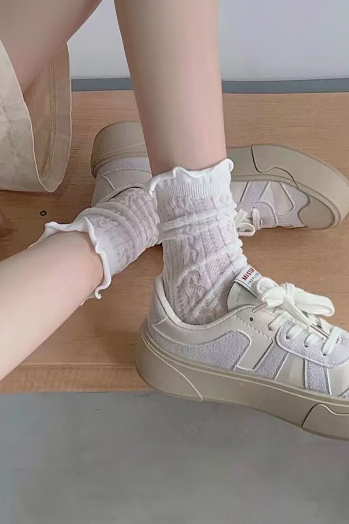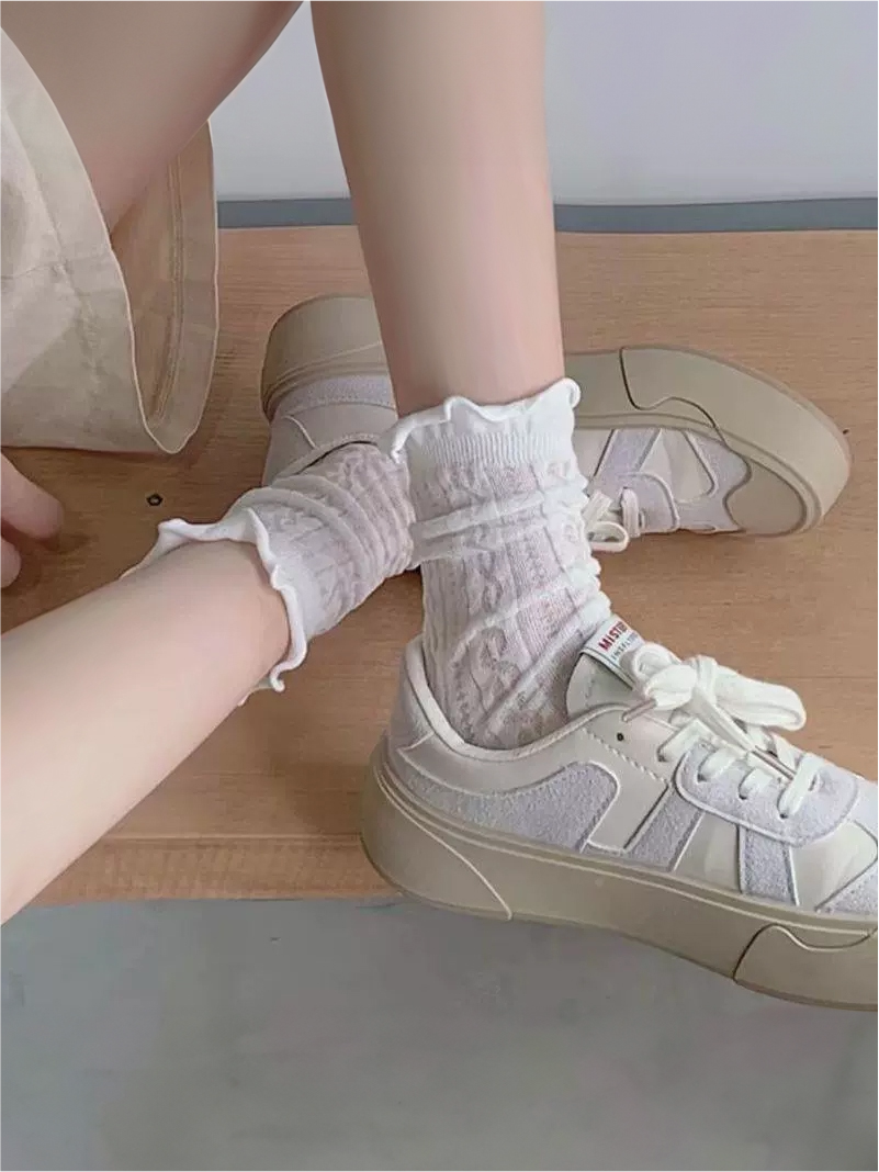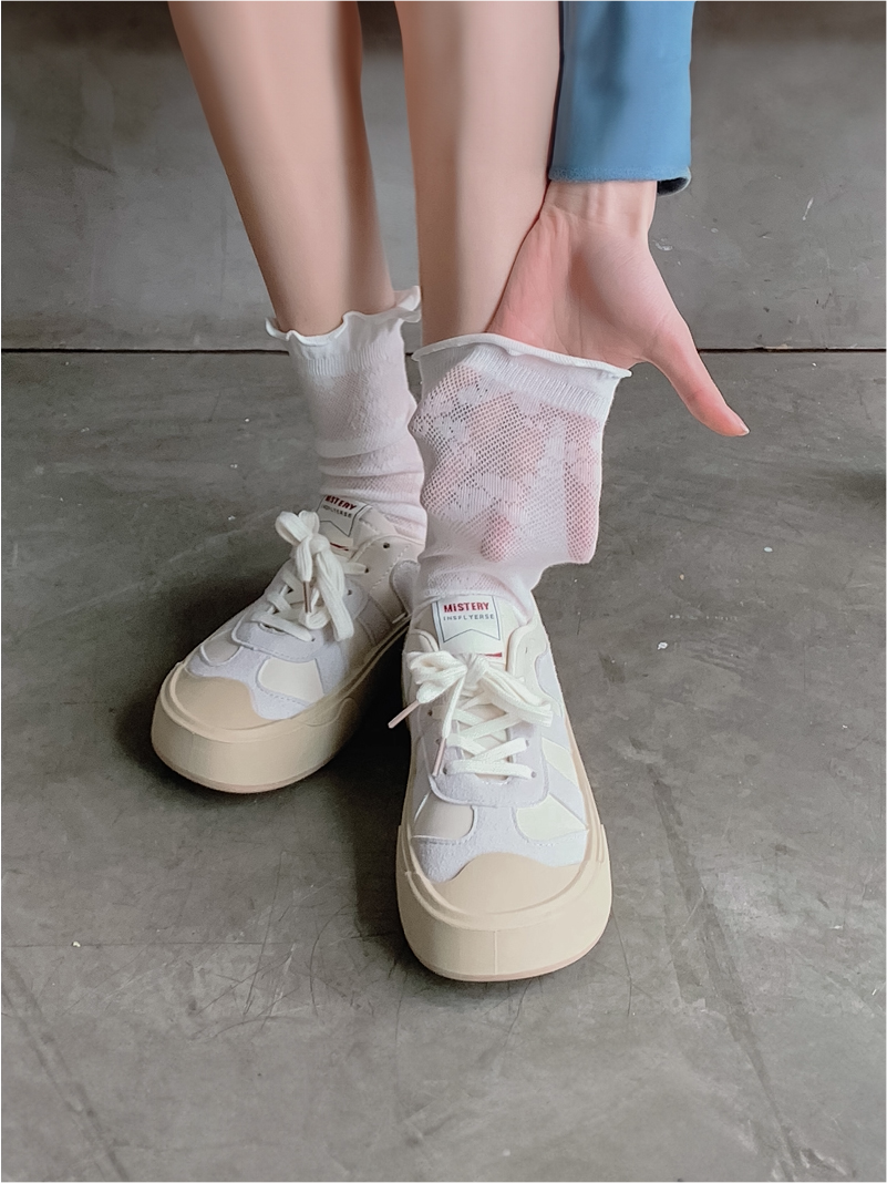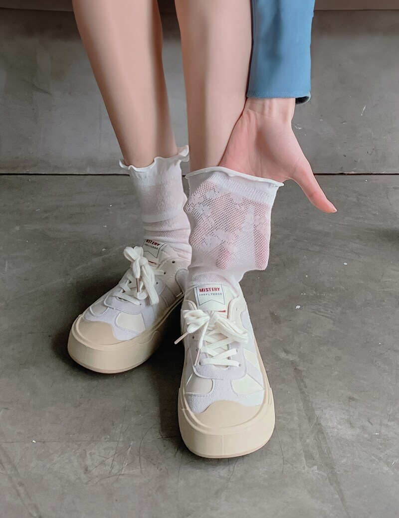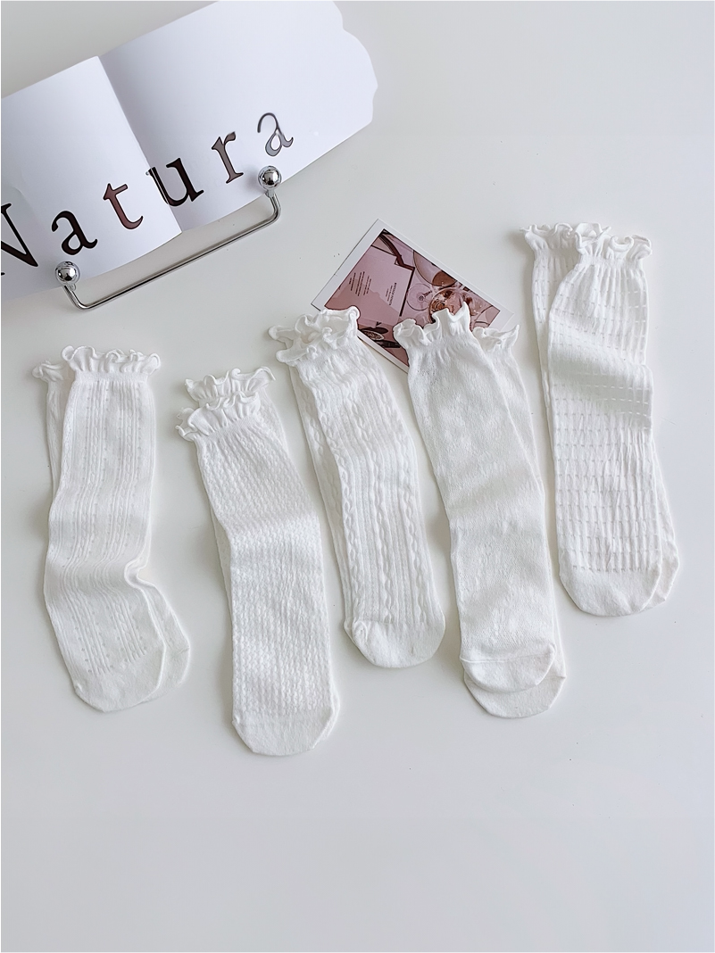 Летние тонкие дышащие белые гольфы, носки, средней длины