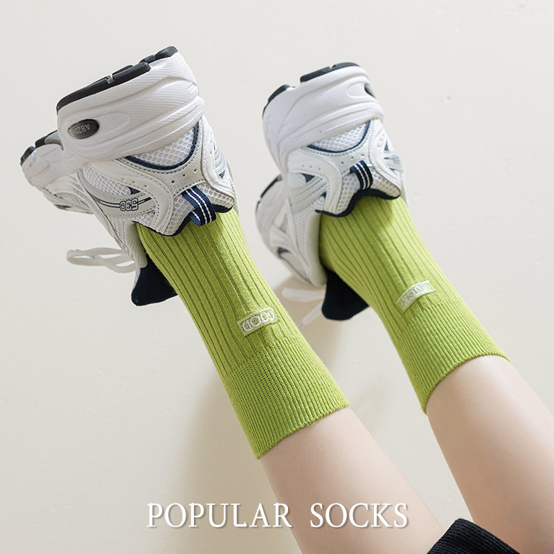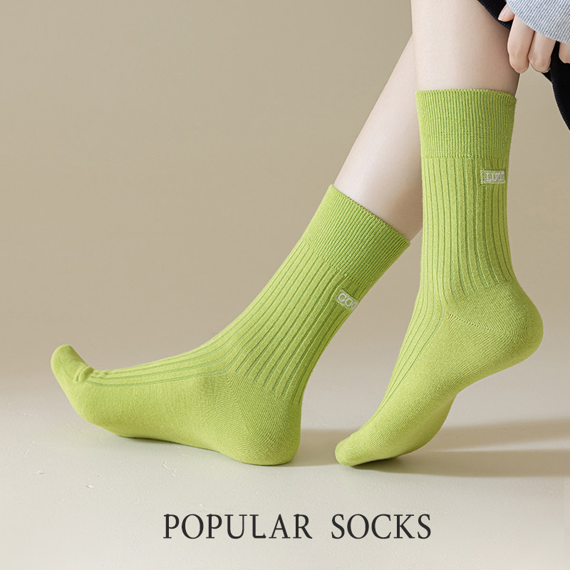Зеленые летние тонкие антибактериальные хлопковые носки подходит для мужчин и женщин, с вышивкой, длина миди