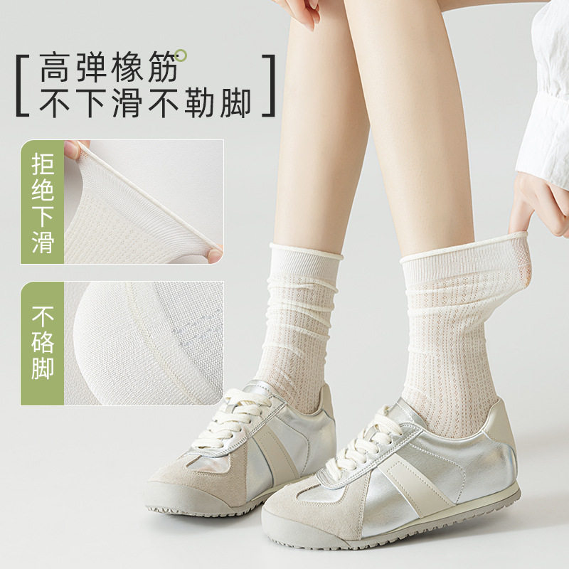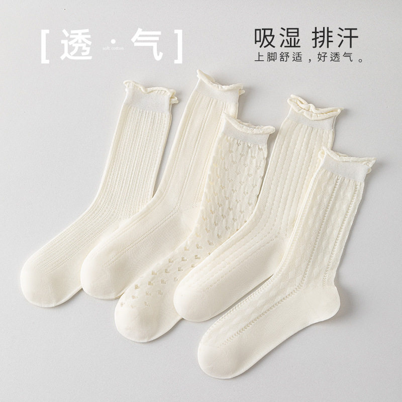 Летние тонкие носки, белые дышащие японские гольфы, средней длины