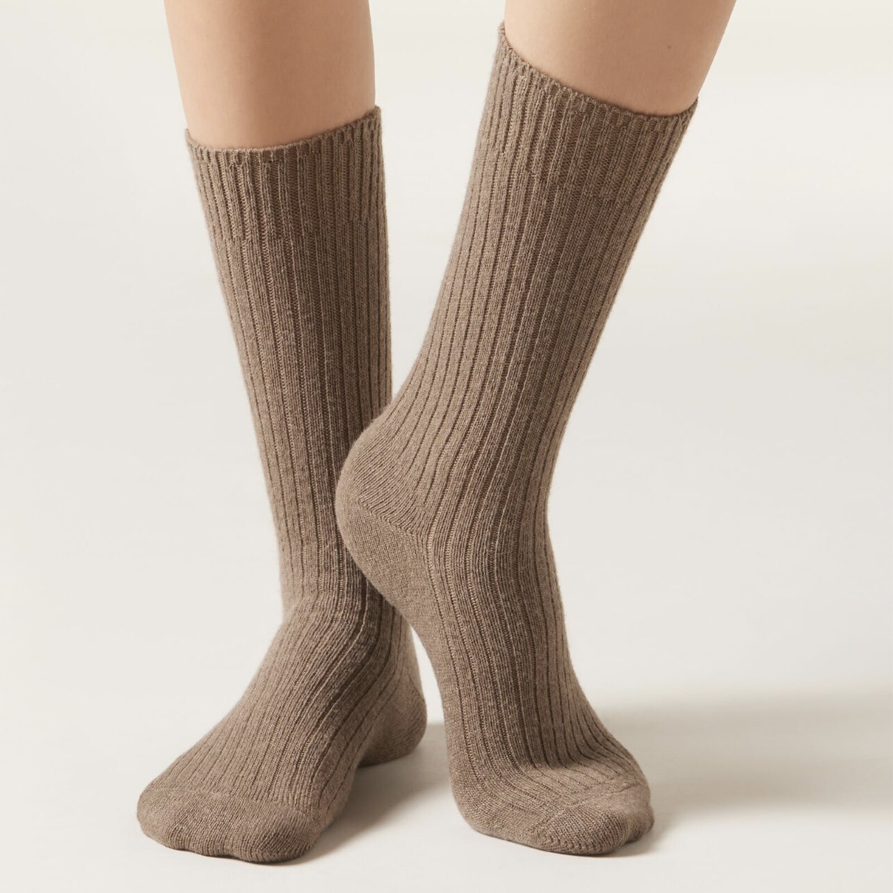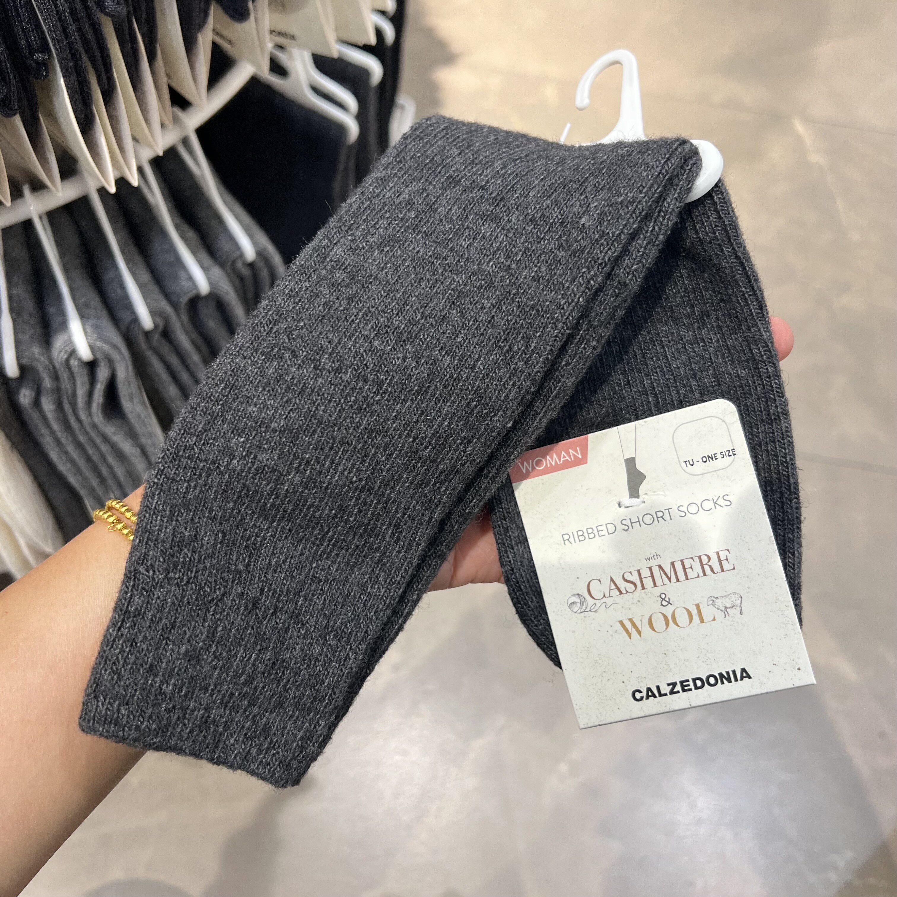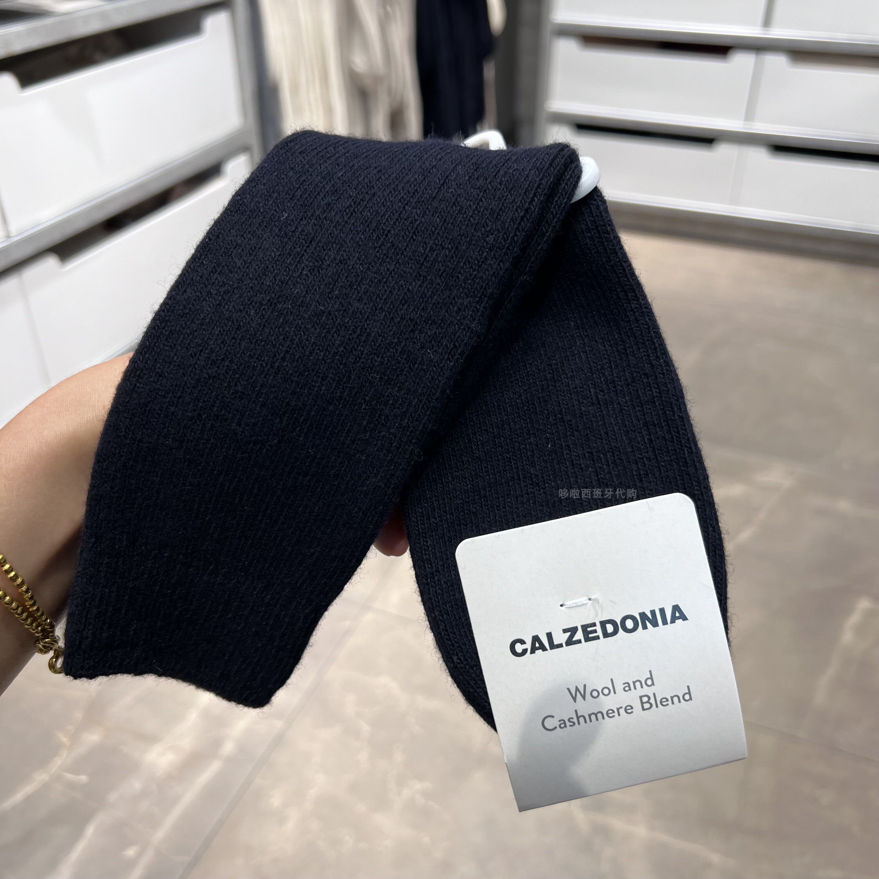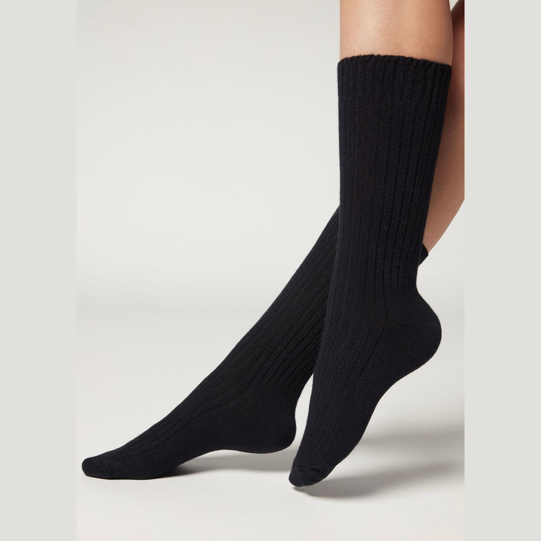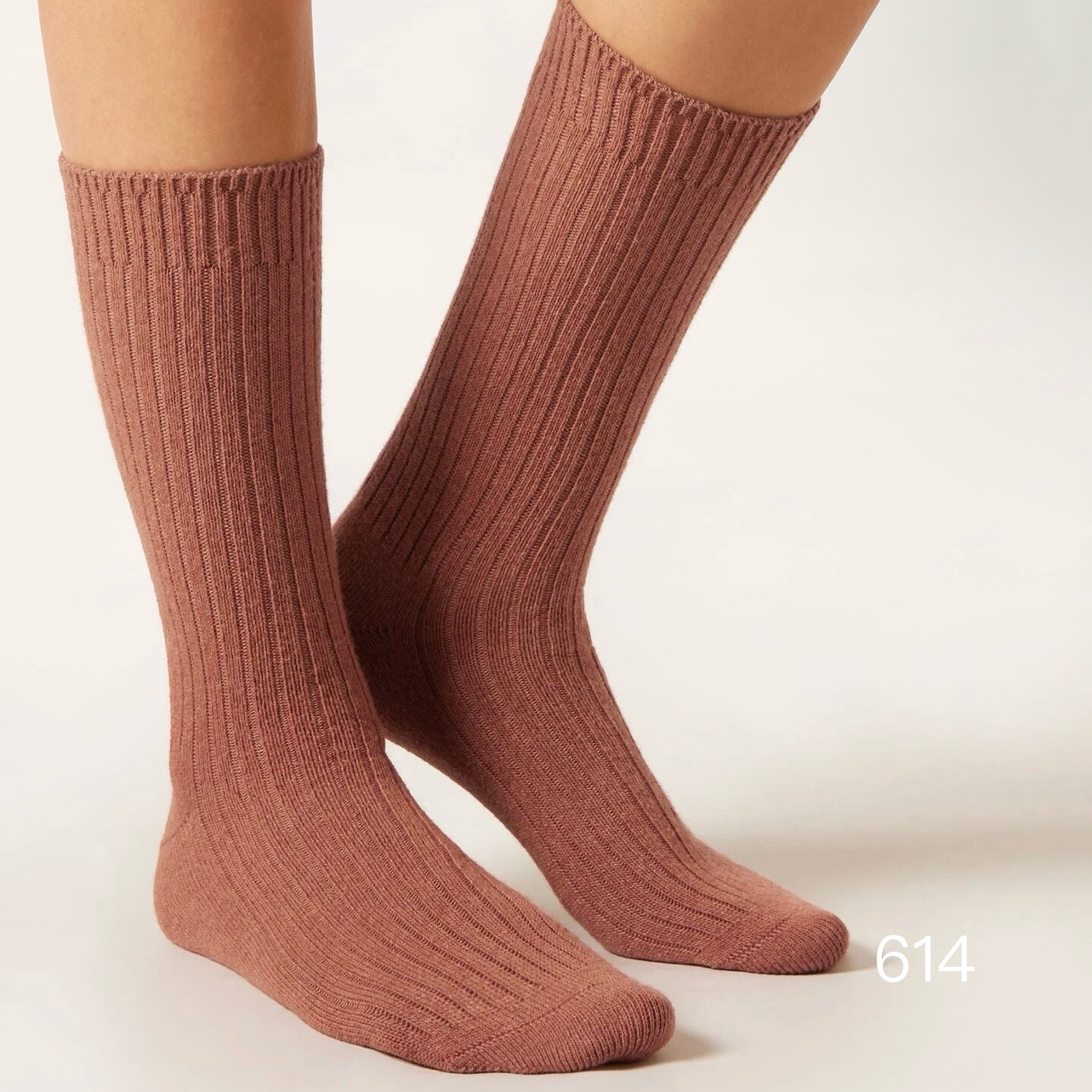 欧版CALZEDONIA 中筒袜山羊绒保暖舒适秋冬纯色罗纹堆堆袜条纹袜子
