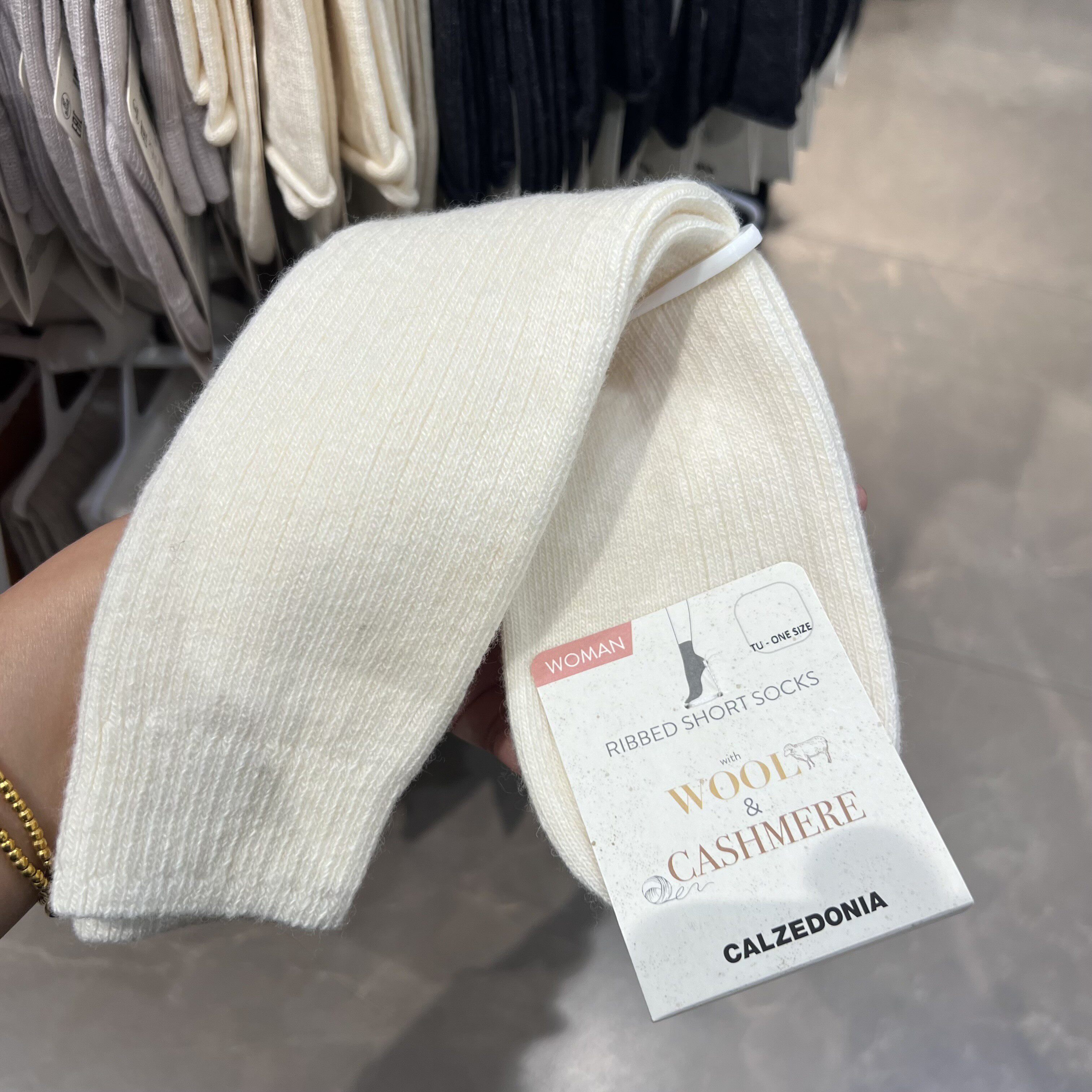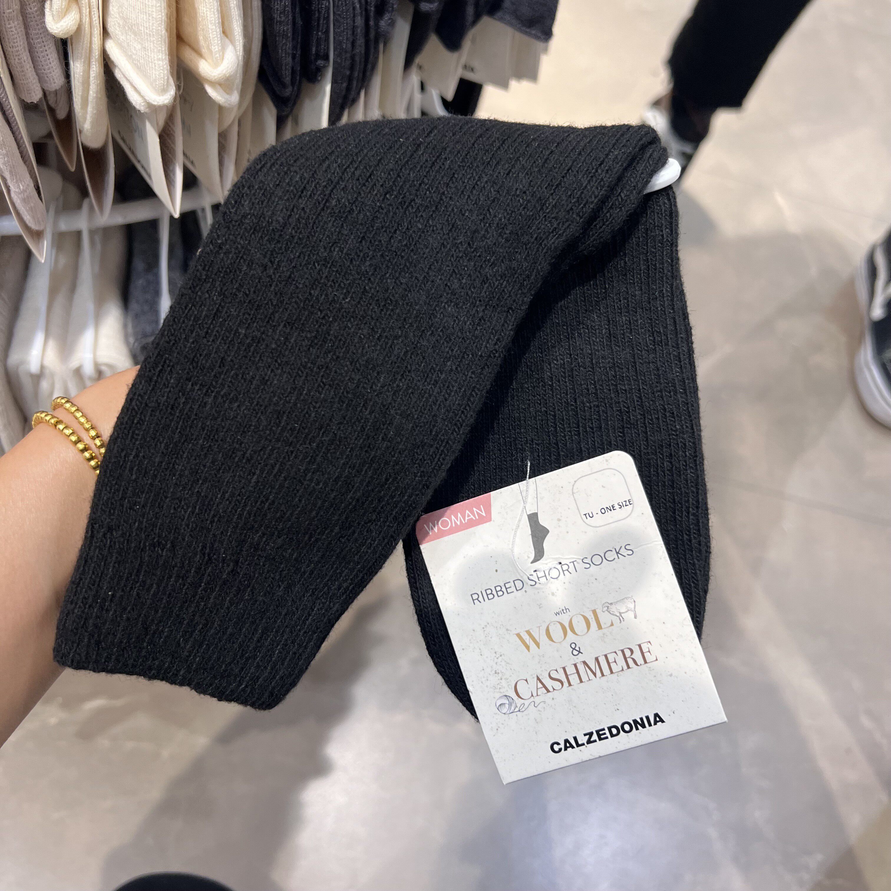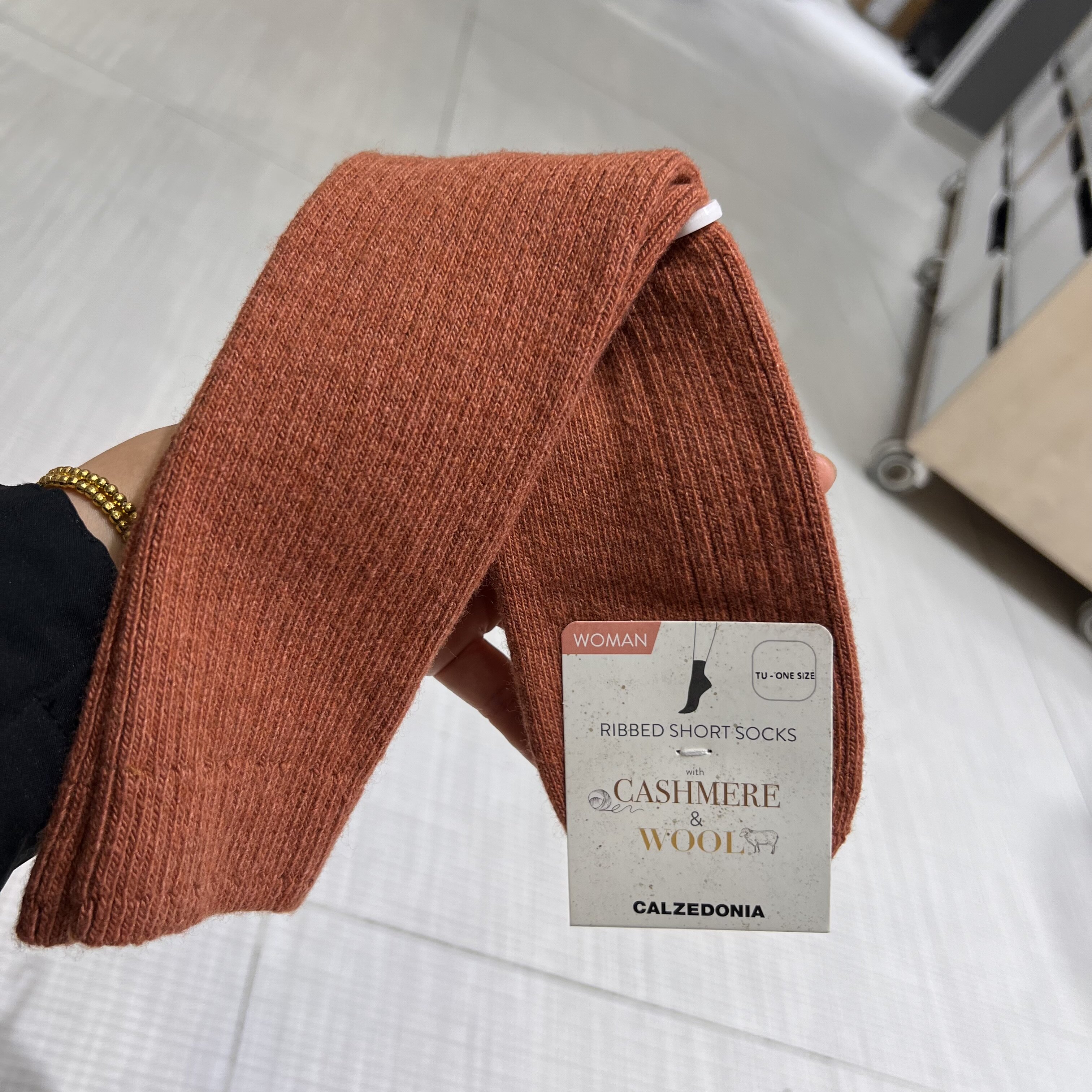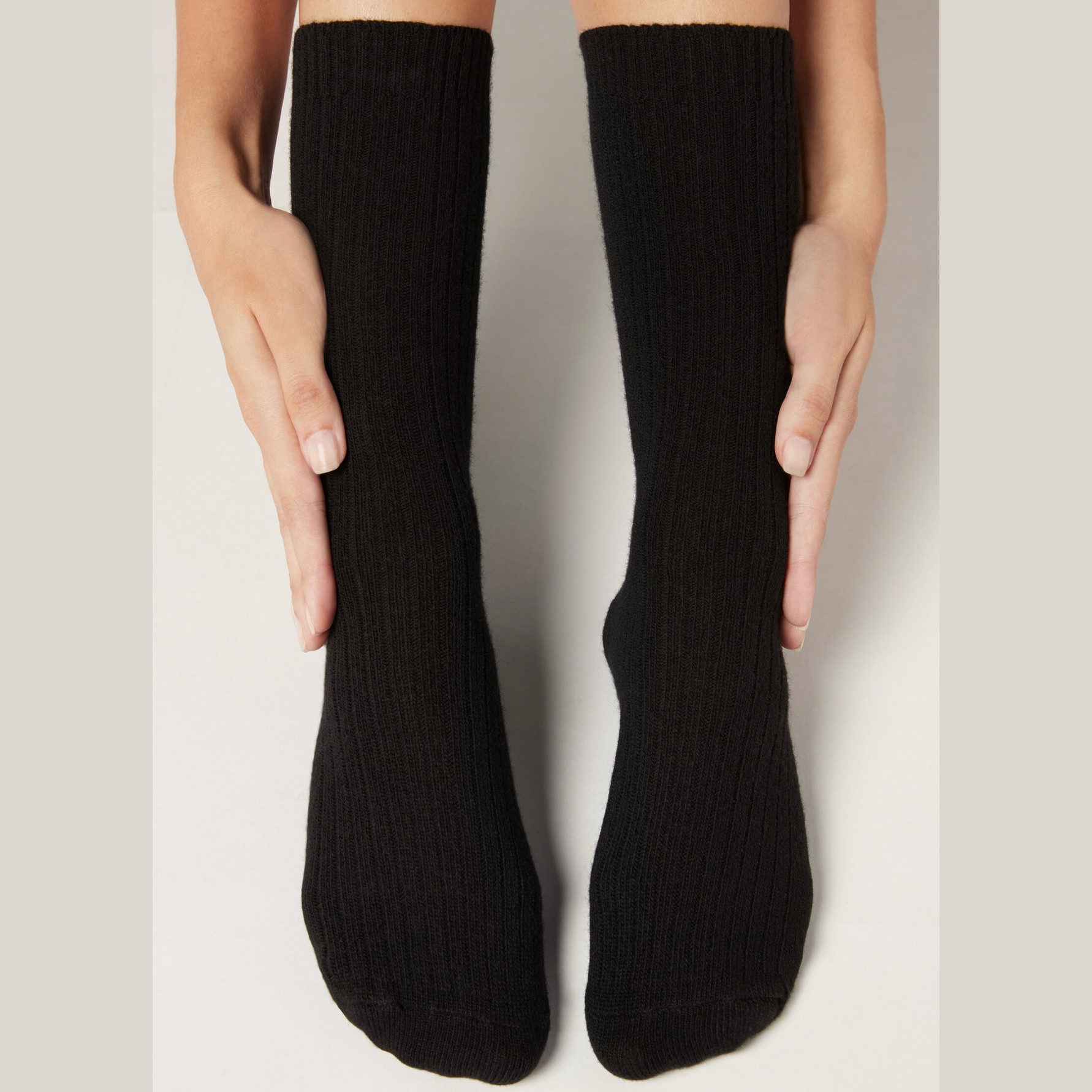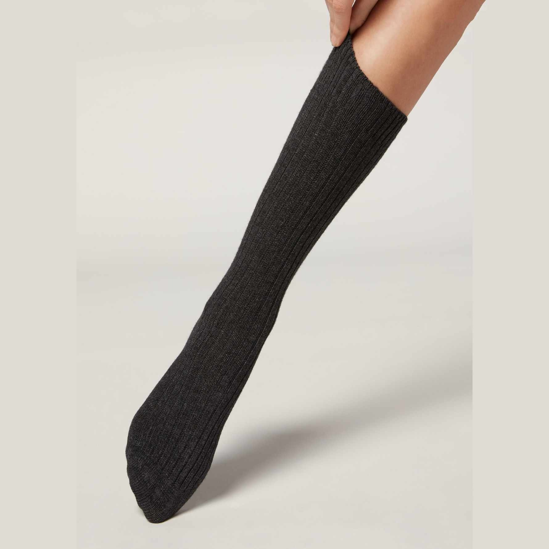 欧版CALZEDONIA 中筒袜山羊绒保暖舒适秋冬纯色罗纹堆堆袜条纹袜子