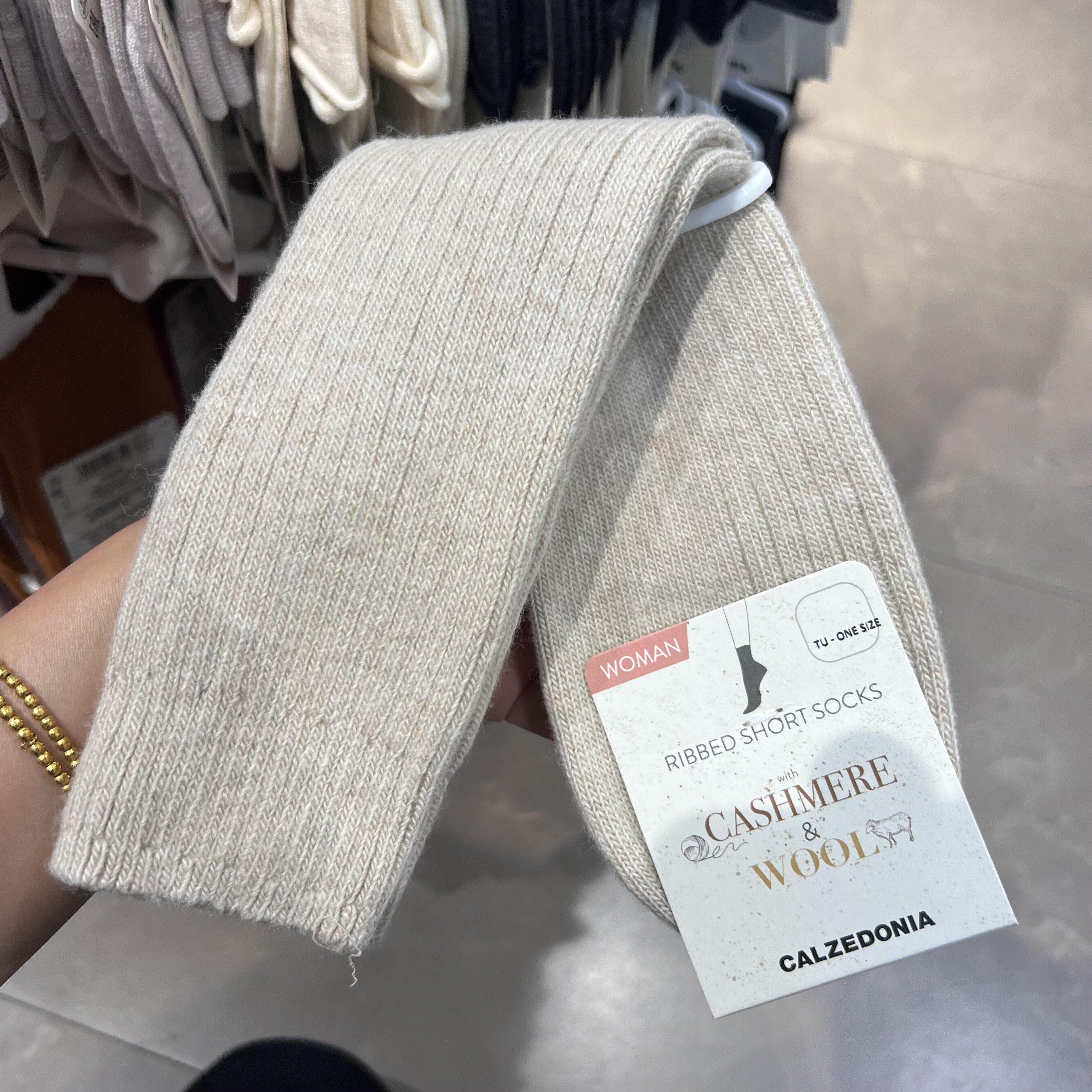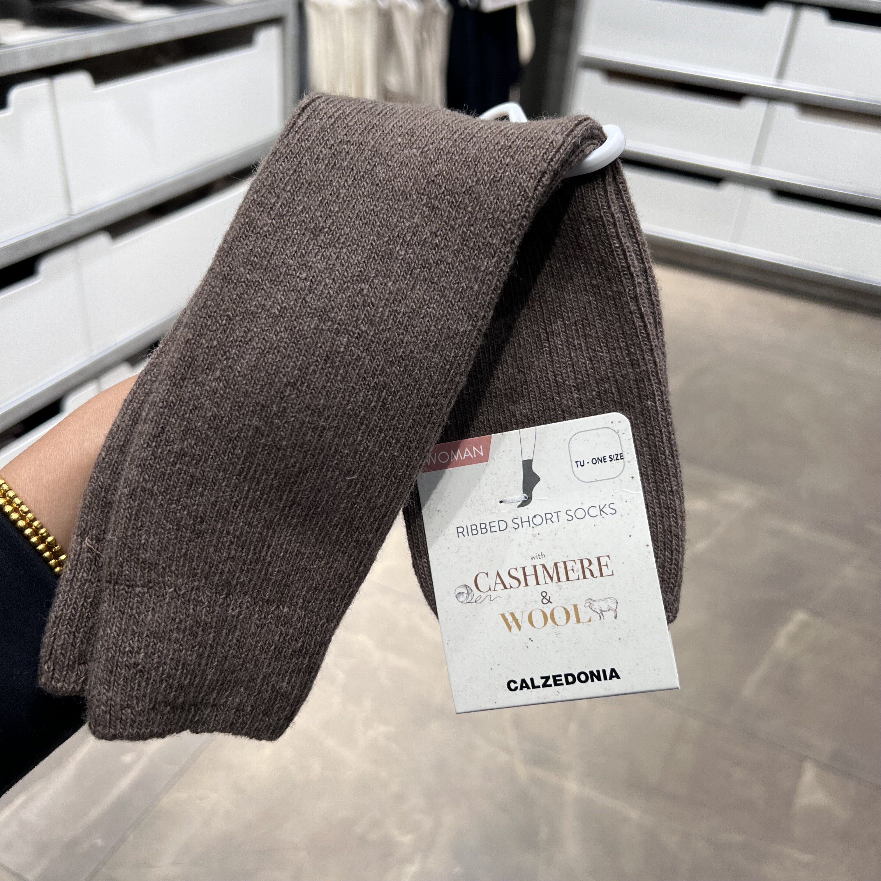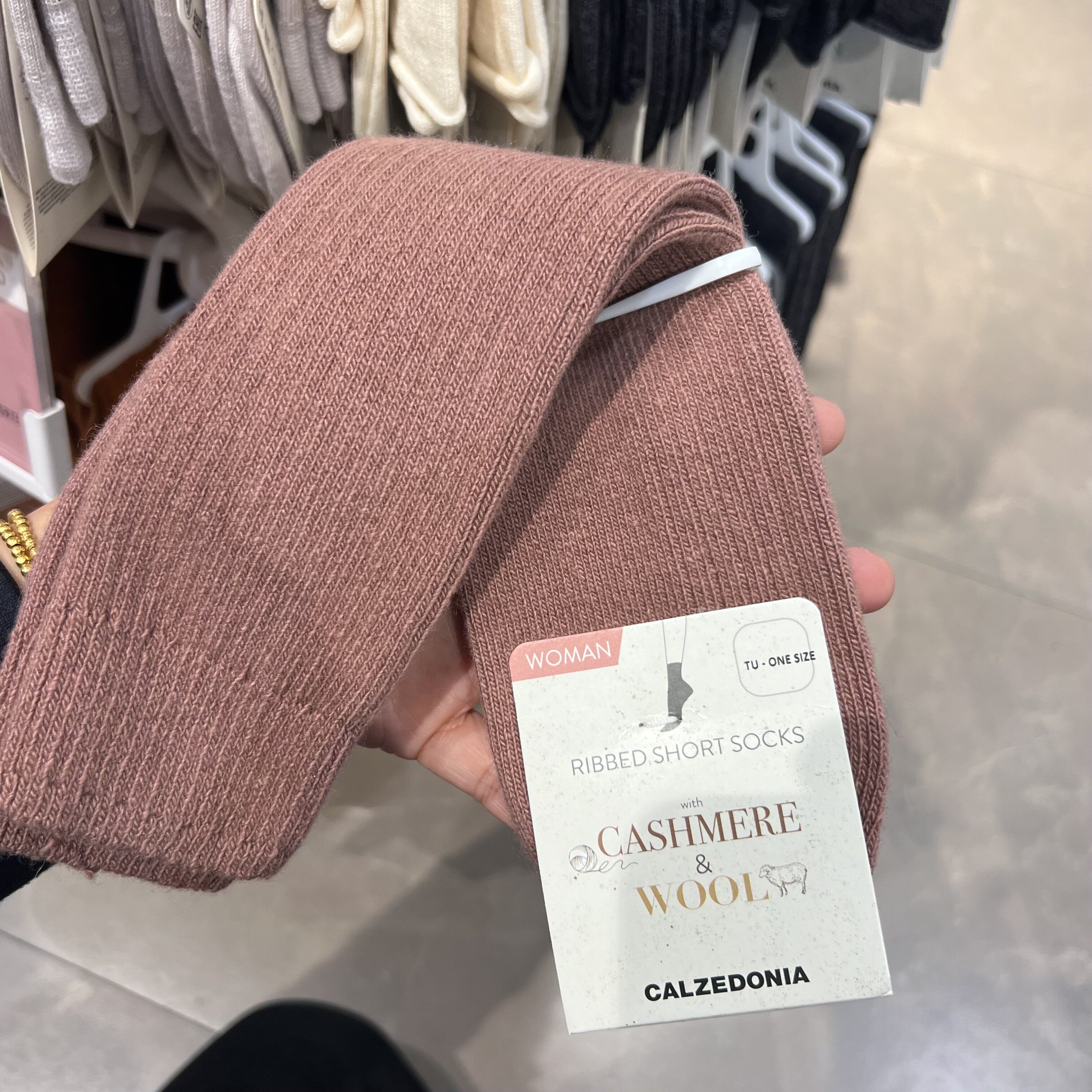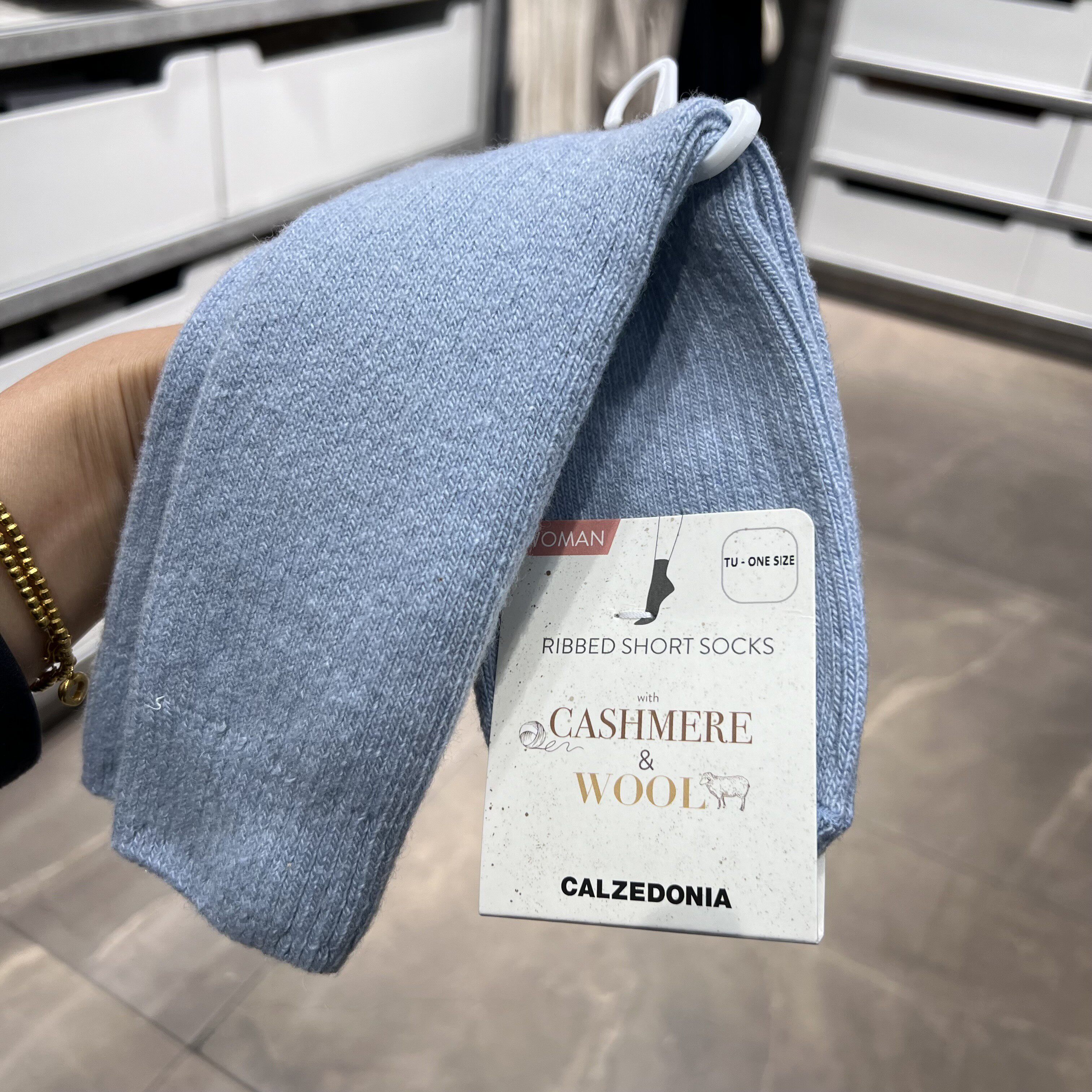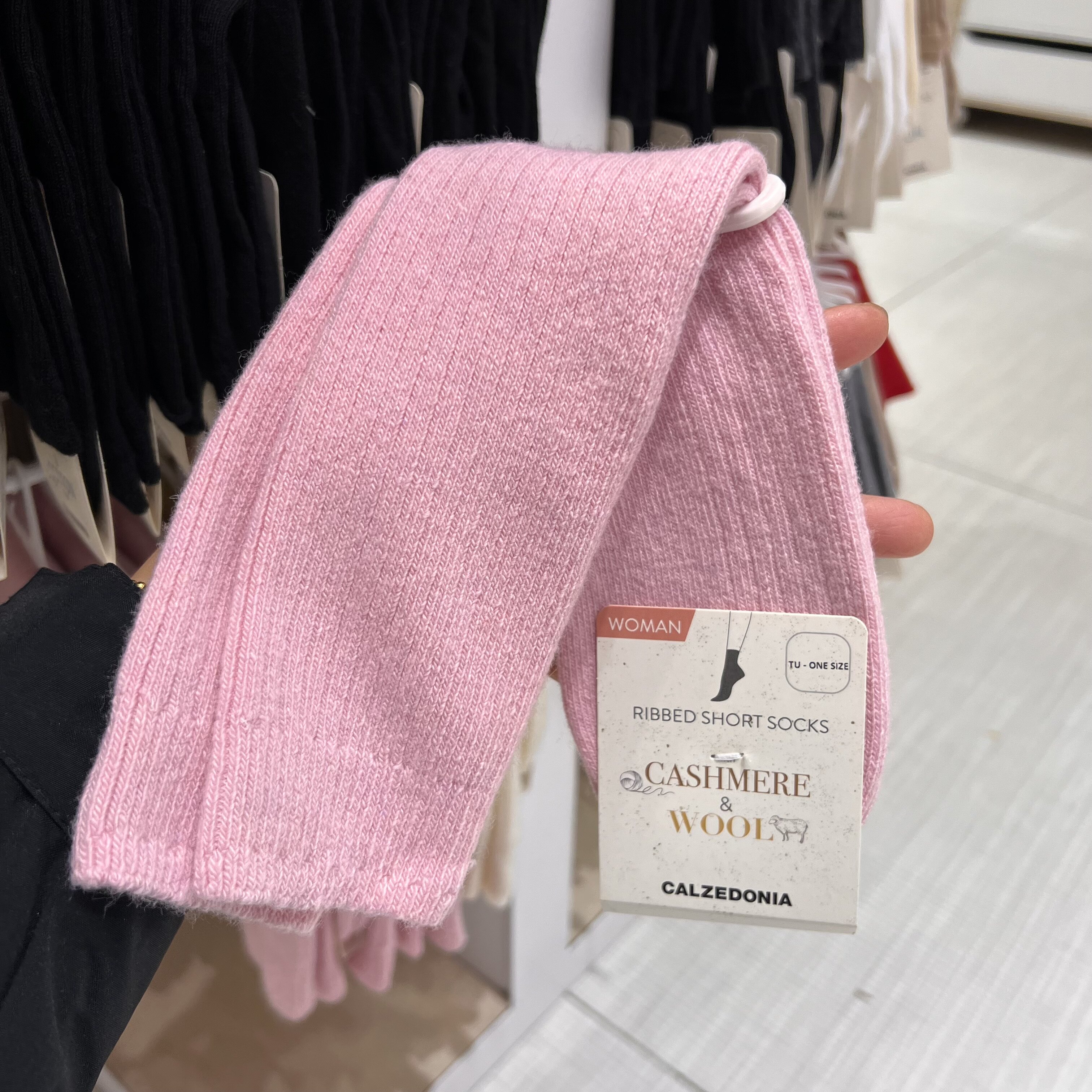 欧版CALZEDONIA 中筒袜山羊绒保暖舒适秋冬纯色罗纹堆堆袜条纹袜子
