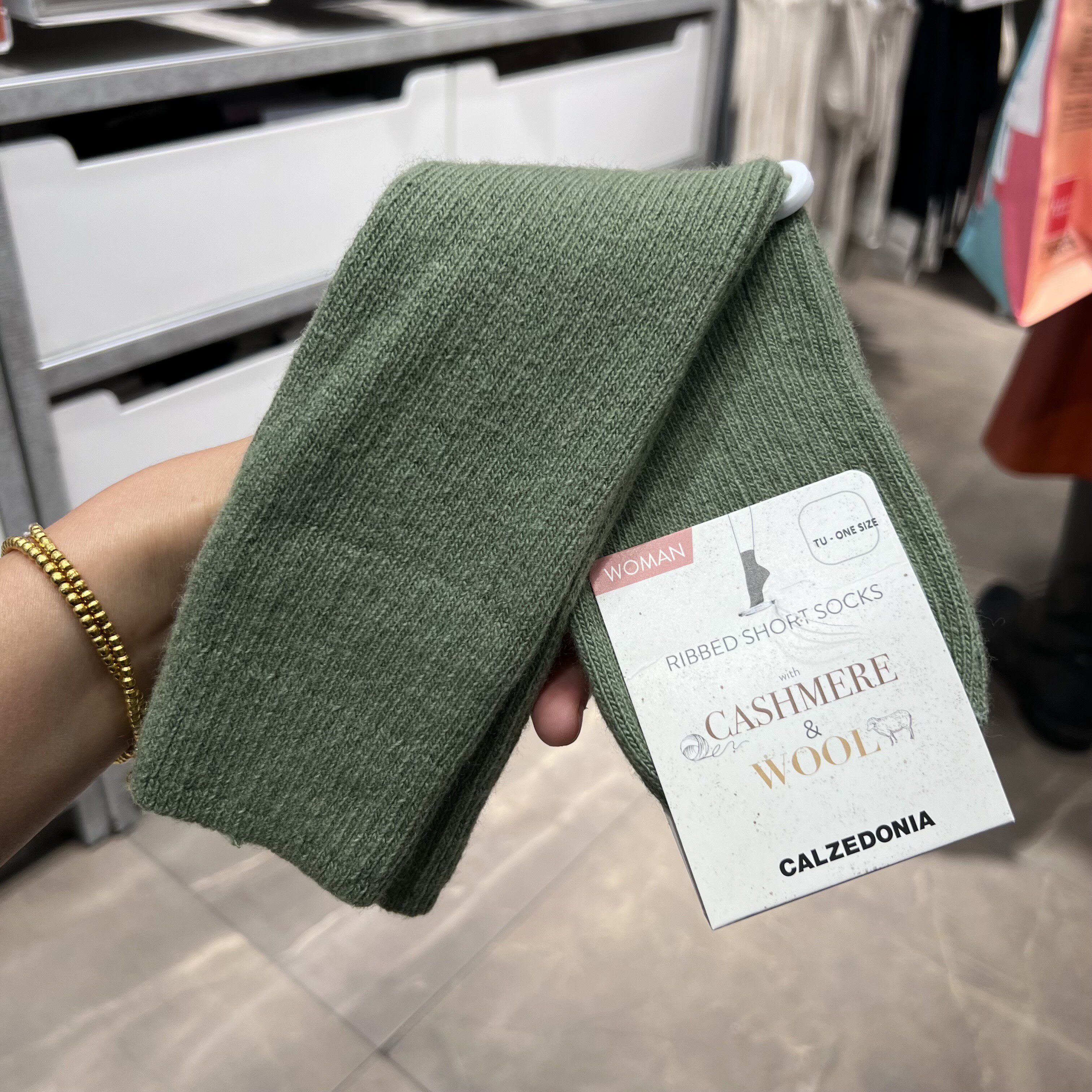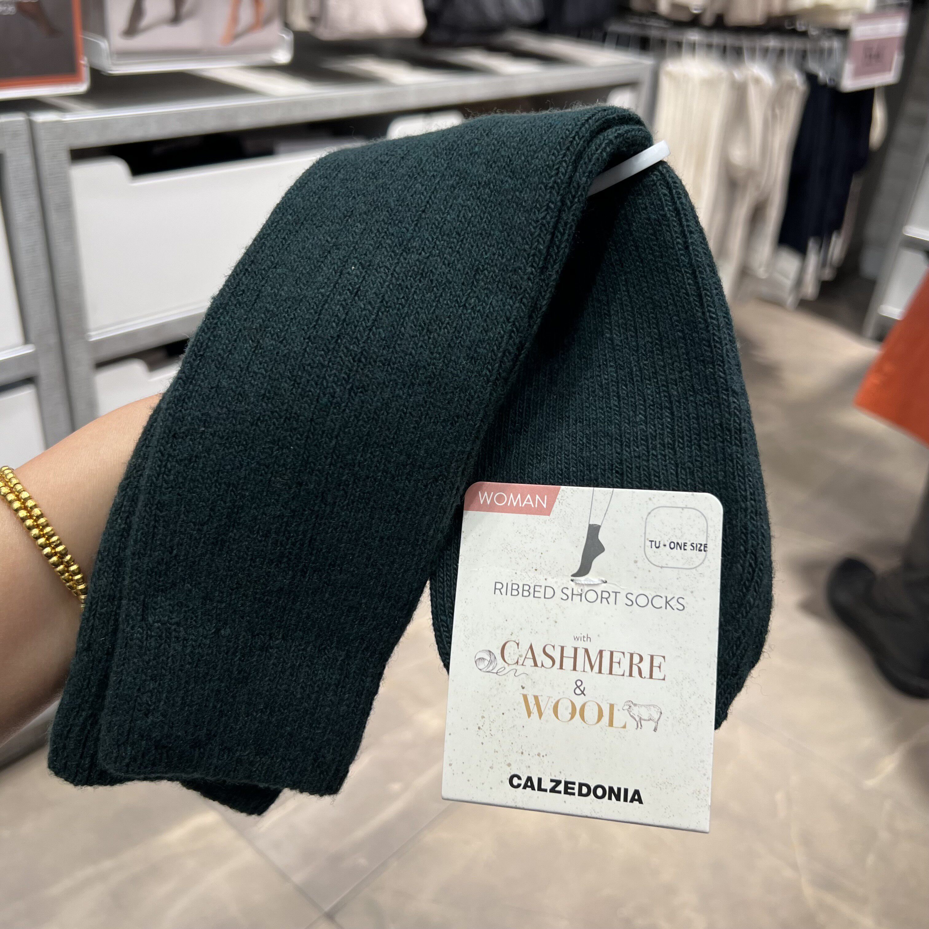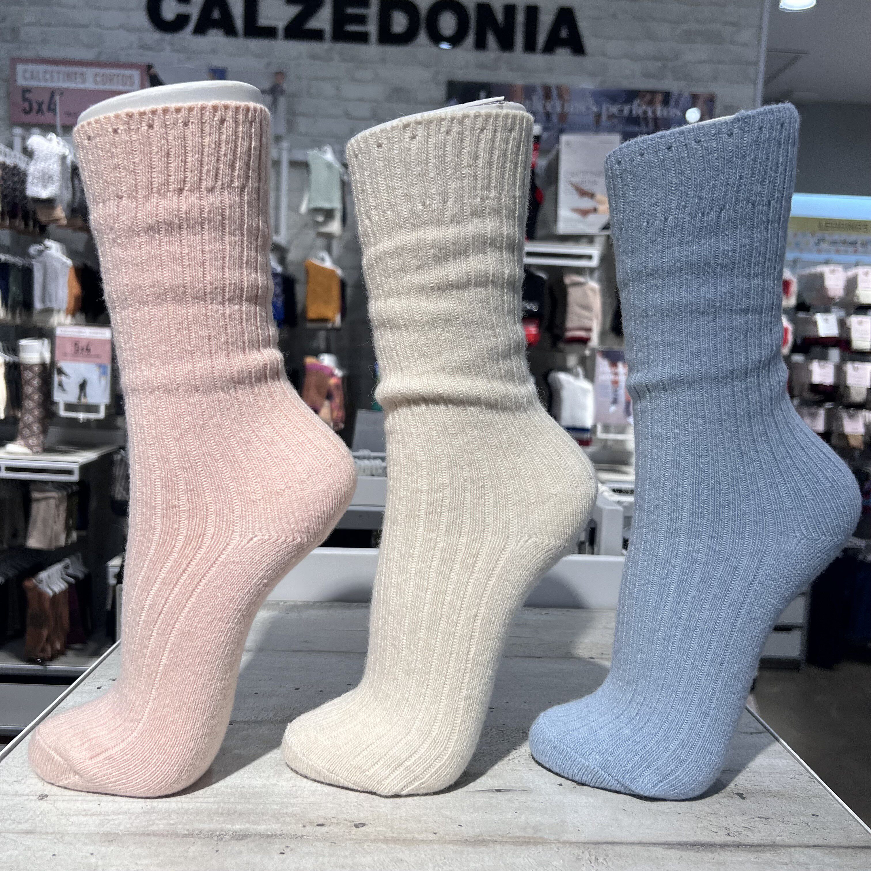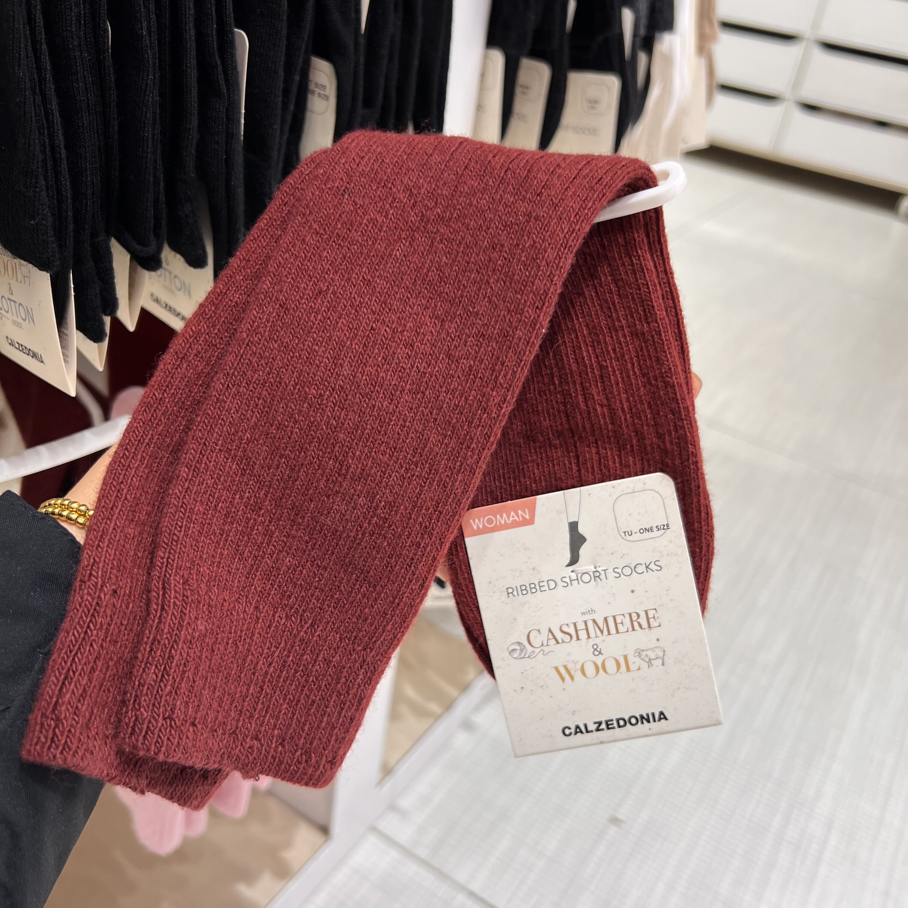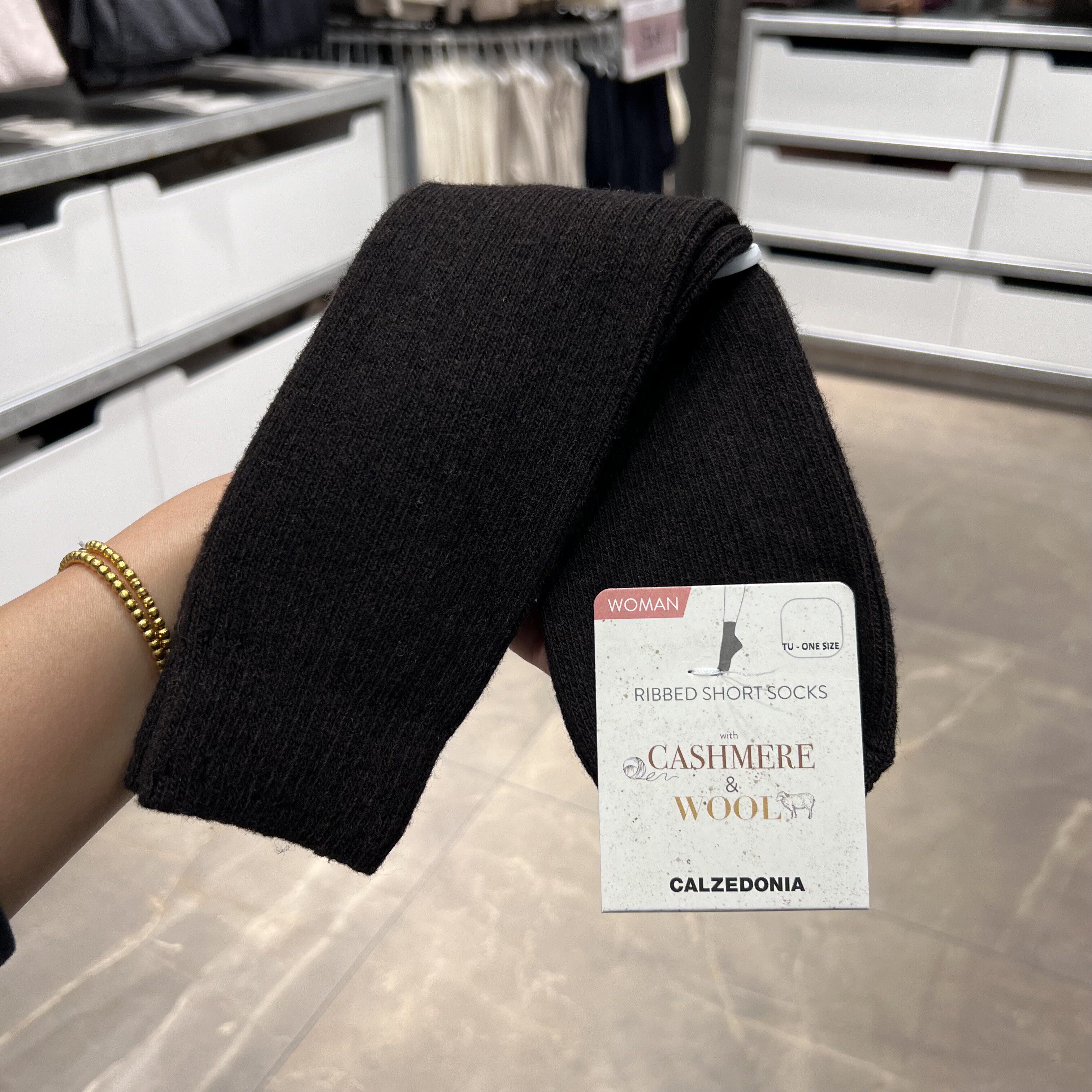 欧版CALZEDONIA 中筒袜山羊绒保暖舒适秋冬纯色罗纹堆堆袜条纹袜子