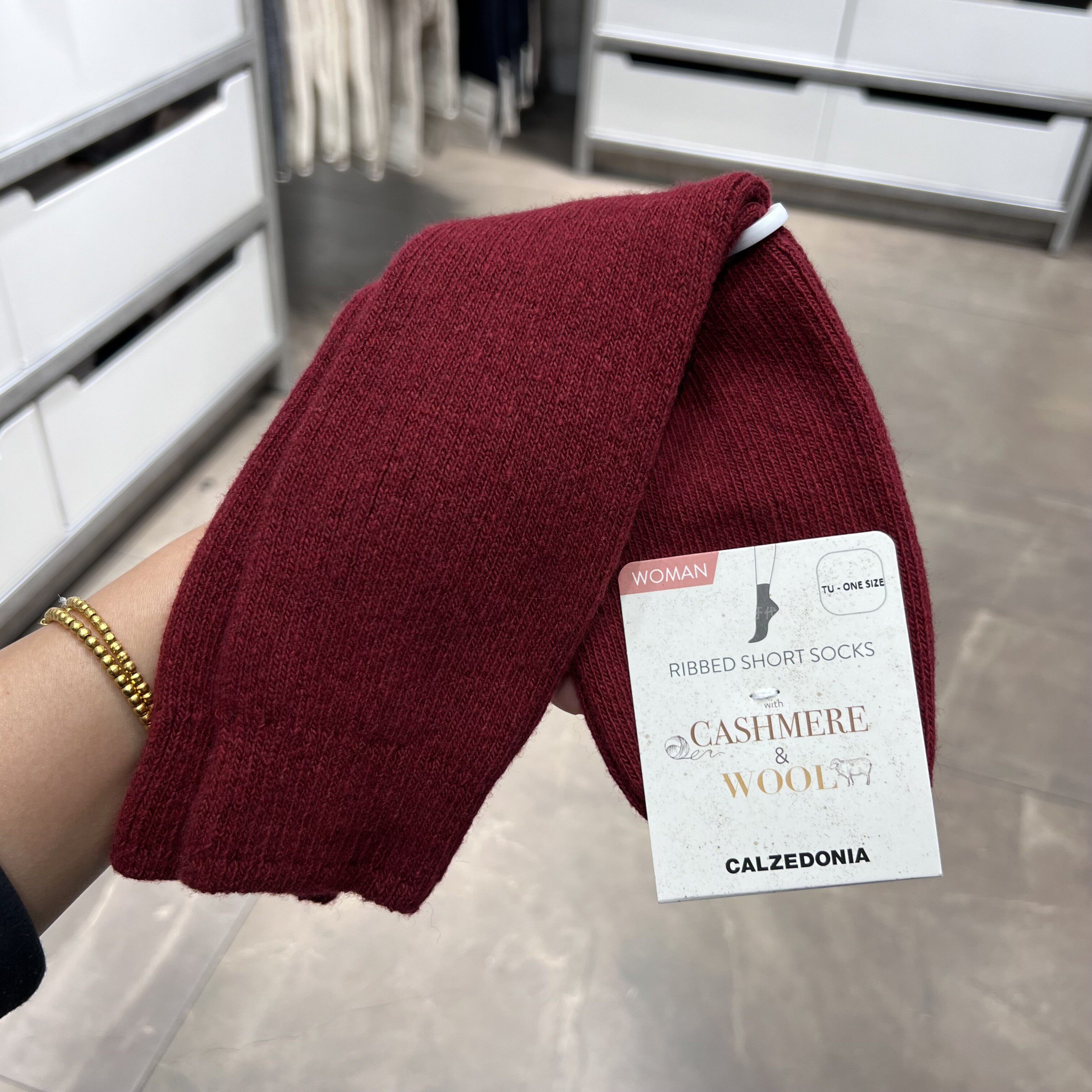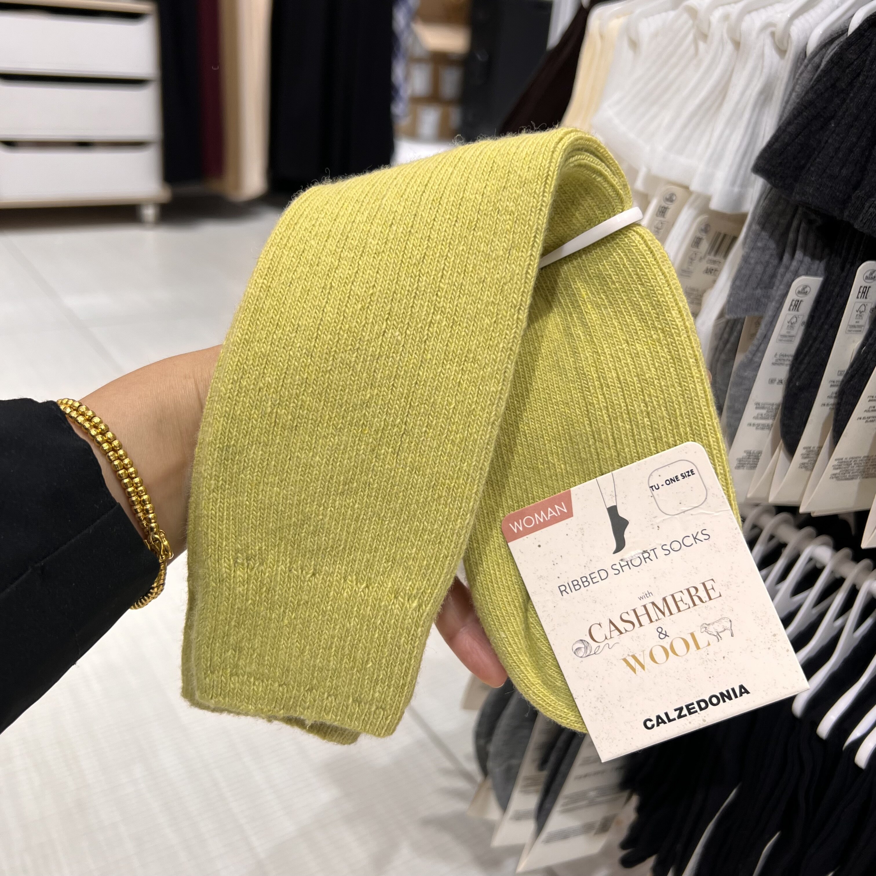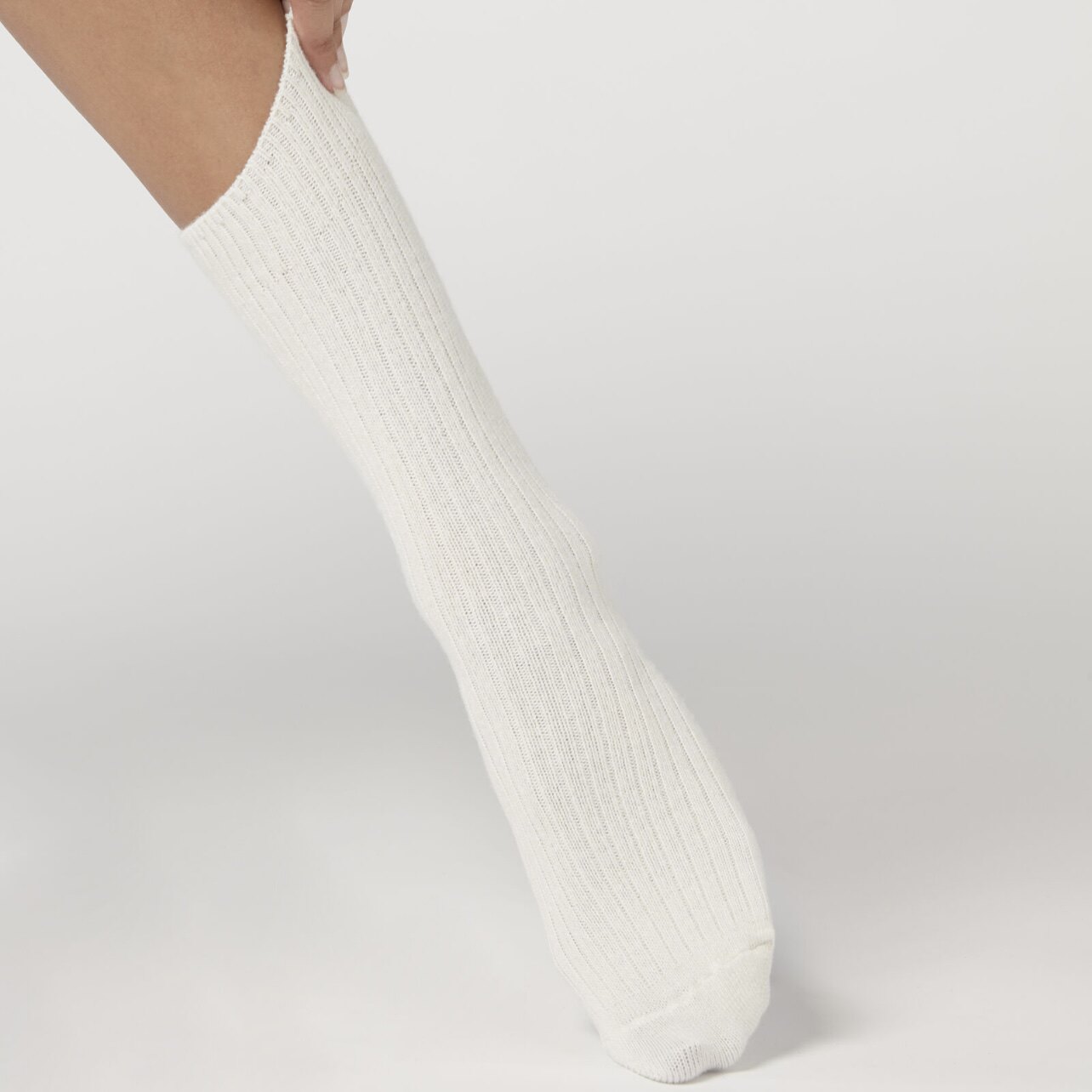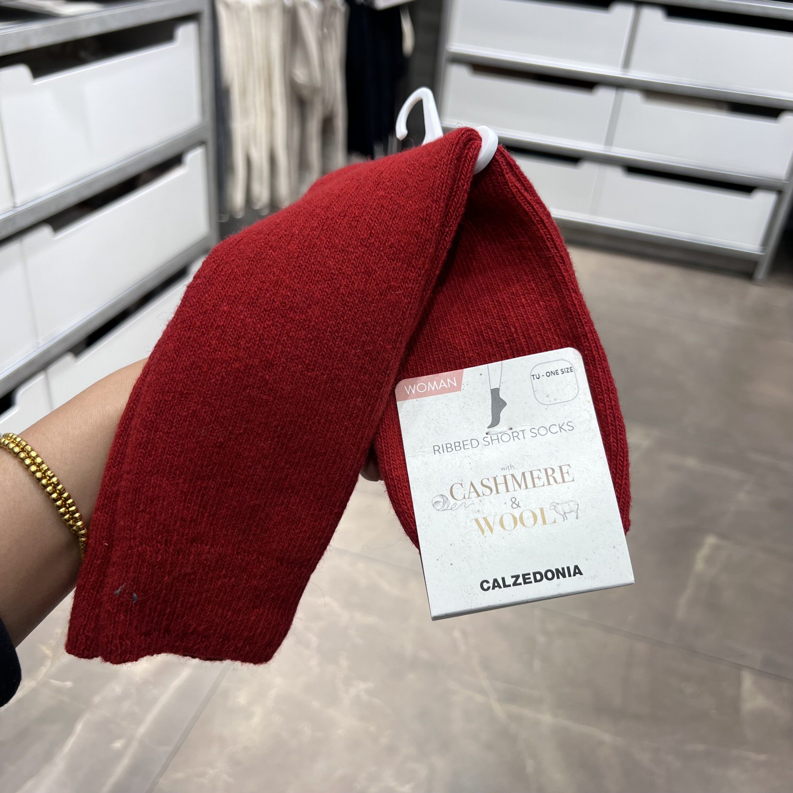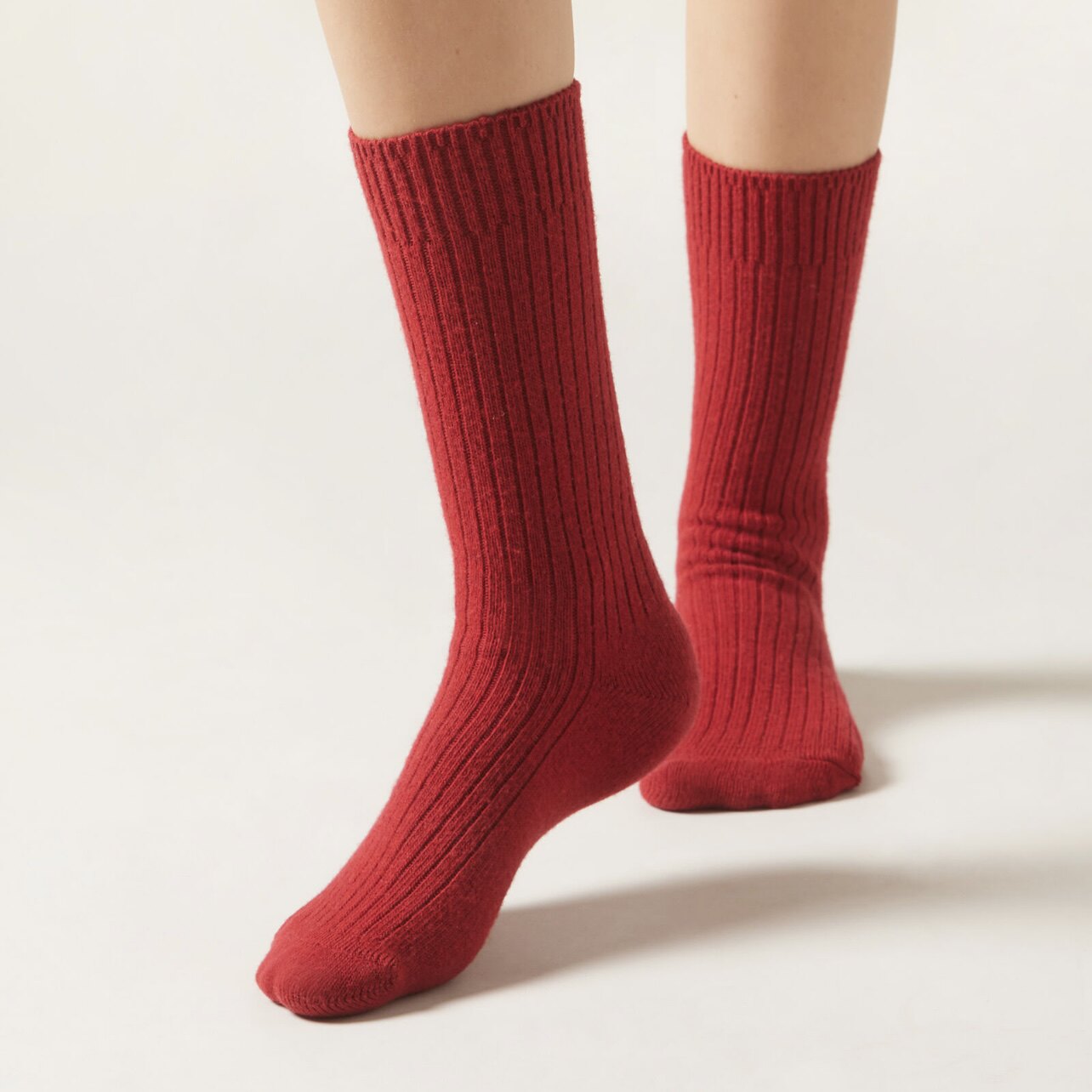 欧版CALZEDONIA 中筒袜山羊绒保暖舒适秋冬纯色罗纹堆堆袜条纹袜子