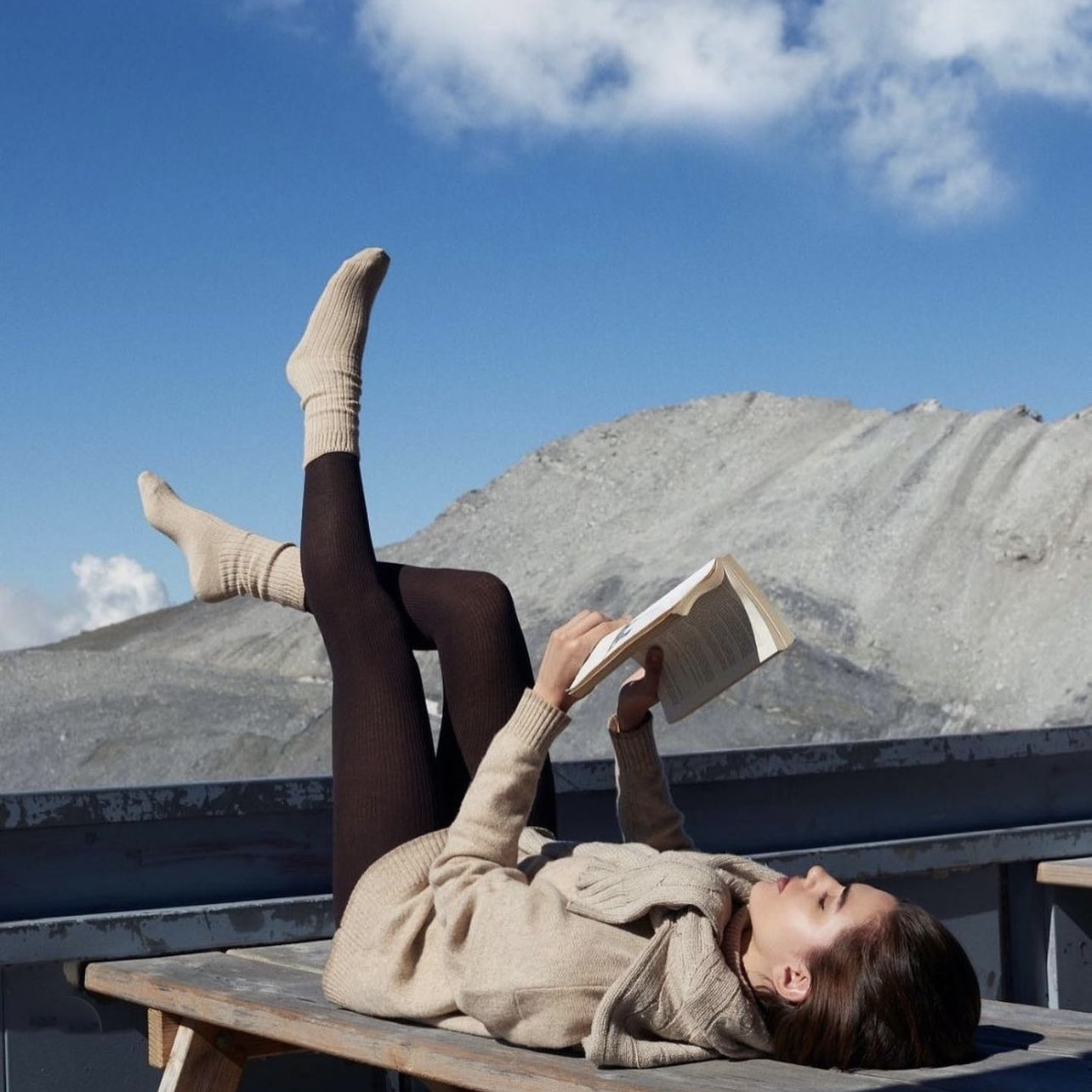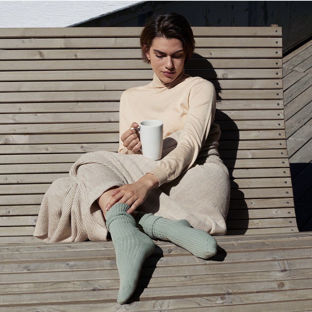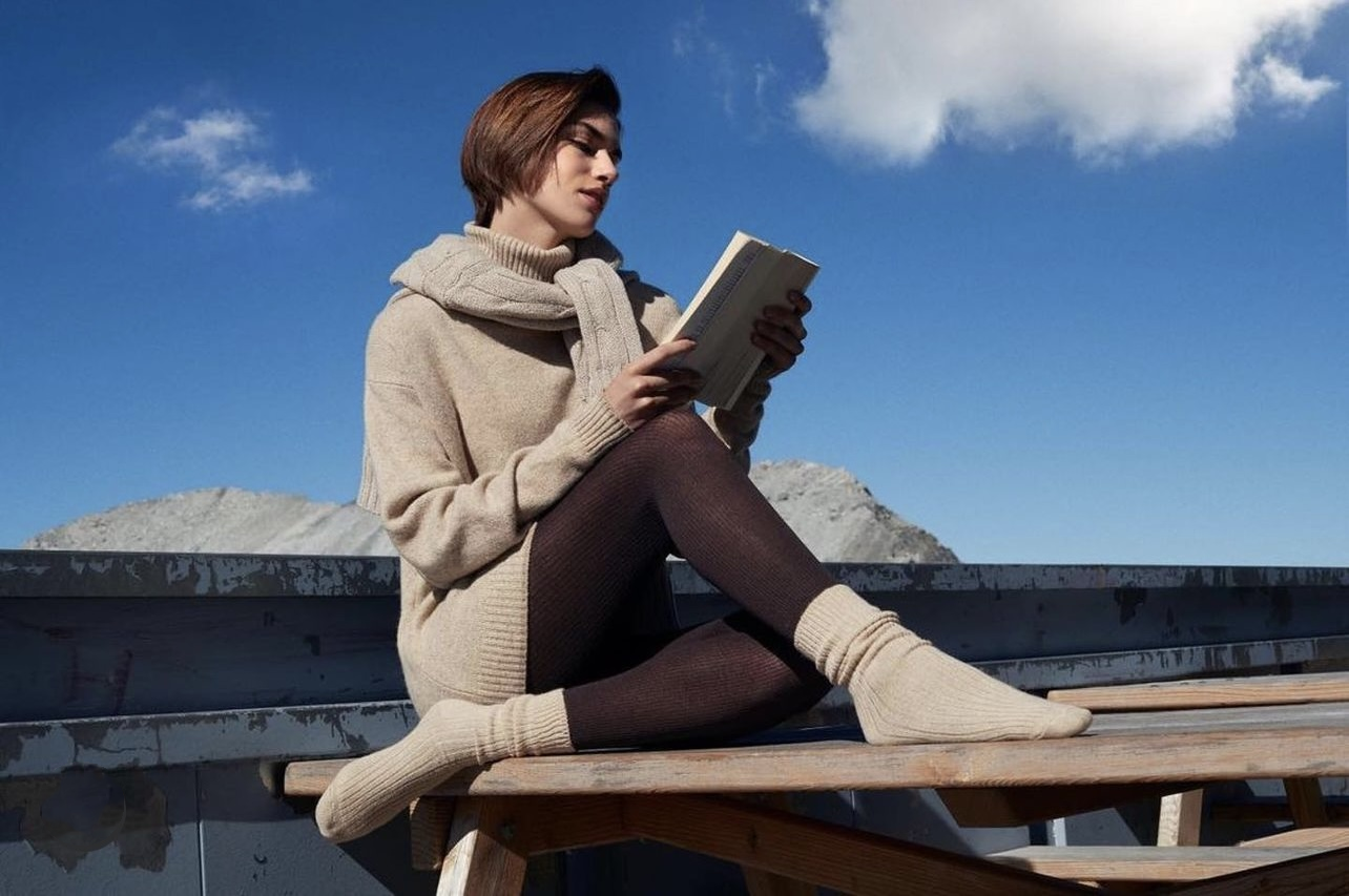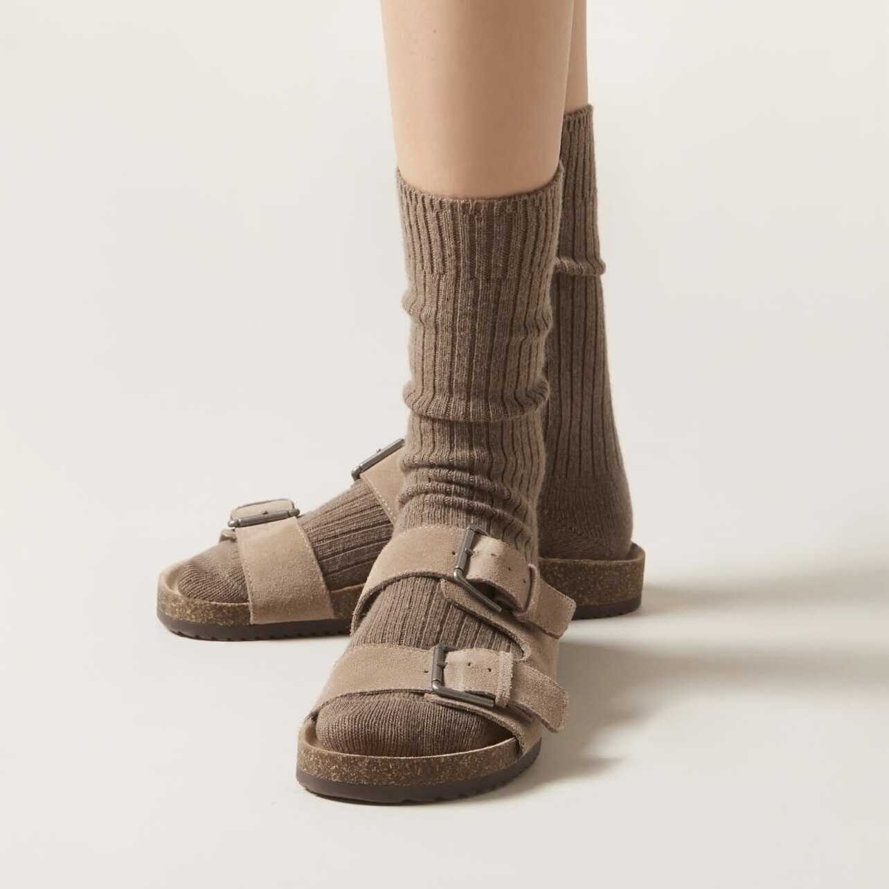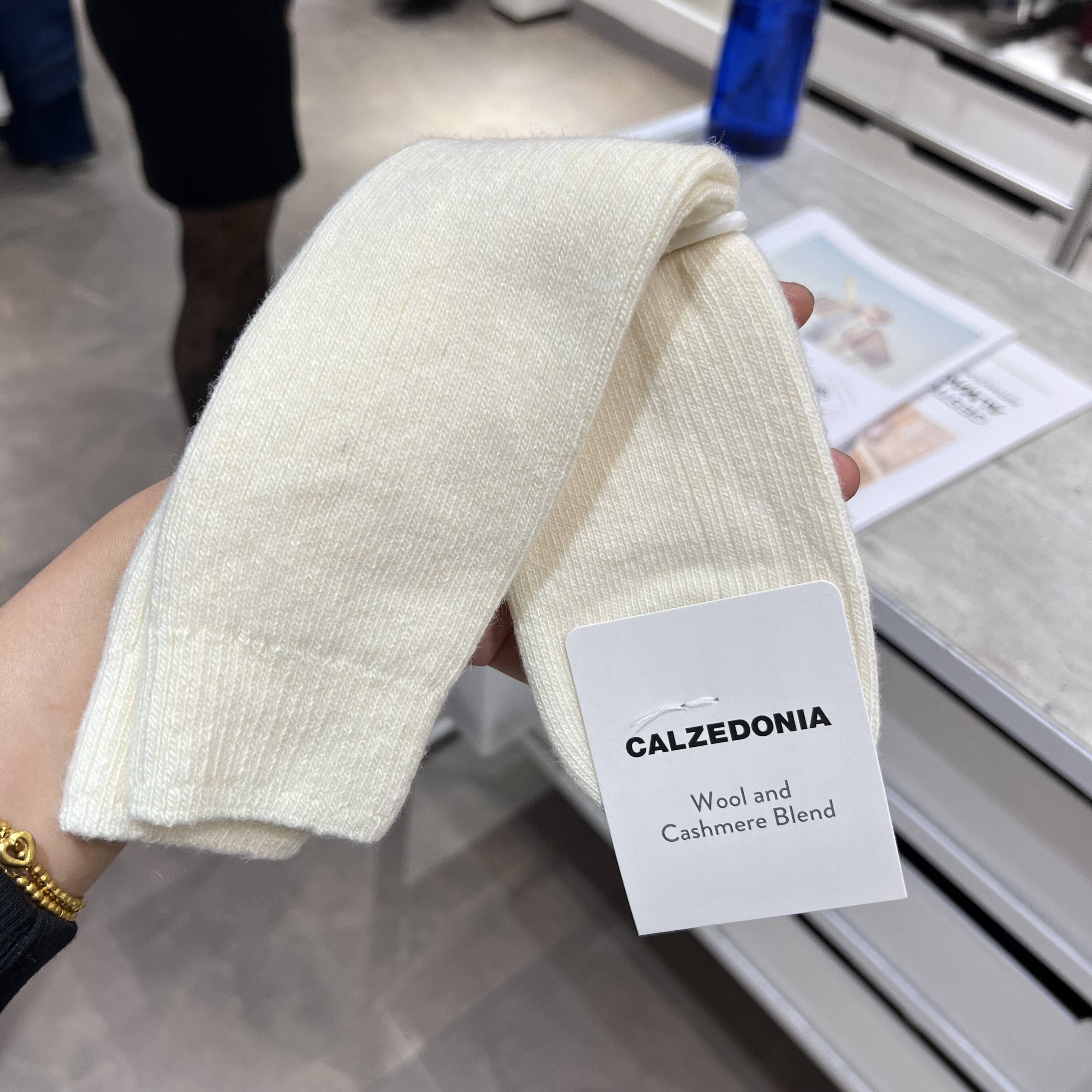 欧版CALZEDONIA 中筒袜山羊绒保暖舒适秋冬纯色罗纹堆堆袜条纹袜子
