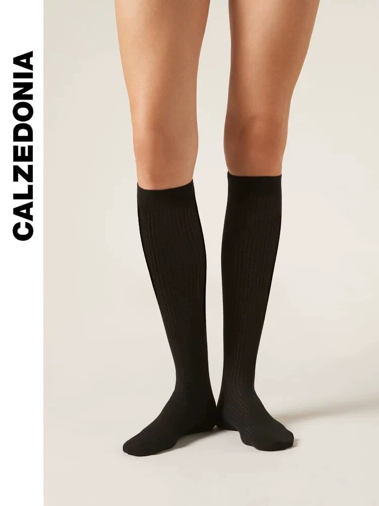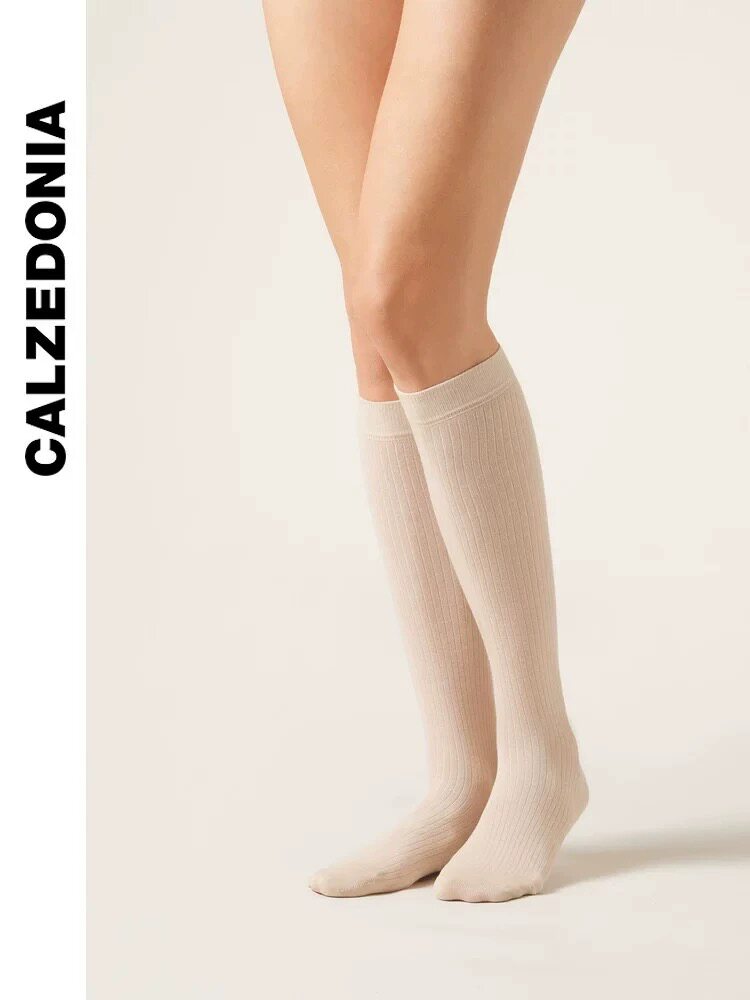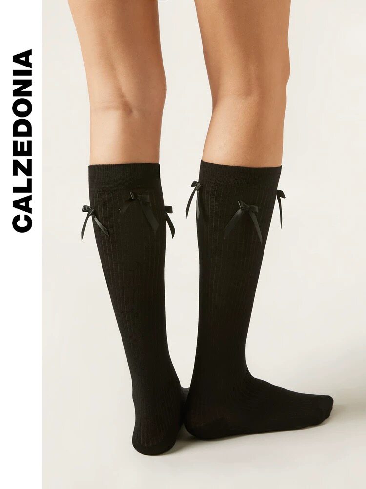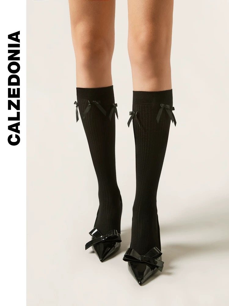 CALZEDONIA 25 осенние новые женские модные носки в рубчик JK с бантиком DL0402