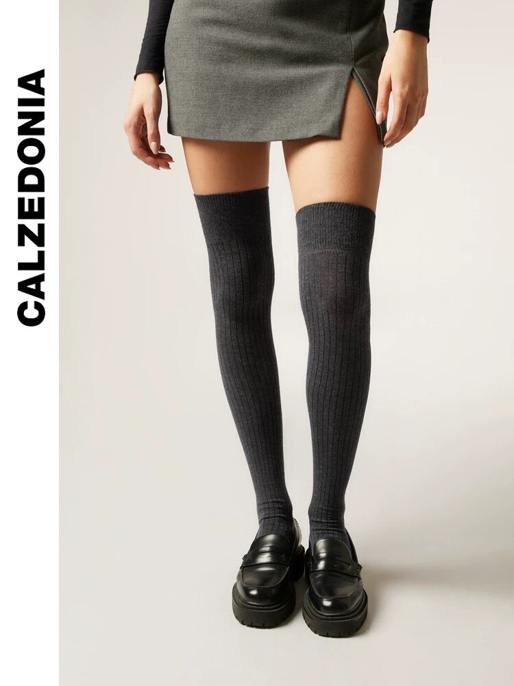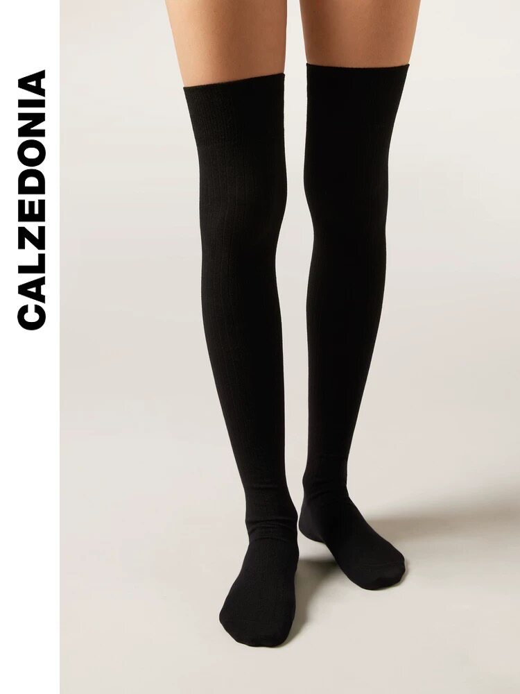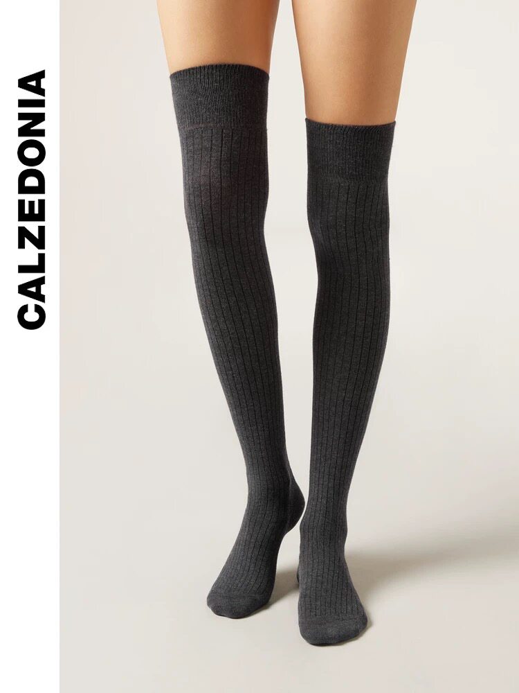 CALZEDONIA 25 новых осенних женских однотонных носков выше колена в рубчик, чулок, гольфы DL0403