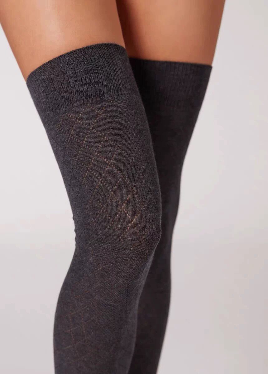 | Цвет: | Серые широкополые носки в вертикальную полоску, Черные широкополые носки в вертикальную полоску., Серые носки выше колена в шотландскую клетку, Носки выше колена с темным узором в вертикальную полоску |