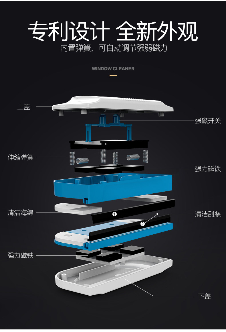 Протирать стеклянный артефакт Регулируемый магнитный трют с двойным втиранием высокого риска высокого роста и инструмент для очистки стеклянного скребка