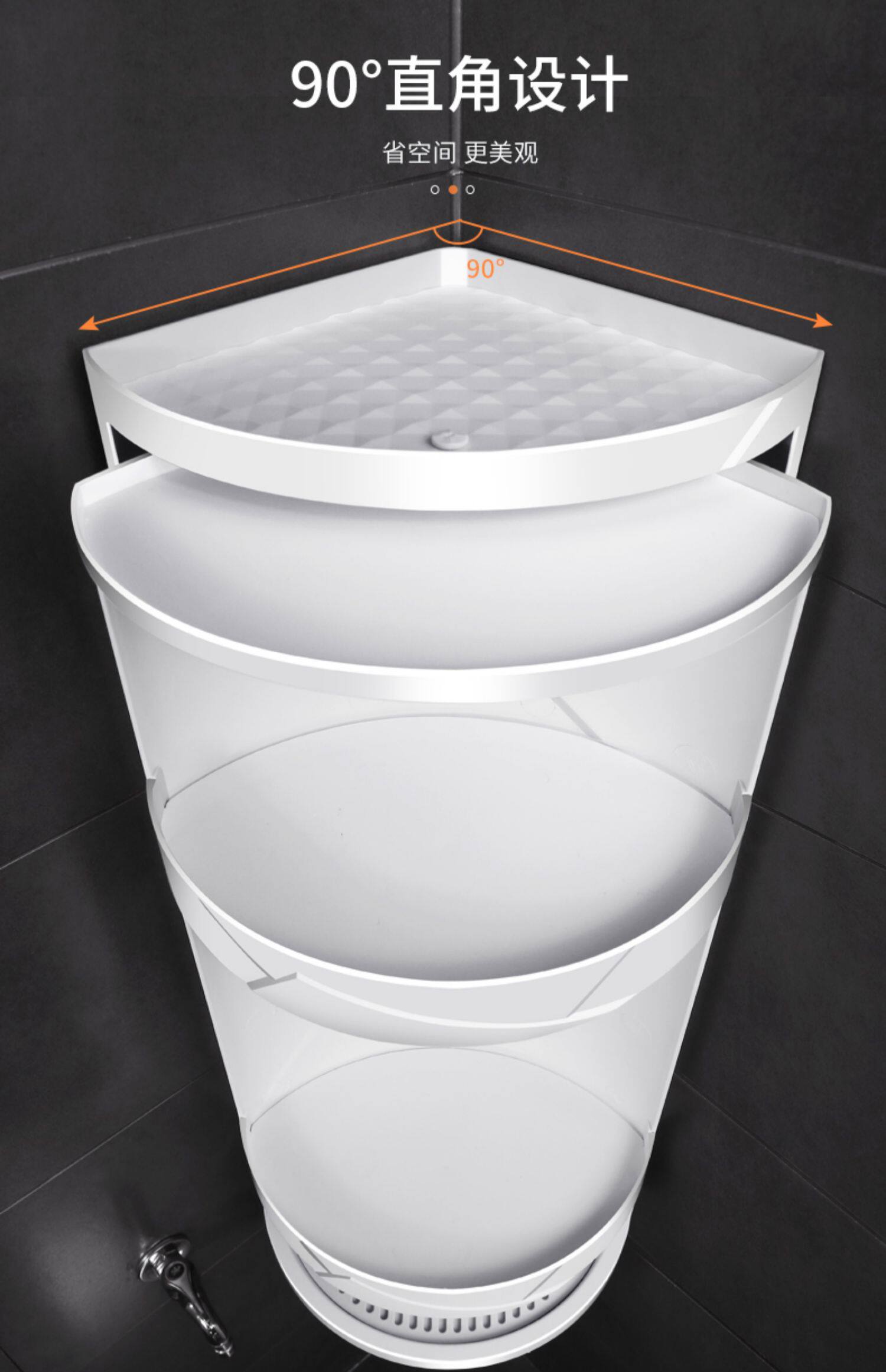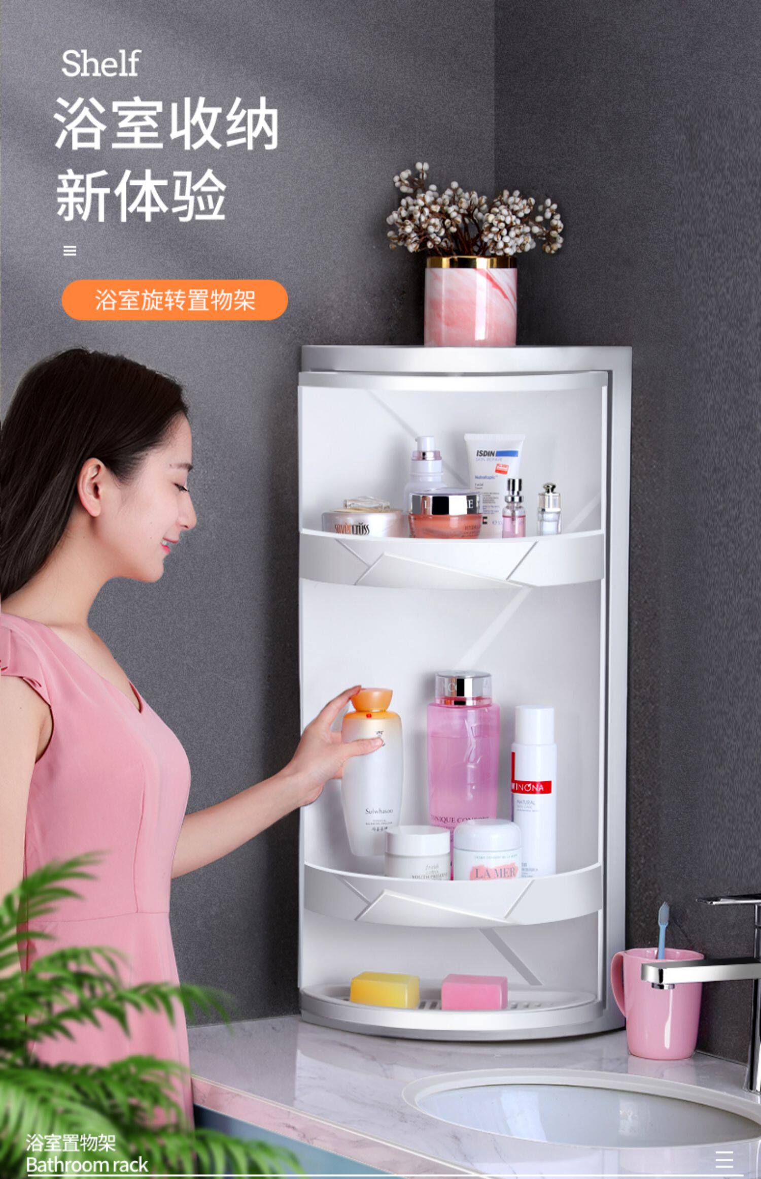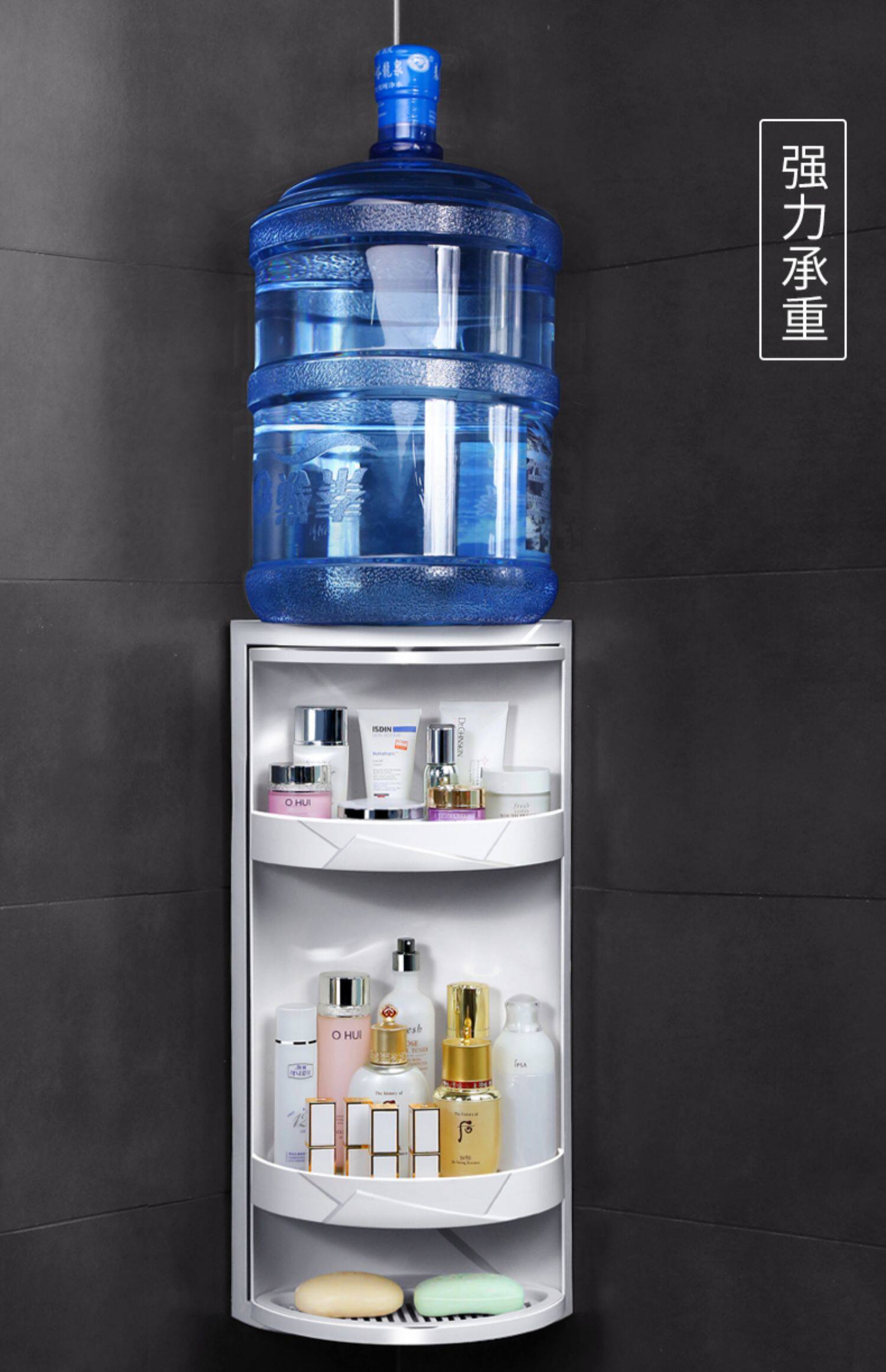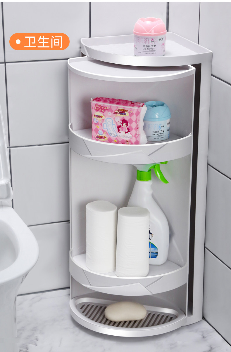 Увеличенная туалет в ванной комнате в ванной, вращающаяся на угловой полке ванной комнаты