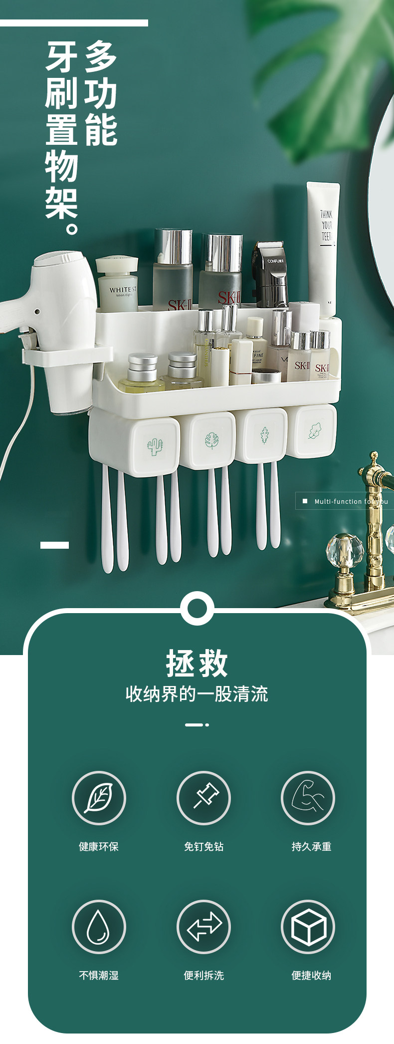Донор -Бесплатная настенная стойка для хранения туалетов -Стеной для волос на волос в ванной комнате