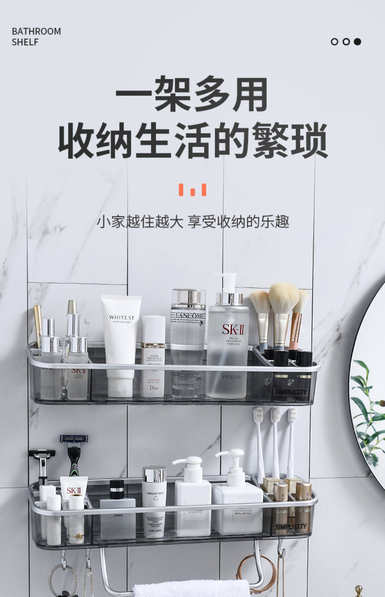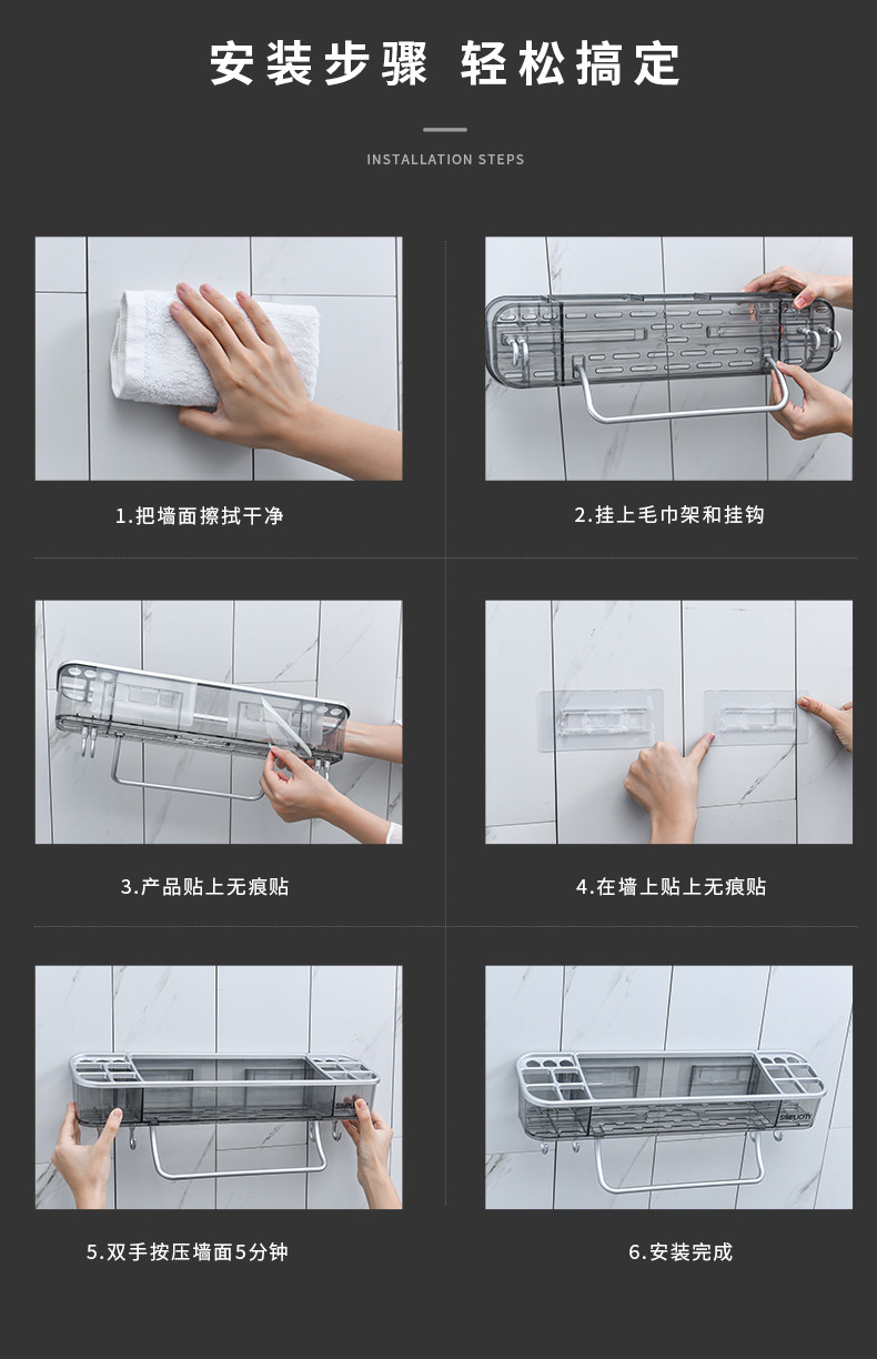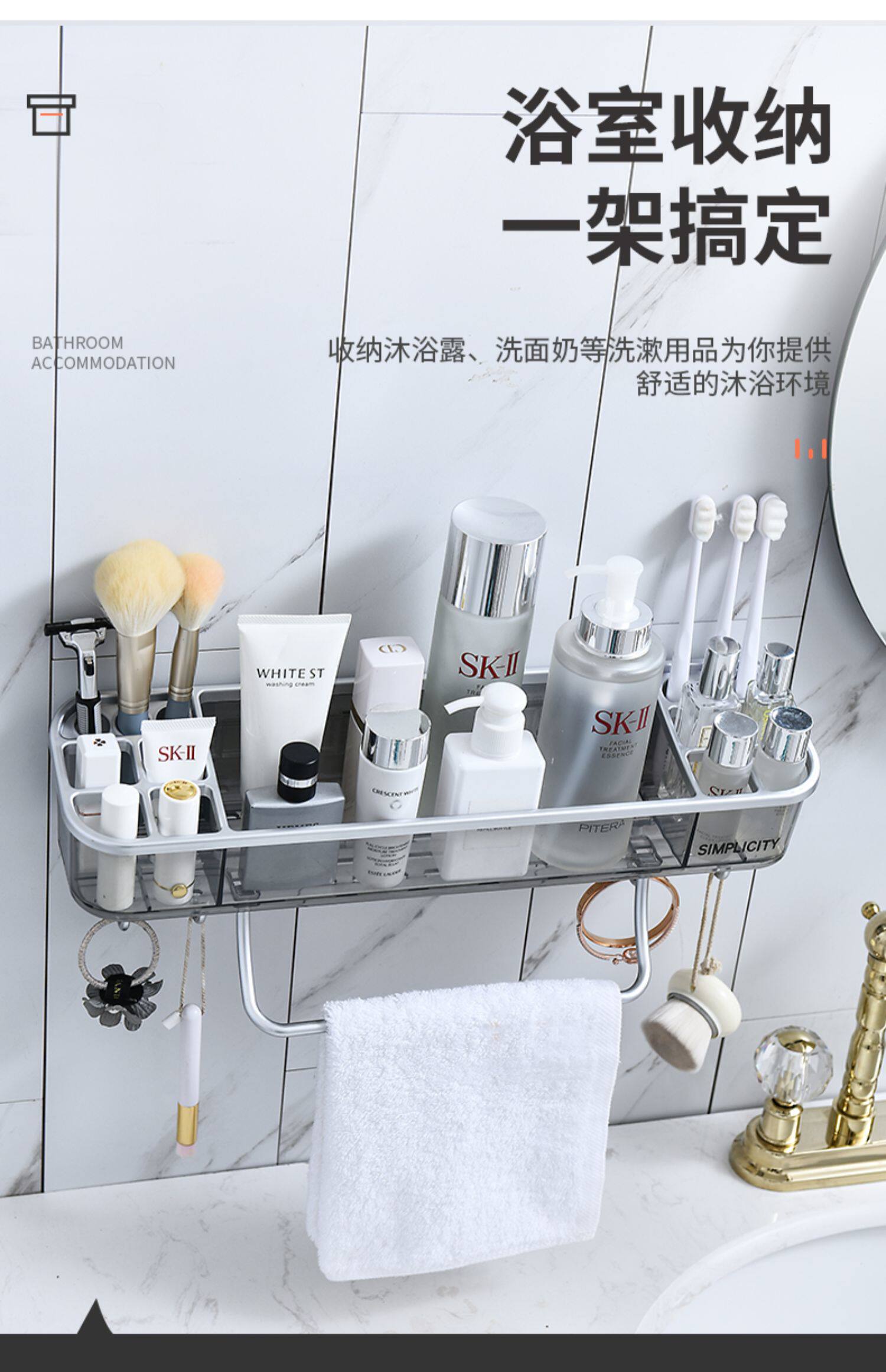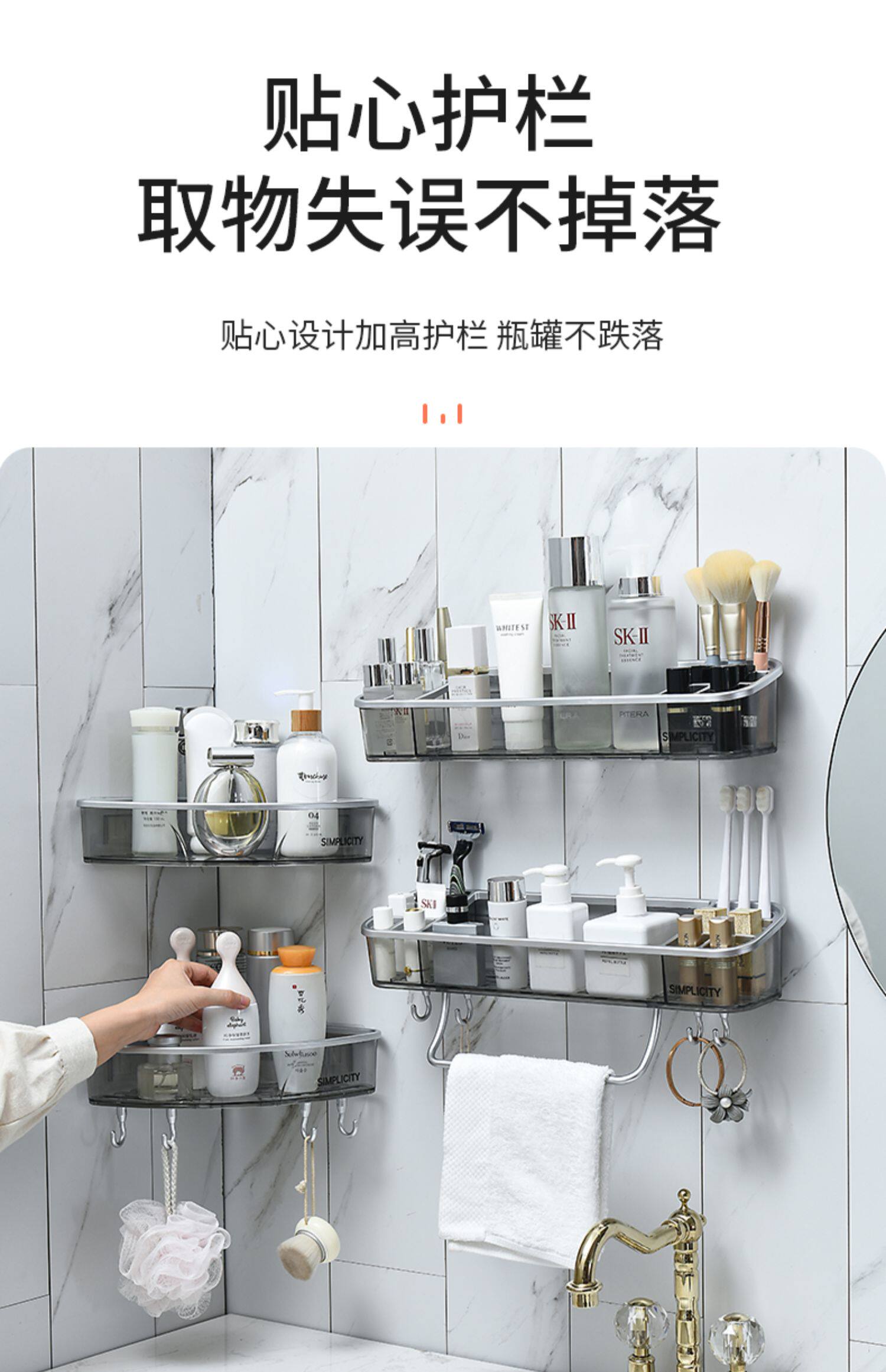 Стена хранения ванной комнаты -на стене -Без пунширования -Бесплатная стена ванной комнаты для хранения ванной комнаты туалет туалет туалет прозрачная стойка для хранения
