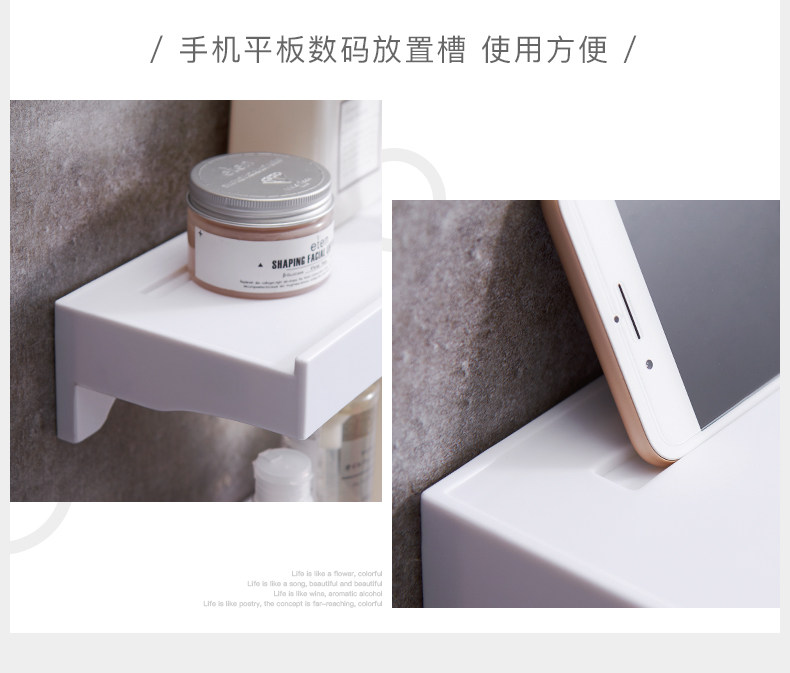 Стена ванной комнаты на полке -полка для ванной комнаты не удается от удара на стене туалета -Поглощающая чашка всасывающая чашка всасывающая санитарная посуда стойка для хранения