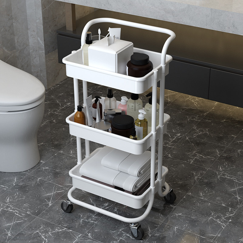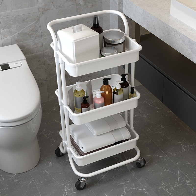 Ванная комната в ванной комнате вымывание стола может переместить туалетные принадлежности на полке.
