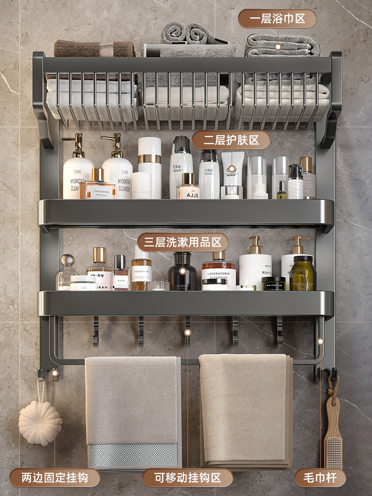 Ванная комната в ванной комнате свободна для удара по раме стойки для полотенец, настенный встроенный для хранения