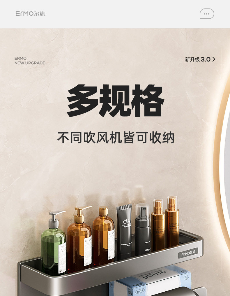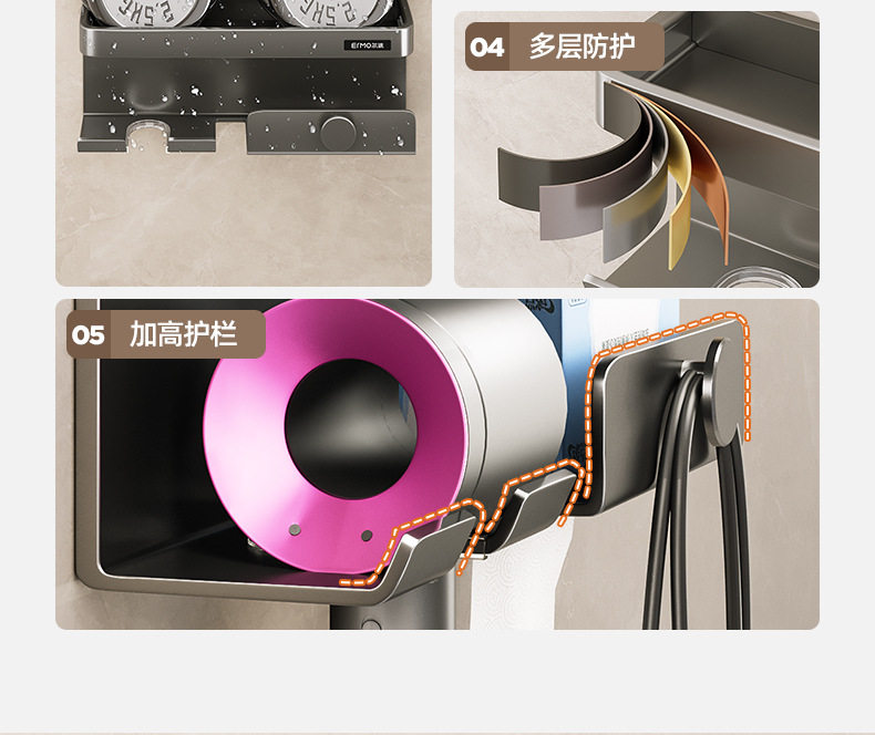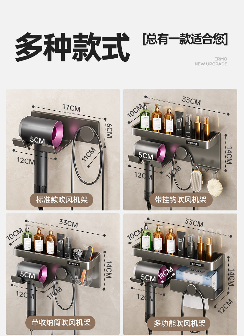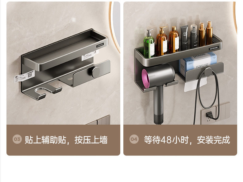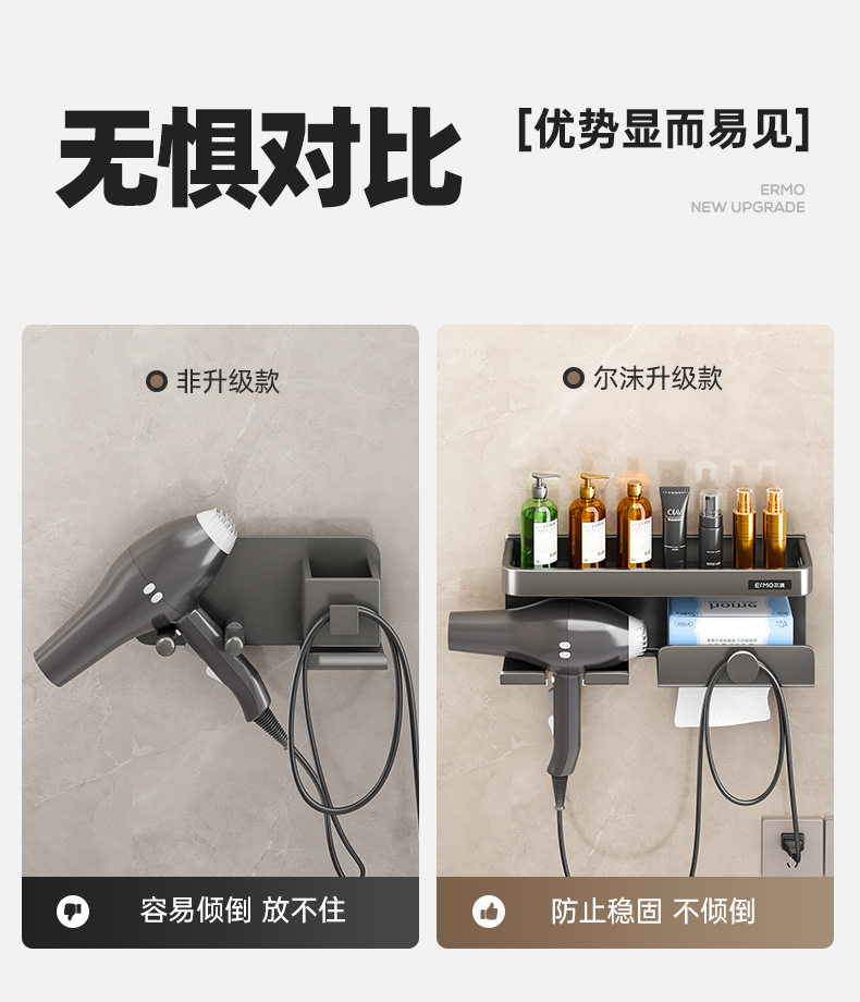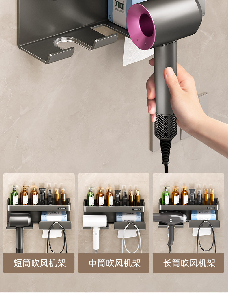 Домохозяйственная настенная настенная дробь для хранения волос без удара по пуховым комнатам для волос.