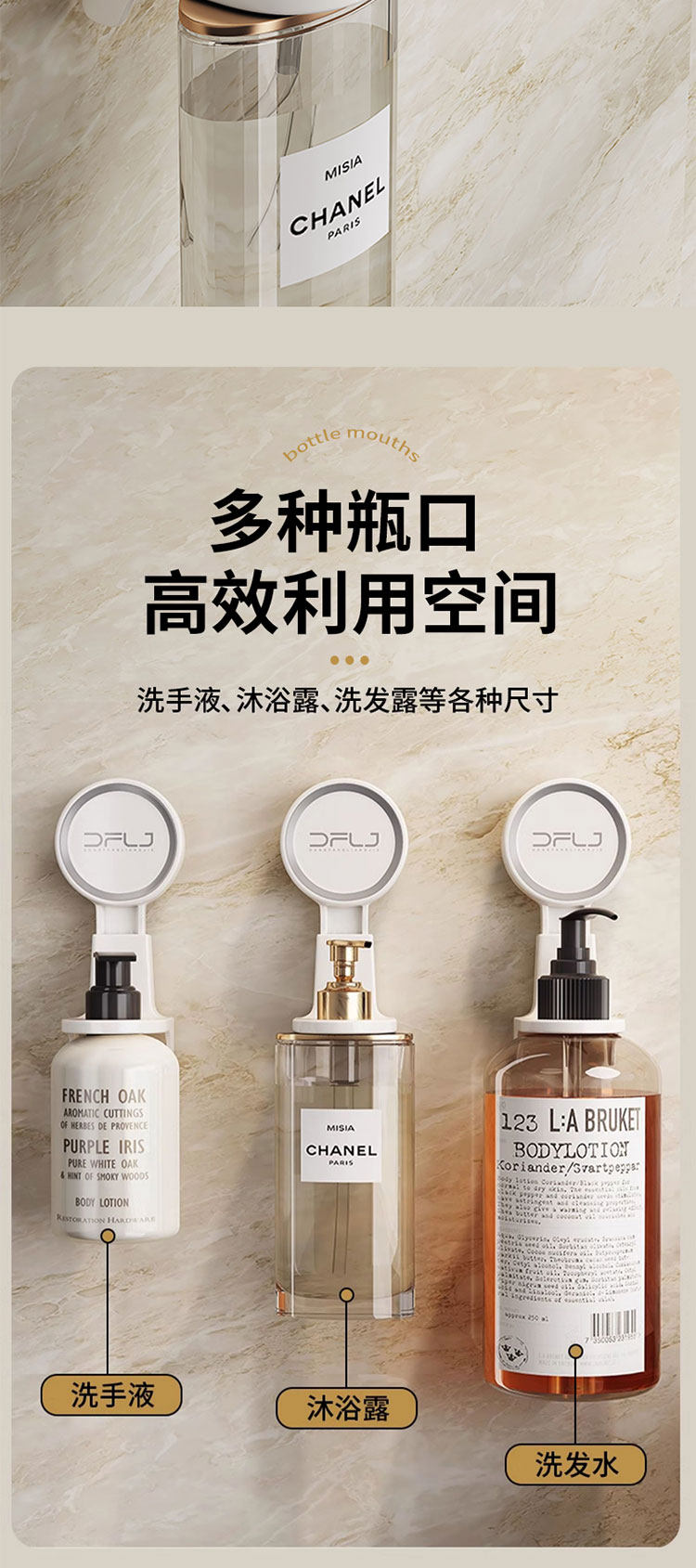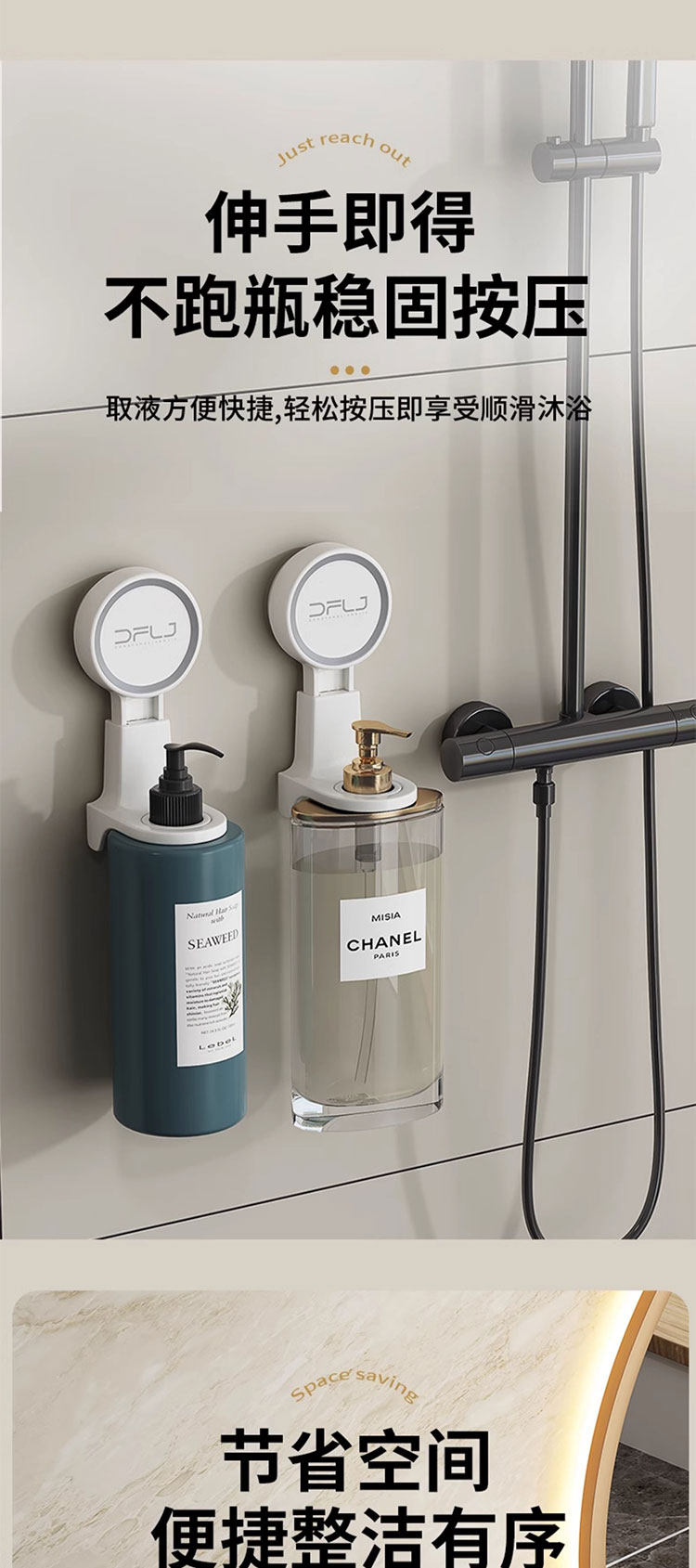 Полюс -Бесплатное мытье рук, шампунь для шаль, насасывание водяного всасывания, бутылка для душевого геля висят фиксированное устройство для мытья посуды