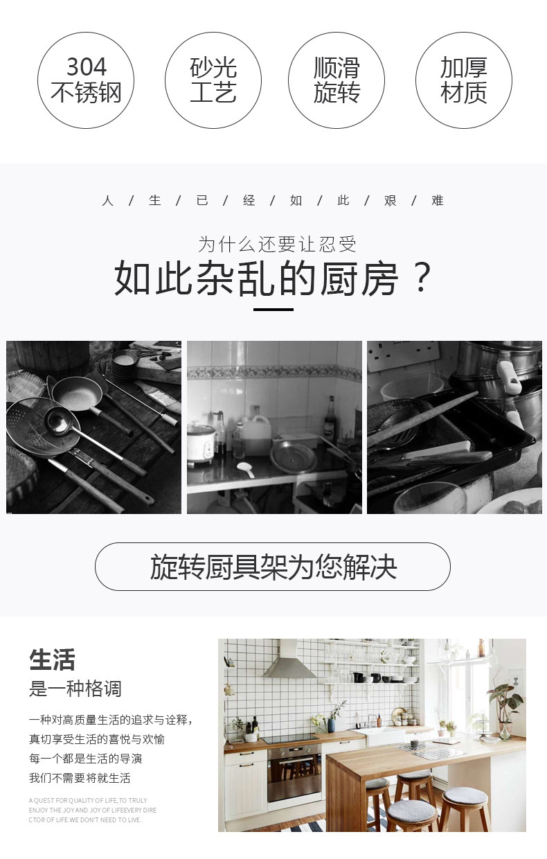 onlycook Крутящаяся кухонная утварь из нержавеющей стали, лопата, система хранения