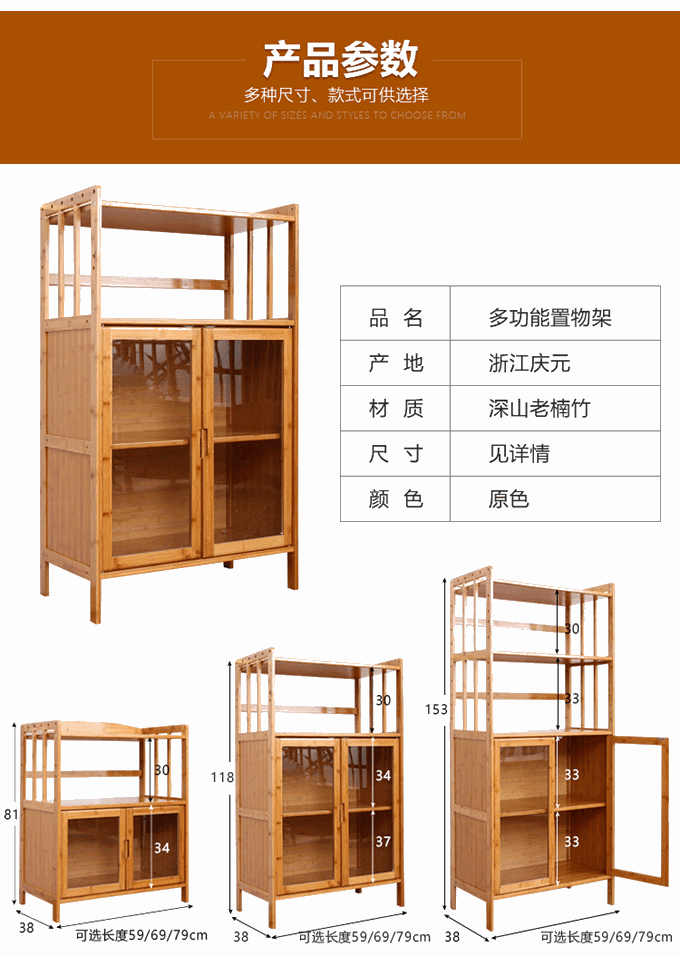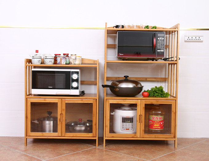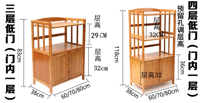 Кухонная микроволновая печь, набор 3 -слой, 4 -й этаж, 4 -й этаж, многослойный твердый деревянный шкаф для хранения бамбука, хранение, полка хранения