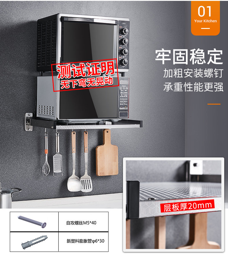 Поклятная печь Carba Микроволновая печь 304 Стенная стена из нержавеющей стали духовка, 2 слоя кронштейна кухонная стойка для хранения кухонного хранения