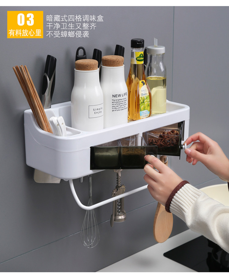 Кухонная стойка, настенный держатель для ножей, шкаф для хранения приправ, настенная полка, многофункциональная, без дырокола