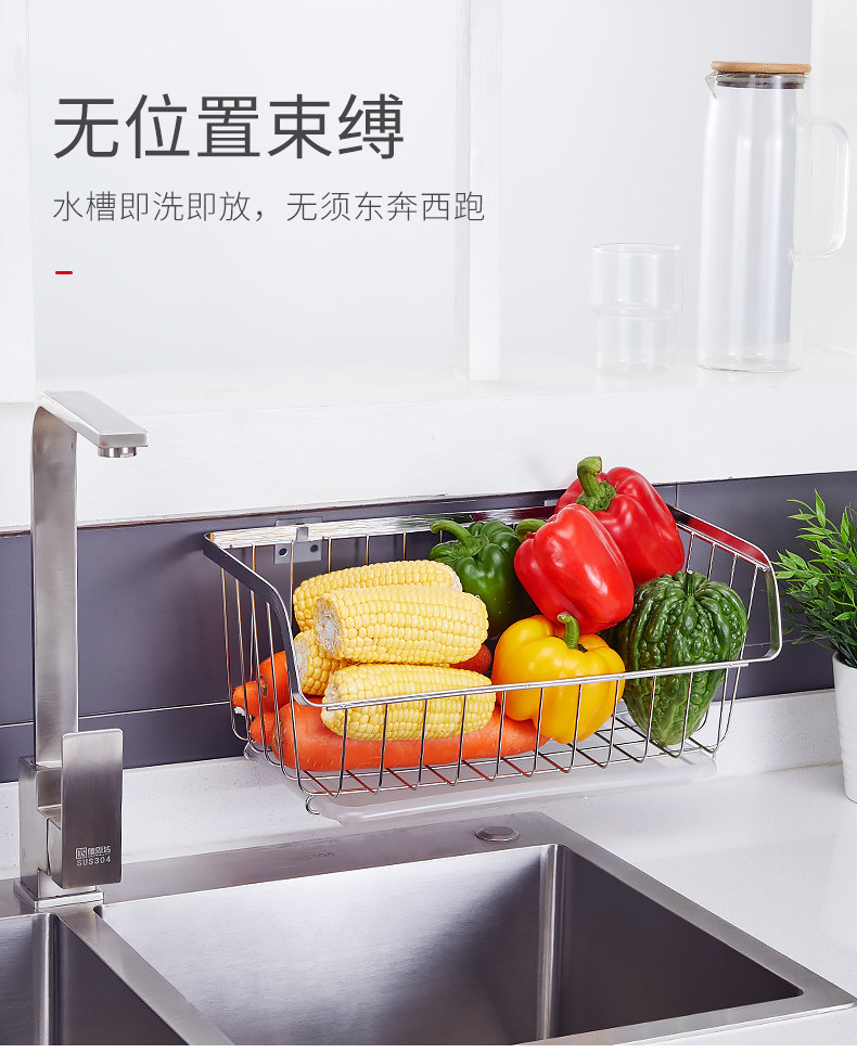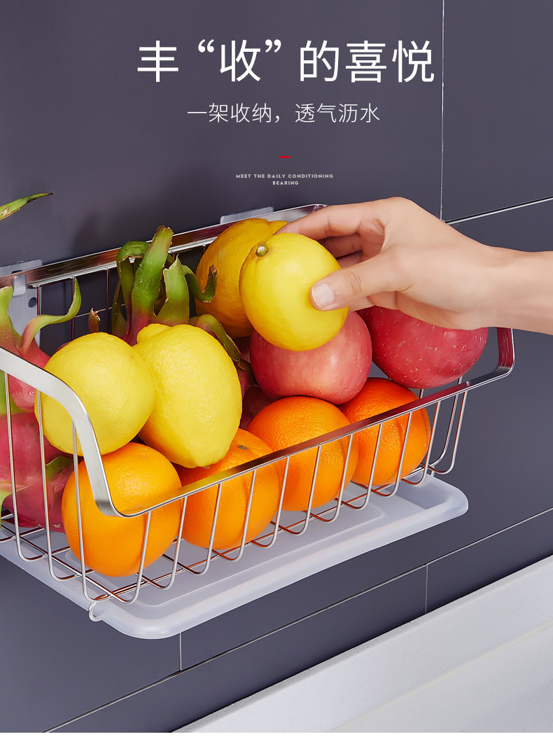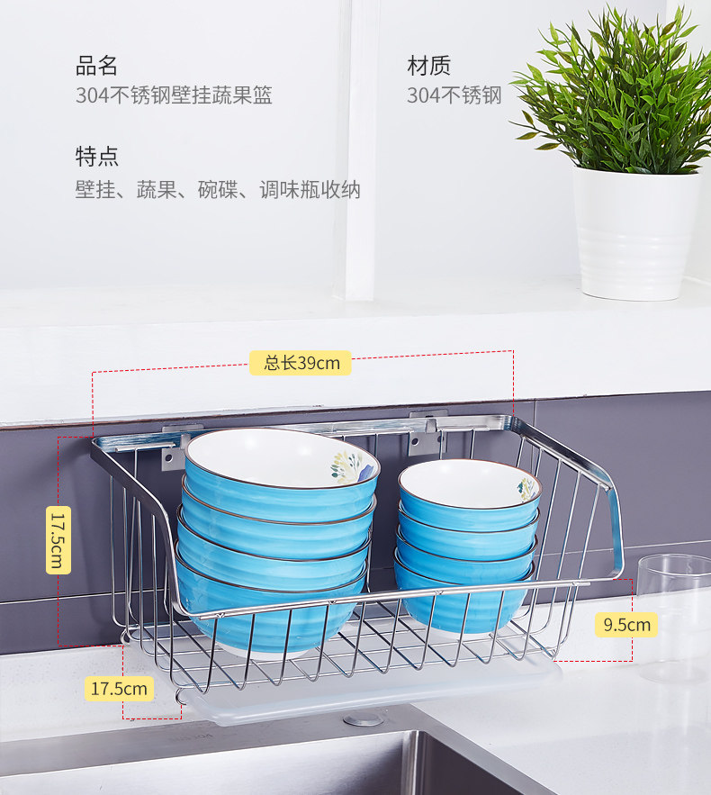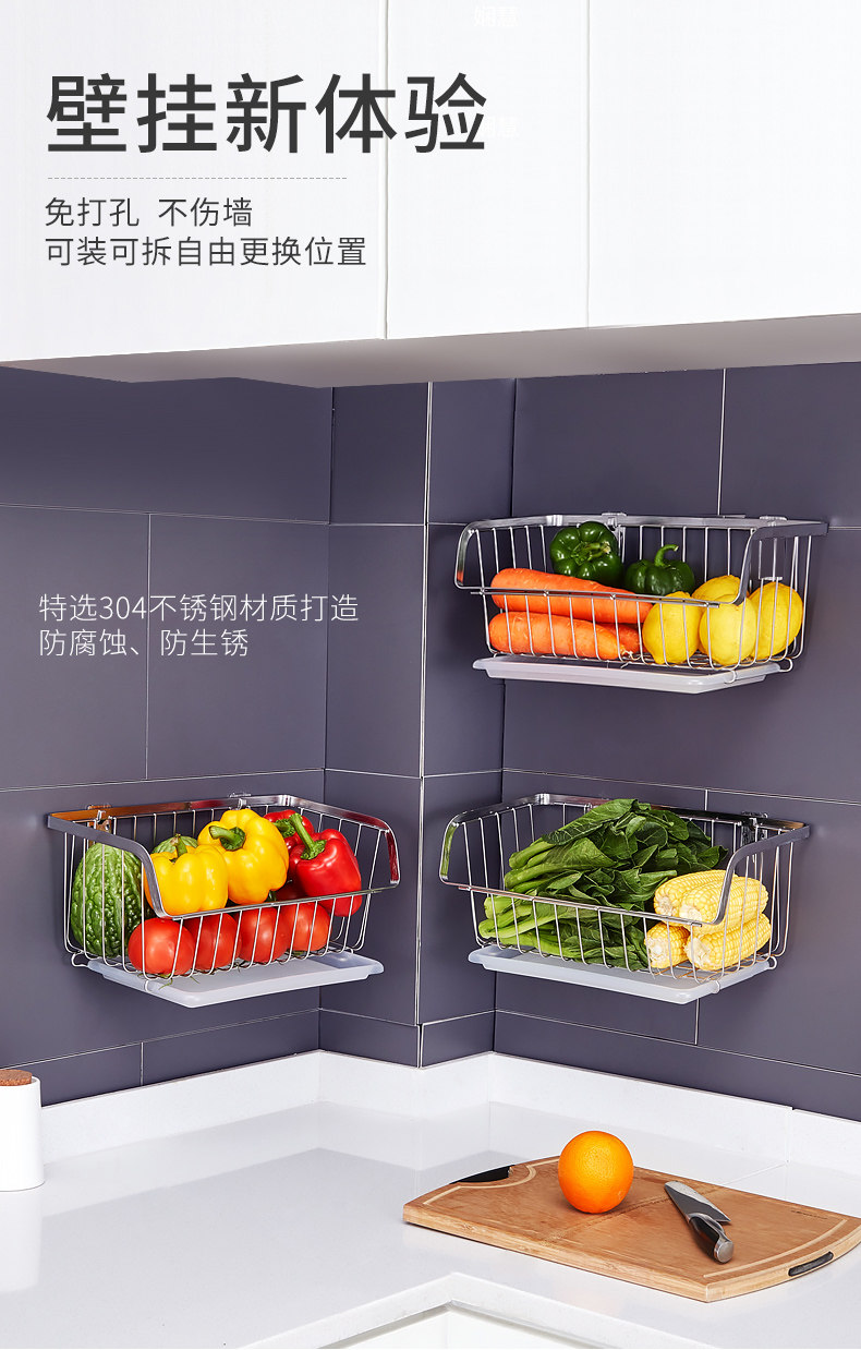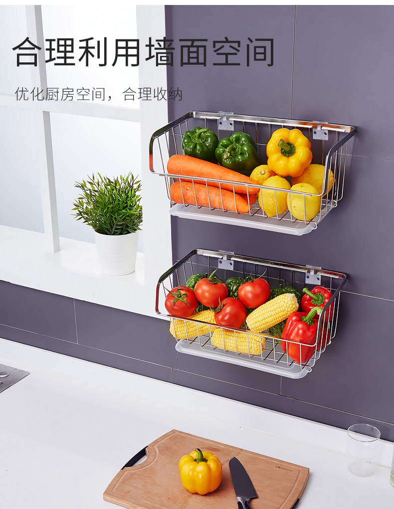 Кухонные овощи установите стену, висящую 304 фрукты из нержавеющей стали и овощную воду для корзины без корзины. Положите овощную корзину