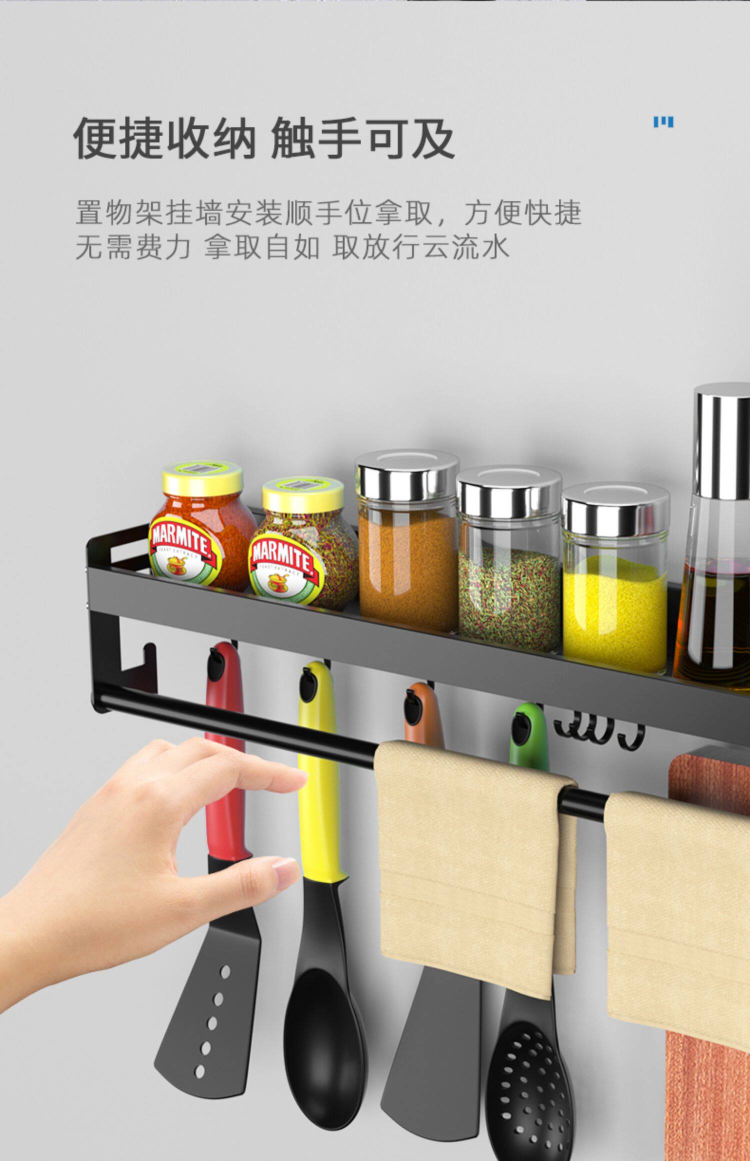 Черно -безтолковые кухонные наборы на стене с мультифункциональными приправами. Продукты Daquan Kitchen Atensils расширены и утолщены
