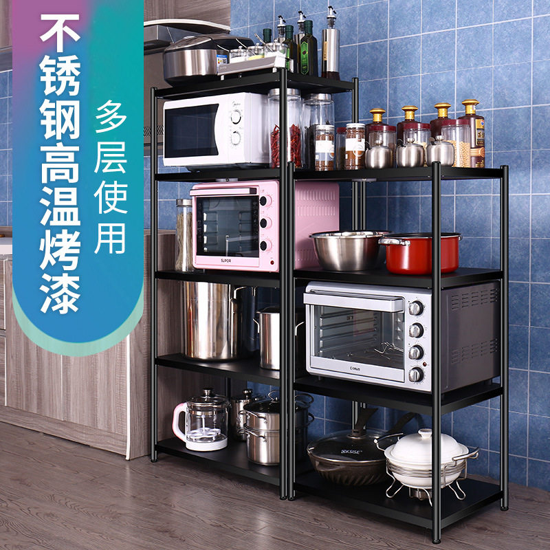 Черная кухня домашняя посадка на стойку многослойная микроволновая печь для хранения склад